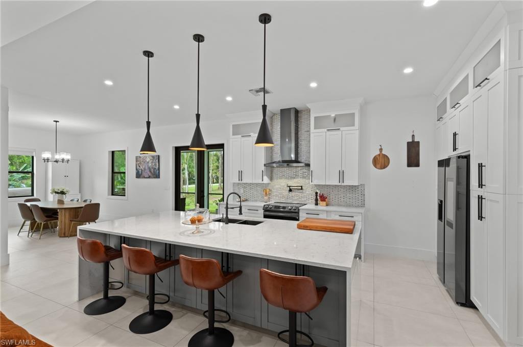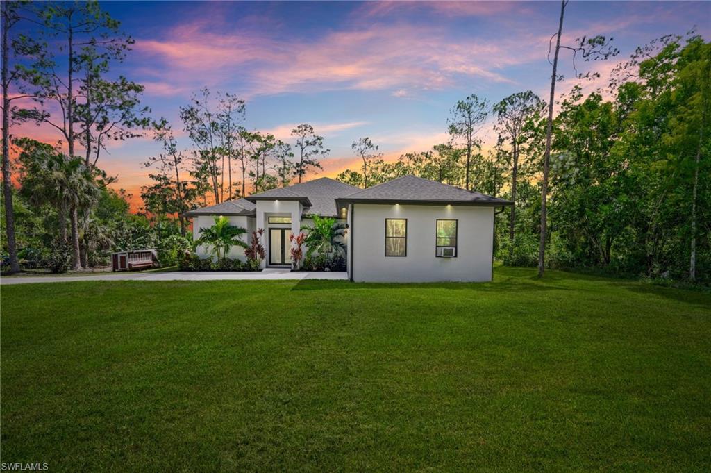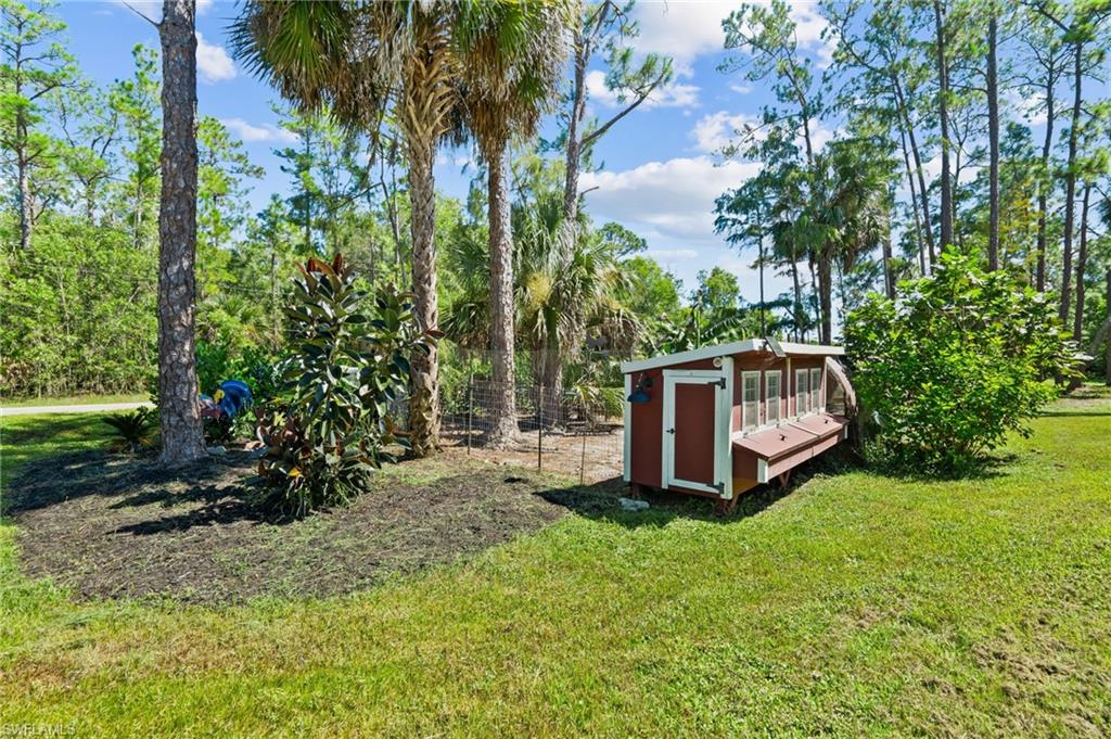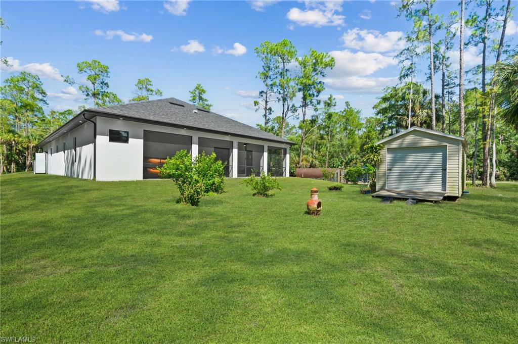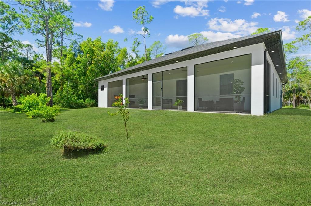 2022 New Construction Luxury on 2.81 Acres in Golden Gate Estates, Naples, FL This is a rare opportunity to acquire a modern, new construction estate offering the ultimate blend of luxury, space, and freedom in the highly desirable Golden Gate Estates. Built in 2022, this exceptional residence features 4 Bedrooms plus a Den, 3 Full Bathrooms, and 2,431 square feet of thoughtfully designed, air-conditioned living space on an expansive 2.81-acre lot with absolutely NO HOA or CDD FEES. The home showcases premium finishes engineered for the Naples lifestyle. Sunlight streams across the open-concept layout, highlighting the soaring ceilings and continuous 32x32 Italian porcelain tile flooring. The chef’s kitchen is a true showpiece, defined by a dramatic quartz waterfall island, custom cabinetry, and sleek black stainless steel appliances. The space flows seamlessly into the great room, which features a modern electric fireplace, perfect for elegant entertaining or relaxing. The private primary suite serves as a true sanctuary, complete with a spa-inspired bathroom that includes dual quartz vanities and a spacious walk-in shower. Flexibility is key: one secondary bedroom offers a dedicated full bathroom and direct access to the extended lanai, making it ideal for a future pool bath, private guest quarters, or a multi-generational setup. The versatile den provides excellent space for a dedicated home office or library. Built for comfort and durability, the home includes Impact-Resistant Windows and Doors and an asphalt-paved driveway. Outdoors, the nearly three acres are ready for your vision, featuring mature fruit trees, a chicken coop, and a large shed. With unrestricted acreage, there is ample room to install a custom pool, build a detached guest house, a large workshop, or a hobby farm, as the property is zoned for horses. This estate combines peaceful, rural privacy with metropolitan convenience, located near top-rated private schools, universities, world-class Naples beaches, dining, and the Southwest Florida International Airport (RSW). Experience the ultimate acreage lifestyle in Naples. Schedule your private tour today.