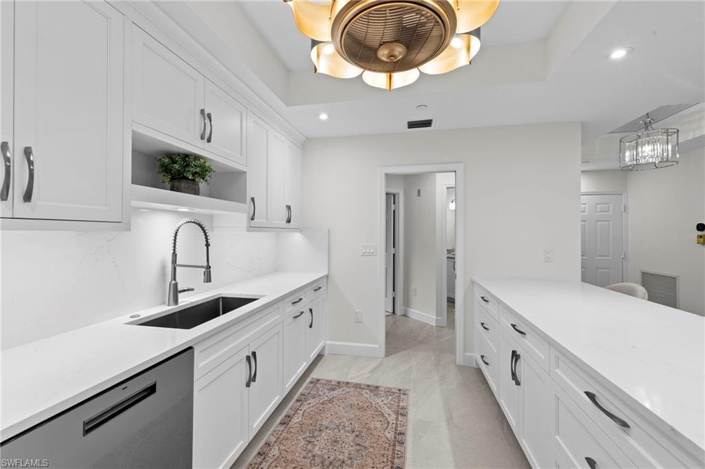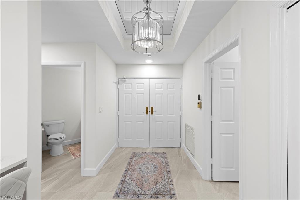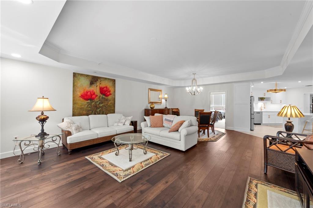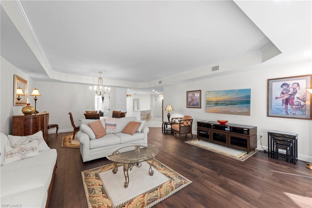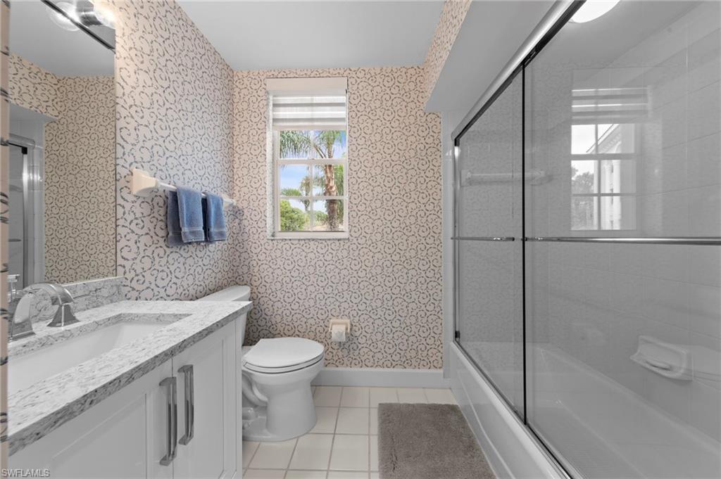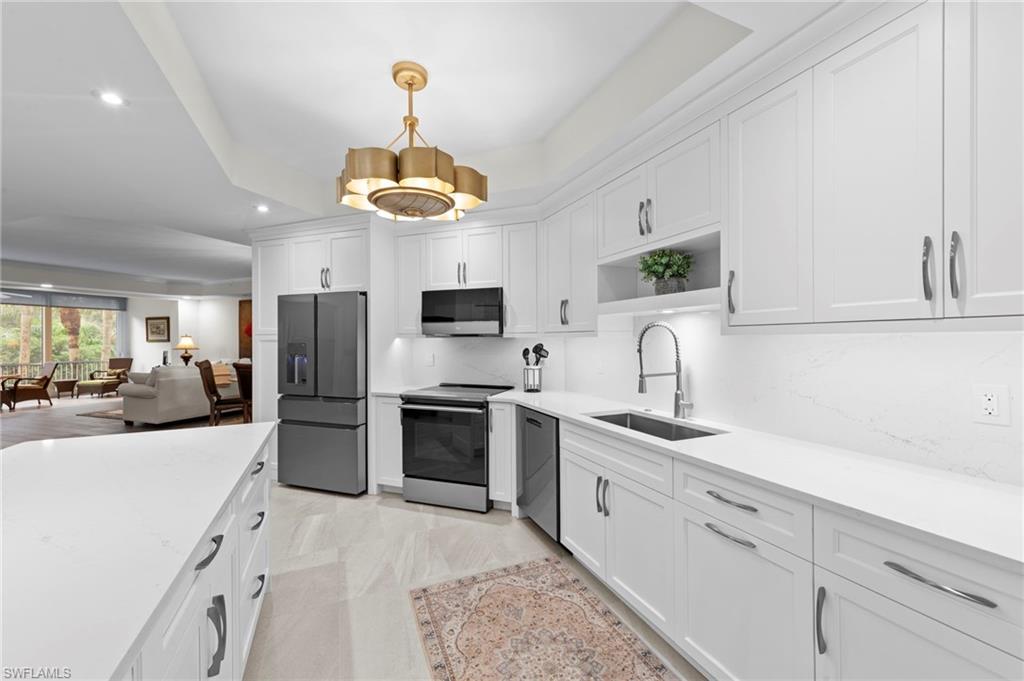 Welcome to this beautifully renovated condo at The Crescent in Pelican Bay, where modern upgrades meet the best of resort-style living in Naples. From the inviting entry you are drawn through the unit to the glass & screened enclosed sunroom offering tropical vistas over the garden areas and fairway. The redesigned kitchen shines with white cabinetry, quartz countertops, and premium stainless appliances, while new hardwood and tile floors flow seamlessly throughout. Expanded living areas with hurricane-rated doors add both space and security. The primary suite offers a relaxing retreat with a remodeled bath, quartz counters, updated shower and tub, and custom closets. Guests will feel right at home with spacious bedrooms, including one with its own ensuite. Recent updates like new A/C and hot water heater (2023) keep the home efficient and worry-free. The Crescent offers its own clubhouse, pool, spa, and fitness center, plus all the Pelican Bay perks—private beach access with beachfront dining, tennis, miles of walking and biking paths, with canoes and kayaks for residents. Just minutes to Waterside Shops and Mercato. This is the perfect blend of comfort, convenience, and Florida lifestyle in one of Naples’ most sought-after communities. The Crescent in Pelican Bay received no damage from last 3 hurricanes and no water intrusion in garage.