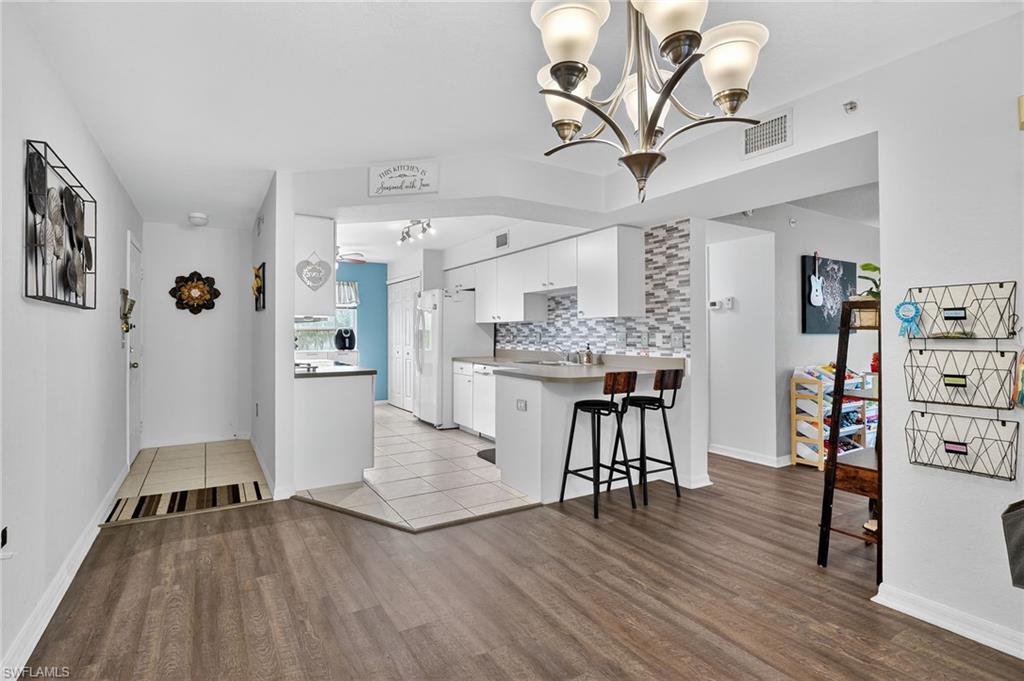 List price is starting price. Welcome to Bermuda Bay at Bay Forest, where coastal living meets comfort and convenience! This beautifully maintained 2-bedroom + den, 2-bath end-unit condo offers a rare combination of privacy, natural light, and access to world-class amenities—just 3.5 miles (8 minutes) from the beach. Step inside to an open, airy floor plan featuring luxury vinyl plank flooring and a tile entryway for easy care and lasting style. The bright eat-in kitchen includes white cabinetry, smooth-top stove, side-by-side refrigerator, microwave, dishwasher, pantry, and a modern tile backsplash. The space flows seamlessly into the dining and living areas, perfect for everyday living or hosting friends and family. The spacious primary suite is a true retreat, complete with a walk-in closet, double vanity, and walk-in shower. A versatile den provides the perfect space for a home office, craft room, or guest overflow. Fresh ceiling fans throughout the home (all less than 2 years old) keep the space cool and energy efficient. Relax and unwind on your private screened lanai, where you can enjoy peaceful views of lush landscaping and tropical surroundings. As an end unit, you’ll love the extra windows that bring in beautiful natural light and a more open, airy feel.