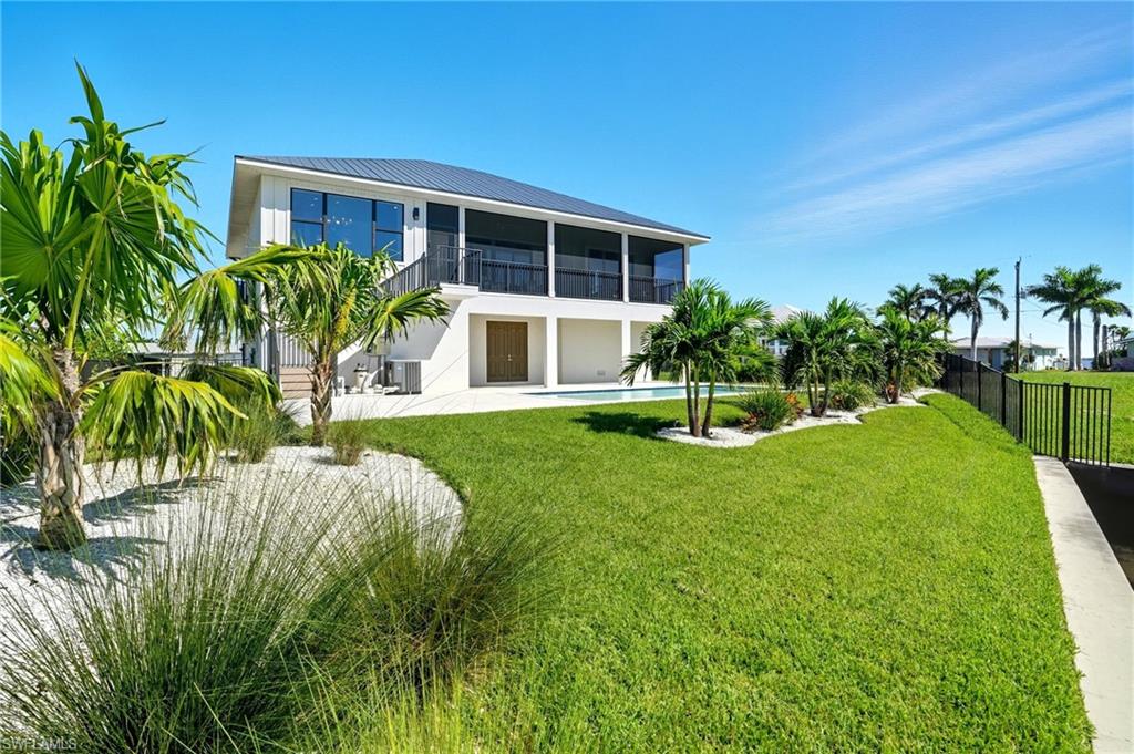 Welcome to your dream beach home! New Construction and designed with unparalleled luxury in one of the top neighborhoods of Fort Myers Beach! This custom-crafted 3-bedroom, 3-bathroom waterfront masterpiece in the prestigious Fairview Isles neighborhood is a boater’s paradise with direct Gulf access and breathtaking views. Wake up to vibrant sunrises over the Bay and enjoy serene, long water vistas down the wide canal from your premium homesite. Step inside to discover soaring vaulted ceilings, a state-of-the-art designer kitchen with top-tier appliances, and a spa-inspired master suite featuring a curbless shower and a luxurious soaking tub. The open-concept living space flows seamlessly, perfect for entertaining or relaxing in style. Outside, an expansive travertine deck surrounds your private heated saltwater pool, complemented by a new boat lift for effortless boating adventures. This home exudes curb appeal with meticulously designed professional landscaping and ambient lighting, creating a warm and inviting atmosphere. Built to the latest building codes and flood zone standards, this property offers peace of mind and modern efficiency. Just a short stroll or ride to one of the widest, most pristine beaches on Fort Myers Beach with deeded access, this home perfectly blends coastal luxury, comfort, and convenience. Don’t miss your chance to own a pristine, brand-new piece of paradise in one of Florida’s most sought-after waterfront communities. Schedule your private tour today and experience the ultimate in Fort Myers Beach living!