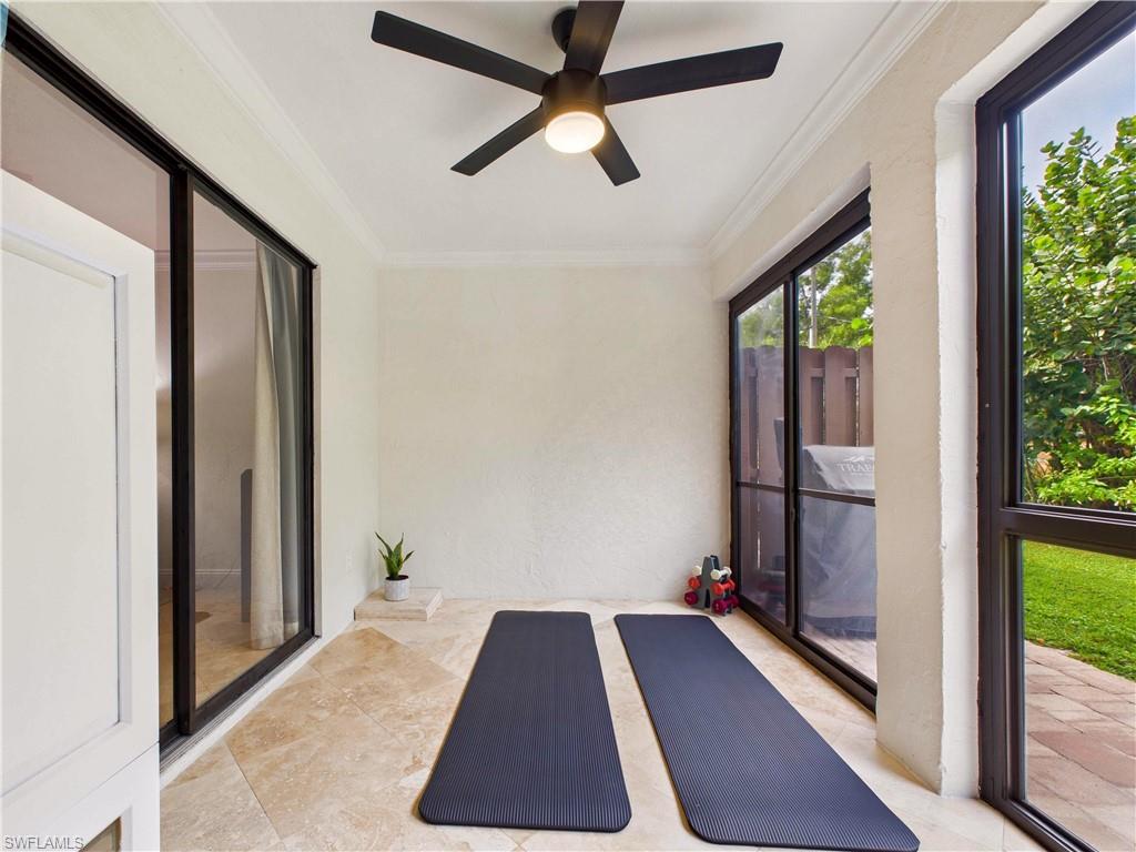 If you’ve been waiting for an affordable, beautifully updated home close to Bonita Beach but safely out of the flood zone, this is your moment. Tucked inside a quiet, rapidly improving neighborhood between Naples and Fort Myers, this coastal-inspired condo delivers the Florida lifestyle everyone wants—but rarely finds at this price point. Located in Flood Zone X (no required flood insurance!) and paired with a low-cost HOA, this home offers the kind of long-term savings and peace of mind that are almost impossible to come by in Southwest Florida. Inside, the space has been thoughtfully updated from top to bottom. The kitchen feels warm and inviting with high-end appliances, a one-level granite countertop, and ceiling-height cabinetry—perfect for cooking, gathering, or simply enjoying your morning coffee. Fresh interior paint, crown molding, and an open layout create a light, polished feel that flows directly into the reimagined Florida Room. Originally a lanai, this bonus space is now a flexible indoor/outdoor retreat with newly installed exterior panels—keep them open for fresh breezes, or slide them closed to enjoy extra square footage protected from the elements. Both bathrooms have been beautifully remodeled: the primary features a frameless glass shower, while the guest bath offers a deep soaking tub for relaxation. Storage was also thoughtfully improved with upgraded closet systems and multiple hidden storage areas throughout the home. Major mechanicals are already done for you too—new washer & dryer, a 2020 water heater, and a 2020 A/C with a UV light filtration system for cleaner, healthier air. The community pool is just steps away, and the entire community of only 24 units is known for its well-run HOA, strong reserves, and neighborly feel. You’ll love the walkability to popular local cafés, restaurants, and shops—and you're only minutes to Bonita Beach. Whether you're seeking a personal Florida getaway, a primary residence, or an income-producing property, the investor-friendly rental rules make this an ideal option. And here's the truth: Updated, low-HOA condos in Flood Zone X this close to the beach are incredibly rare—especially in neighborhoods experiencing rapid appreciation. This pocket between Naples and Fort Myers is one of the fastest-growing areas in all of Southwest Florida. If you're thinking about it, act quickly—hesitation is the only thing that can cost you this opportunity. Secure your slice of paradise while you still can.
