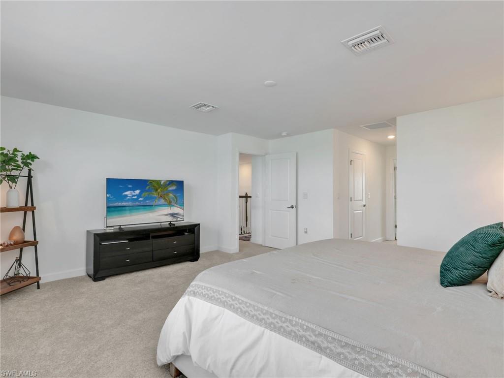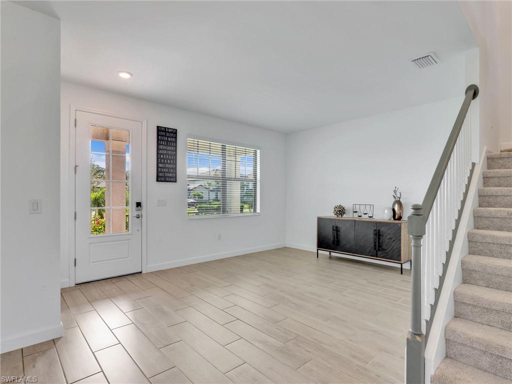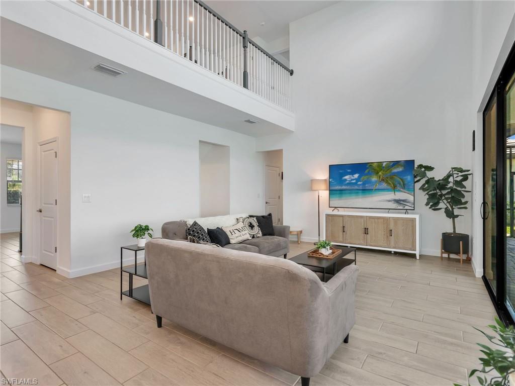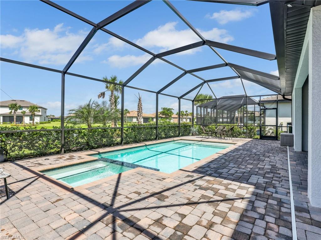 This stunning home offers the perfect blend of modern design, functional living space, and resort-style amenities. With 5 bedrooms + loft, 4.5 bathrooms, and a 3-car garage, this home provides over 3,300 square feet of thoughtfully designed living space. The open-concept layout features a bright kitchen with stainless steel appliances, quartz countertops, and a large island overlooking the great room and dining area—perfect for entertaining. A first-floor bedroom with ensuite bath offers convenience for guests, while the upstairs includes a spacious loft, luxurious primary suite with dual vanities and walk-in shower, plus three additional bedrooms. Step outside to your private pool and spa, covered lanai and enjoy breathtaking sunsets over the pond, creating the ideal backdrop for evenings at home. With hurricane impact windows & doors, natural gas, and modern finishes throughout, this property is move-in ready. Living in Verdana Village means access to unmatched amenities: indoor/outdoor pickleball and tennis, basketball, resort-style pool, state-of-the-art fitness center, playground, dog park, on-site restaurant/bar, and more. Plus, just outside the gates you’ll find a new shopping plaza with Publix, dining, a sought after school zone and everyday conveniences. This home is lightly lived in and in pristine condition—ready for its next owner to enjoy the Florida lifestyle at its best.