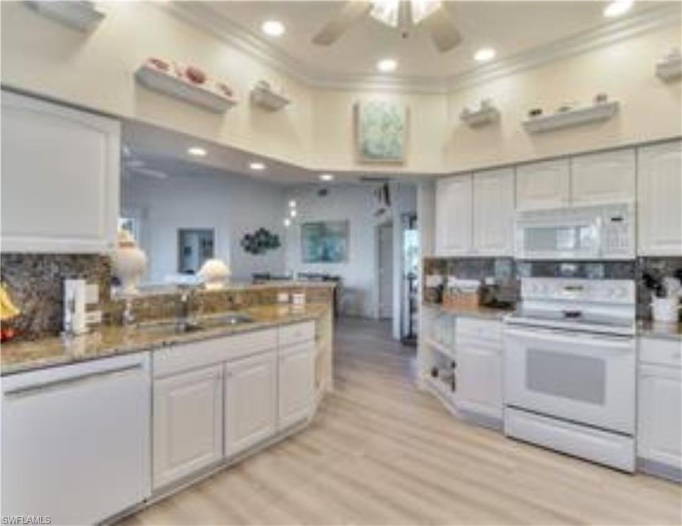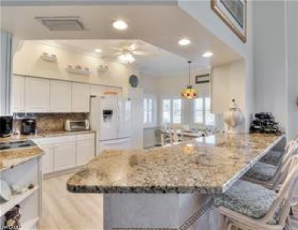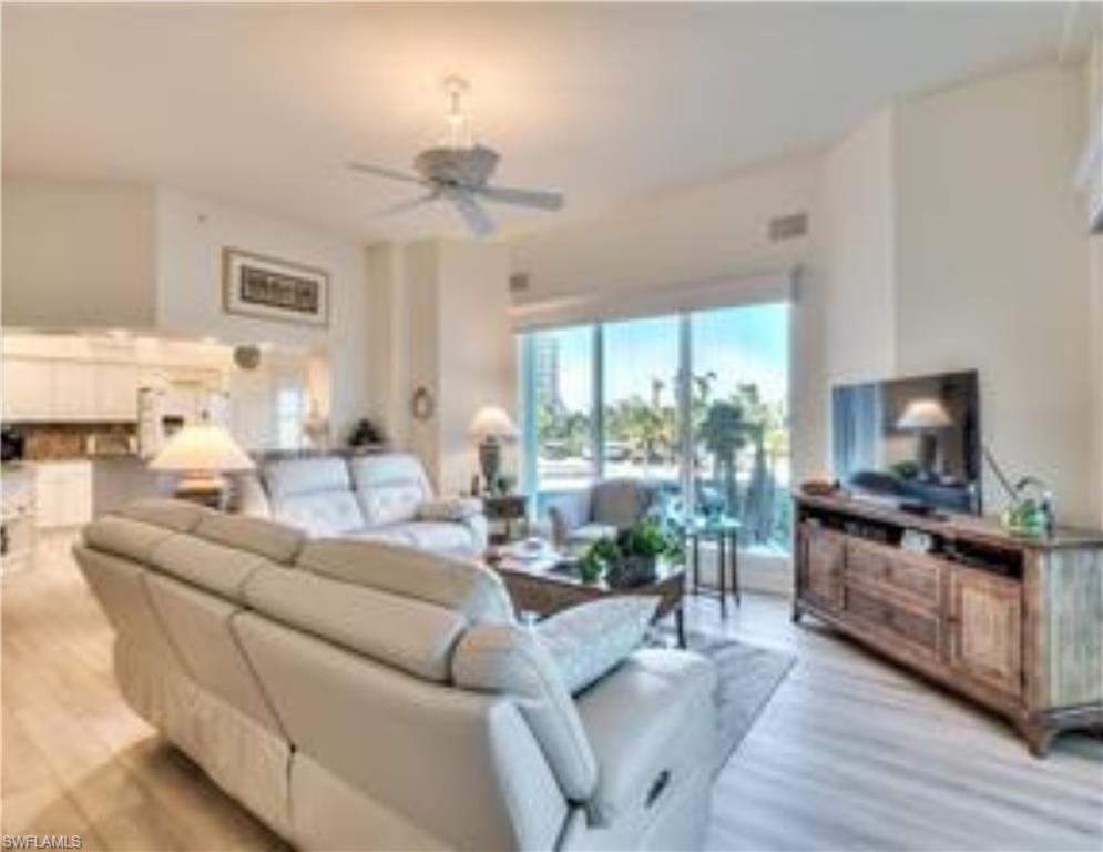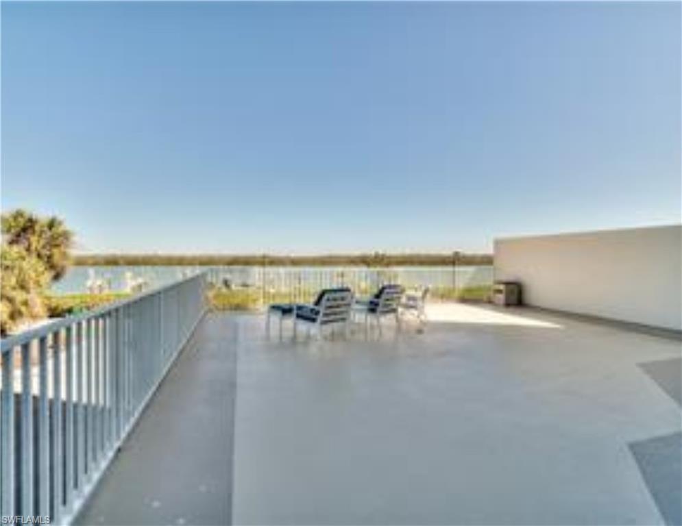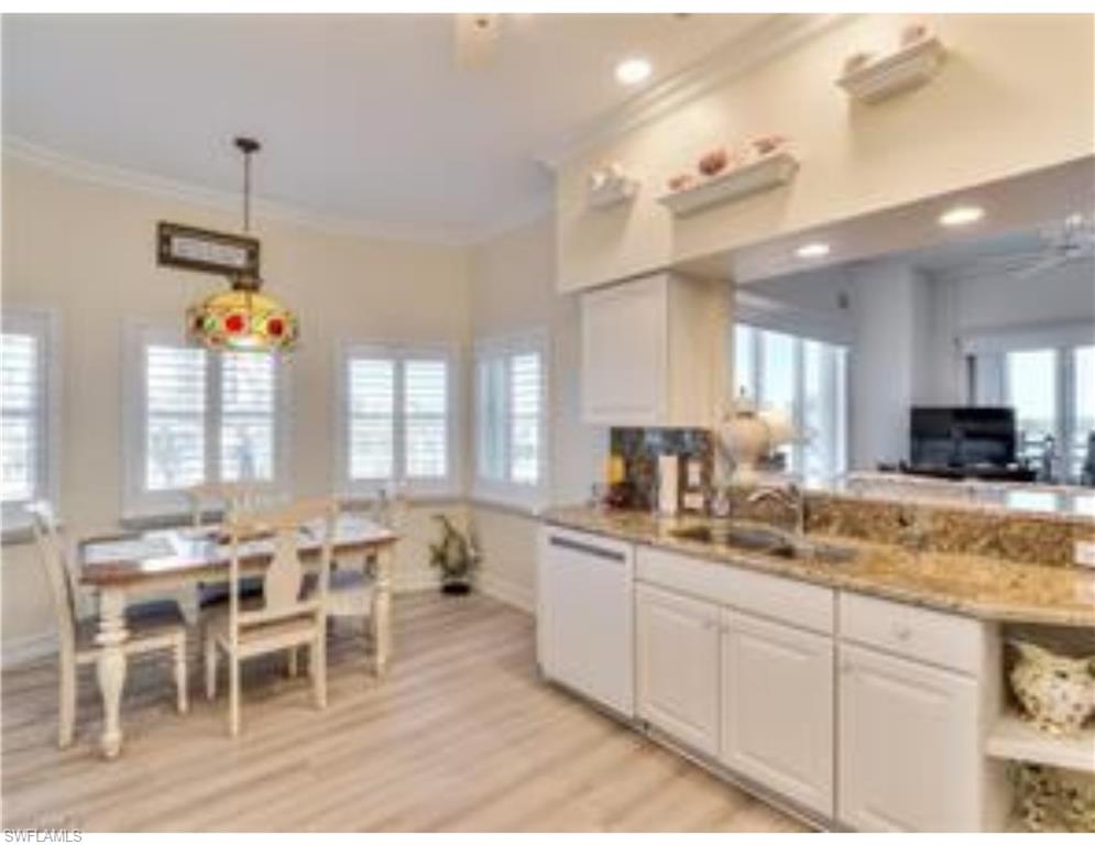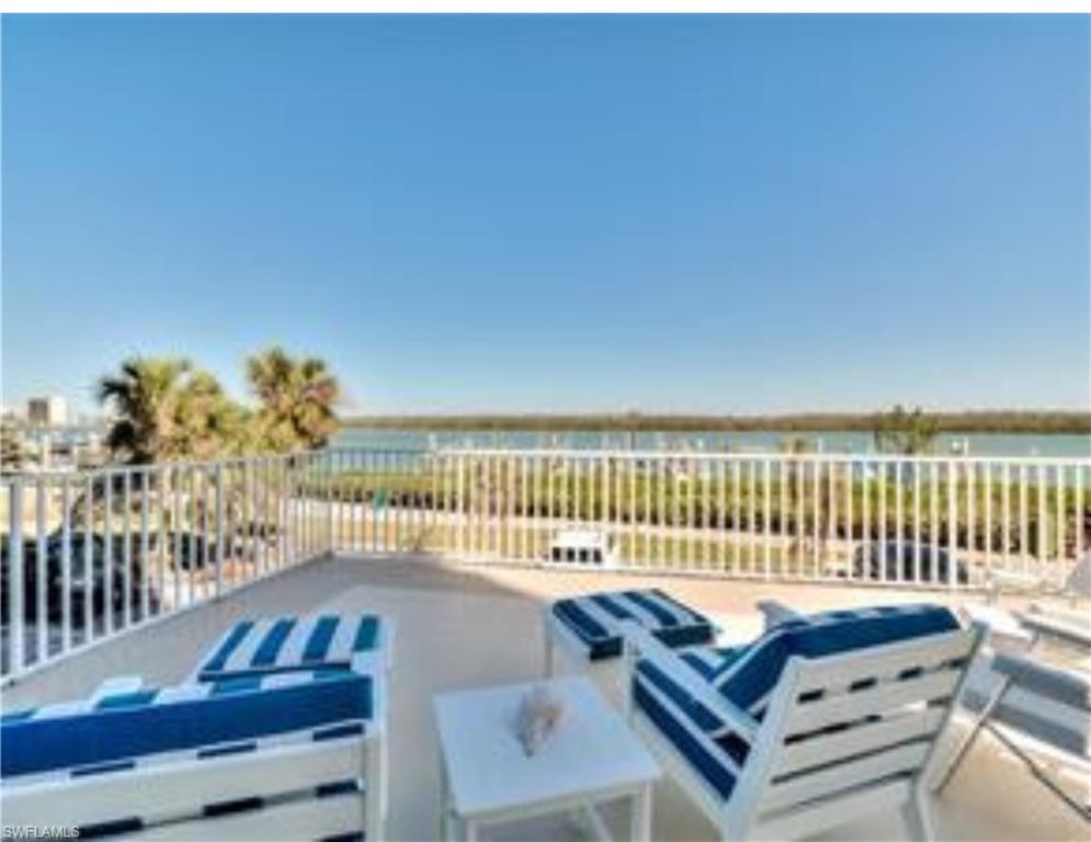 Welcome to Waterside at Bay Beach, one of the premier gated communities on Fort Myers Beach. This beautifully updated 3 bedroom 3 bath waterfront residence combines modern finishes, rare features, and resort-style amenities for the ideal coastal lifestyle. This spacious condo includes a highly desirable under-building enclosed garage as well as 3 full bathrooms—a feature not found in most 3 bedroom units. Inside, you’ll find thoughtful upgrades throughout, including CoreTech flooring, wide baseboards, designer light fixtures and ceiling fans, a renovated primary ensuite bath (2020), a 2017 water heater, and a 2019 A/C system for added comfort and peace of mind. The renovated kitchen showcases elegant granite counters and backsplash, updated lighting, a newer KitchenAid dishwasher, a Samsung refrigerator (2018), and an eat-in island with adjacent dining area, perfect for everyday living or entertaining. The double door entry features a custom artist-designed foyer, while the front bedroom and kitchen include new window shutters and all-new shades throughout. One of the rare highlights of this residence is its dual outdoor living space: a screened lanai with travertine flooring for year-round enjoyment, and an expansive open deck offering space for lounge chairs and outdoor dining furniture. This combination of indoor-outdoor living is unique within Waterside and provides the perfect setting for relaxing with tranquil bay views. Community amenities include a resort-style pool and spa, fitness center, sauna, tennis courts, fishing pier, and jogging/walking paths. The gated entrance with 24-hour guard offers added security. For boating enthusiasts, Gulf access is just minutes away from the on-site boat slips, available for lease or for additional purchase. Waterside at Bay Beach is located on the quiet south end of Fort Myers Beach, providing easy access on and off the island while keeping you close to the Gulf of Mexico, sandy beaches, local restaurants, and shopping. This is your opportunity to own a move-in-ready waterfront condo with modern upgrades, rare outdoor living spaces, and one of the most desirable locations on the island.