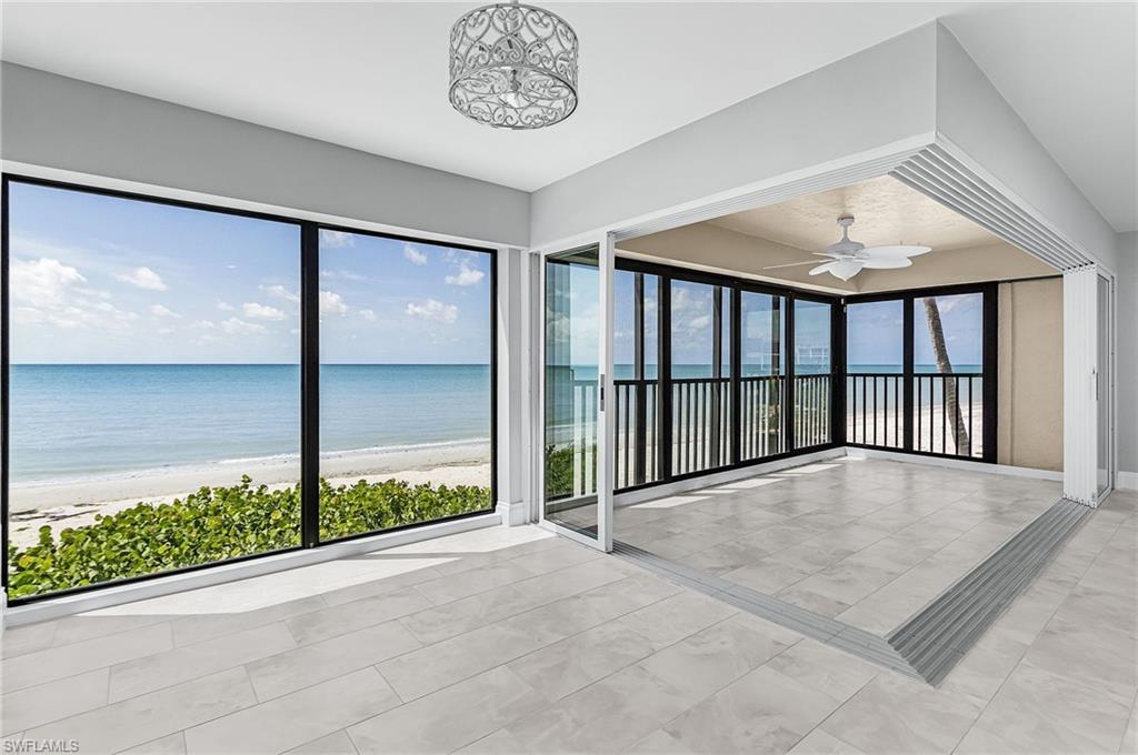 Experience the very best of Sanibel Island in this direct Gulf front, 2 bedroom, 2 bath west corner residence at Kings Crown, ideally located in the southernmost building with unobstructed, panoramic Gulf views. Rarely available, this condominium combines location, luxury, and lifestyle in one of Sanibel’s most desirable beachfront communities. Completely remodeled by Seagate Development Group, the home reflects high end design and superior craftsmanship. The kitchen features Craftsman “Salem” maple cabinetry, Quartz “Soapstone Mist Polished” counters, and upgraded appliances. Flooring throughout is Tesoro “Madras Grigio Matte” 12x24 porcelain tile, delivering a seamless and sophisticated finish. The kitchen, dining, living room, and lanai all face the Gulf, offering a wide open design that maximizes natural light and water views. Expansive corner windows provide front row seats to spectacular sunsets, while the lanai offers the perfect setting to relax, entertain, or watch dolphins and the island’s many bird species glide by. Both bedrooms are positioned privately away from the shoreline, creating peaceful retreats while the main living spaces remain fully focused on the beach and water. Kings Crown Condominiums enhances island living with a tranquil community of just 54 units. Amenities include an assigned large ground level storage unit, covered under building parking, a large heated pool, pickleball and tennis courts, and beautifully landscaped grounds. A dedicated on site maintenance manager, available Monday through Friday, ensures the property is impeccably maintained and provides exceptional service. From this building, you are just steps to the sand, with world class shelling right outside your door. Located on prestigious West Gulf Drive, Kings Crown offers a rare combination of exclusivity and convenience, delivering direct beachfront access in a serene, private setting. Whether enjoying your morning coffee, strolling the beach, or entertaining against the backdrop of a glowing sunset, this residence captures the essence of upscale coastal living. Ideal as a winter retreat or a premium investment property, Kings Crown 201 offers the perfect balance of location, amenities, and high end design. A true Gulf front gem on Sanibel Island.
