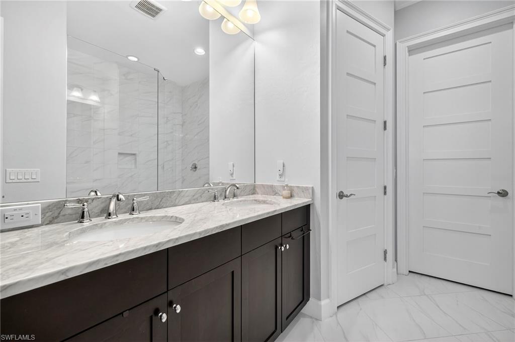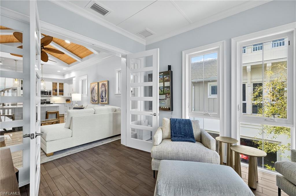 Welcome to your new coach home with high-end upgrades and exceptional craftsmanship throughout! Located in one of Naples’ finest gated communities—The Isles of Collier Preserve. This layout is know as the Oleander Grande which gives you 2 bedrooms, a den, 2 full bathrooms, just over 2100 square feet and a 2-car garage. Your private elevator makes access easy—no need to climb any stairs. Step inside and notice the open concept living area that flows seamlessly into the kitchen and eating area. Those main areas are both updated with tile flooring (also extended throughout). Features lining the kitchen include beautiful countertops, an oversized island, stainless-steel appliances, solid white cabinets with glass panels and a new dishwasher in 2024. Adjacently, you have your living room with high ceilings, crown molding, and wood added to the ceiling in 2018. This area overlooks your private glass-enclosed sunroom with floor-to-ceiling casement windows, which bring in an abundance of natural light. Walk upstairs where you will find your den/ office space and wraparound balcony! Back downstairs, the spacious owner’s suite offers peaceful views, automatic shades (2019), two walk-in closets, and a bathroom with dual sinks, quartz countertops, and a large step-in shower. Giving ample privacy to everyone residing, the opposite side of the home is where you will find the additional bedroom and bathroom. The guest bedroom is spacious and perfect for family members and other guests. Additional interior upgrades setting this home apart from others include new A/C units both w/ upgraded filtration, added tinting to all windows (2018), upgraded light fixtures and ceiling fans (2018), wall treatments added in main bedroom, dining room and great room (2018), new furniture (2025), new washer/dryer (2024), added book shelves crows nest (2018), barn door closet to extra room (2018), plantation shutters on most windows (2018), replaced all connections to faucets (2024) and replaced all lighting with LED lights 2020. Out in the garage, there is a new high-efficiency hot water heater (2023), whole house water filtration (2019), garage floor coated (2020), additional lighting added (2023), storage racks added (2024), and a ceiling fan (2023). 2023). The heavy lifting has been done, now it's ready for you to enjoy! Outside of your home, the Isles of Collier offers a resort style pool, lap pool, pool-side restaurant, a club house, state-of-the-art fitness center, saunas, a spa, tennis courts, pickle-ball, bocce, walking/biking paths, kayaking, canoeing, paddle boarding, and a dog park. The isles is also adjacent to the National Pickleball Headquarters featuring 65 open and covered courts!