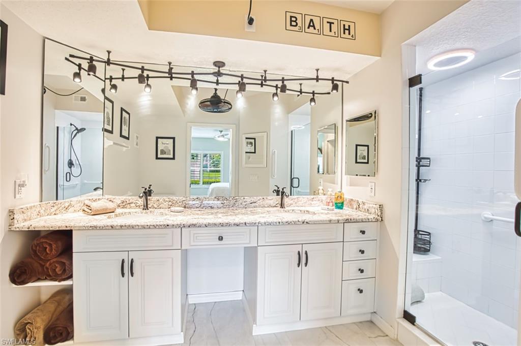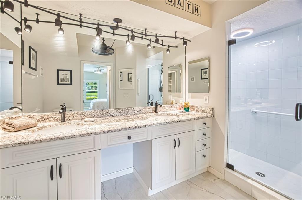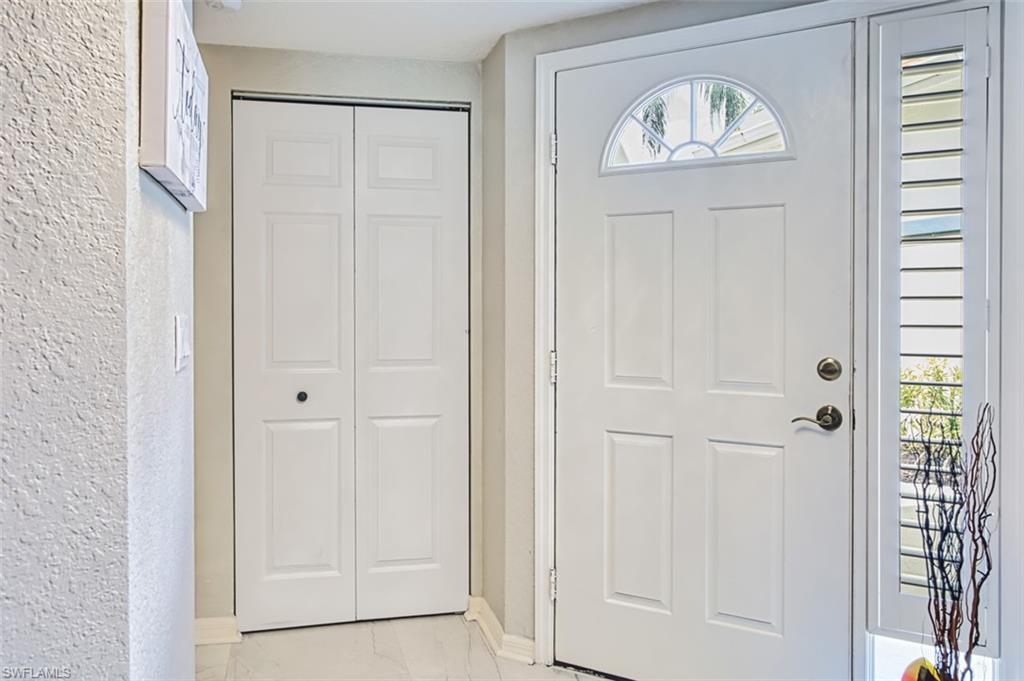 Exceptional Opportunity in the Heart of Estero. Step into this beautifully updated and redesigned 2-bedroom, 2-bath home in the sought-after community of Lighthouse Bay—just steps to the amenity center and complete with a one-car garage. From the moment you enter, you'll be impressed by the large-format porcelain tile and luxury wood-style vinyl flooring throughout. The open-concept layout features a beautiful kitchen with custom built-ins, added cabinetry, roll-out trays, and expanded workspace—all topped with premium-level granite. The lakeside lanai has been transformed into a sunroom with impact-resistant doors, offering serene views of the lake and fountain. All windows have been upgraded to impact glass for peace of mind and energy efficiency. The spacious owner’s suite includes thoughtfully designed custom closets that maximize storage. The en-suite bathroom boasts dual sinks, upgraded cabinetry, and ample space for all your essentials. Premium lighting and fixtures throughout the home elevate the style, while the turnkey furnishings make moving in effortless. Lighthouse Bay offers a gated, resort-style lifestyle with five pools (including a lap pool), 2.5 miles of scenic walking and jogging paths, tennis courts with a pro, bocce, pickleball, two boat houses, fitness center, sauna, clubhouse, library, and an arts and learning center. Ideally located in the Village of Estero, this home is less than a mile from top-tier shopping and dining. It includes a Bronze Membership to The Brooks Commons Club, offering access to a private restaurant, enrichment programs, social events, pickleball, and more. You're just minutes from Coconut Point Mall, fine dining, entertainment, Southwest Florida International Airport, and the area’s beautiful Gulf beaches—making this condo the perfect place to enjoy everything Southwest Florida has to offer.