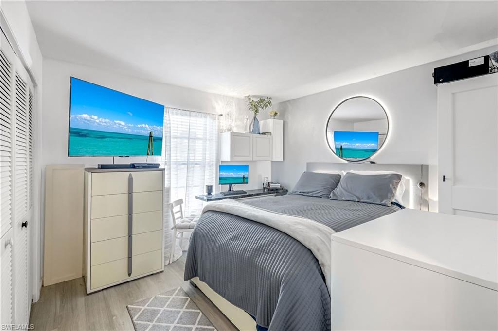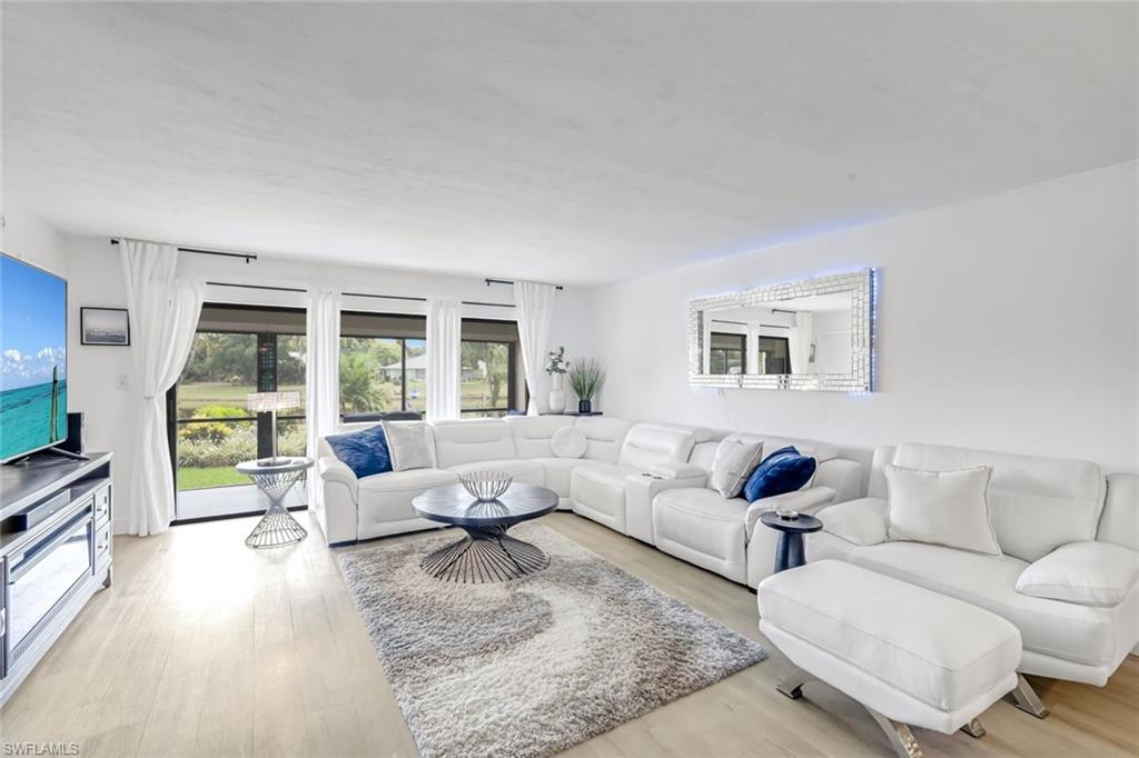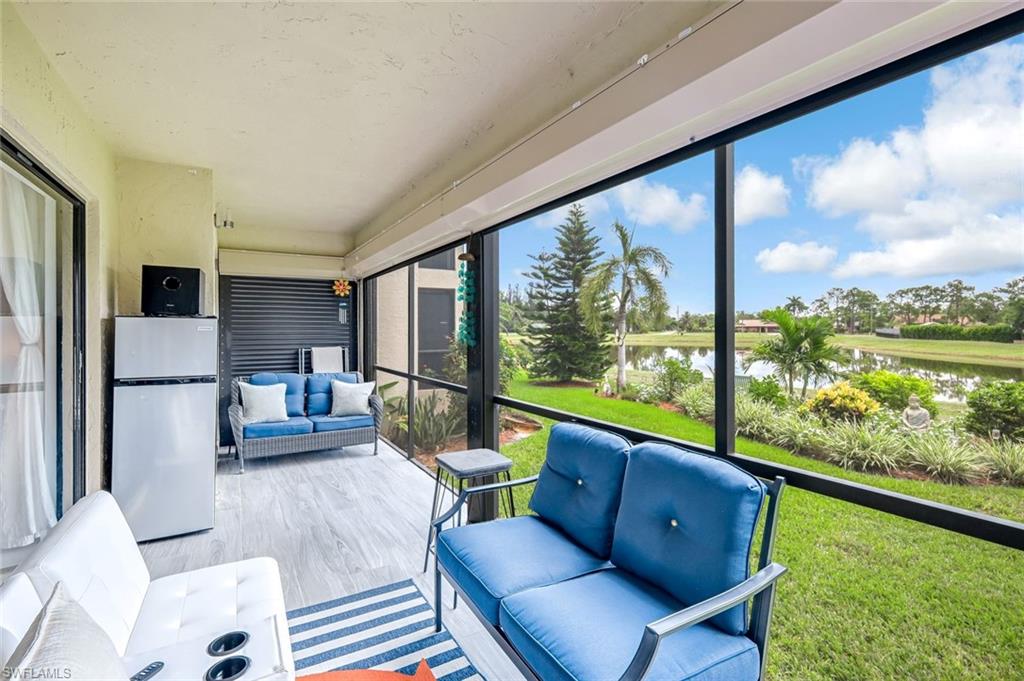 Welcome to this charming 2-bedroom, 2-bathroom condo in the heart of Bonita Springs. Designed with an open floor plan, this home offers a spacious and inviting layout that flows seamlessly from the living area to the screened-in lanai. Enjoy peaceful mornings and tranquil evenings with serene views of the beautifully manicured garden and lake just beyond your back door. The updated kitchen boasts modern finishes, abundant cabinet and counter space, and even a dedicated coffee/tea/beverage bar—perfect for entertaining or everyday convenience. Retreat to the lanai, complete with electric shutters for added storm protection, where you can relax and take in the scenery year-round. Located in a quiet 55+ community, residents enjoy access to a refreshing community pool, along with the comfort of a well-maintained neighborhood. This condo is ideally situated just minutes from shopping, dining, pristine beaches, and more, offering the best of Southwest Florida living.
