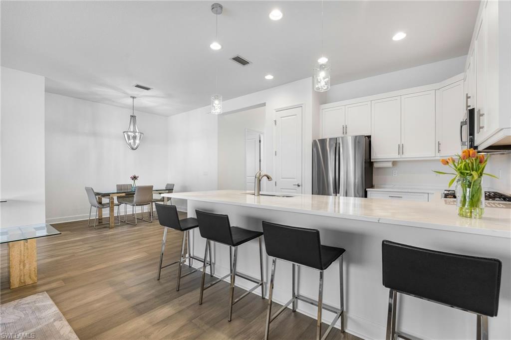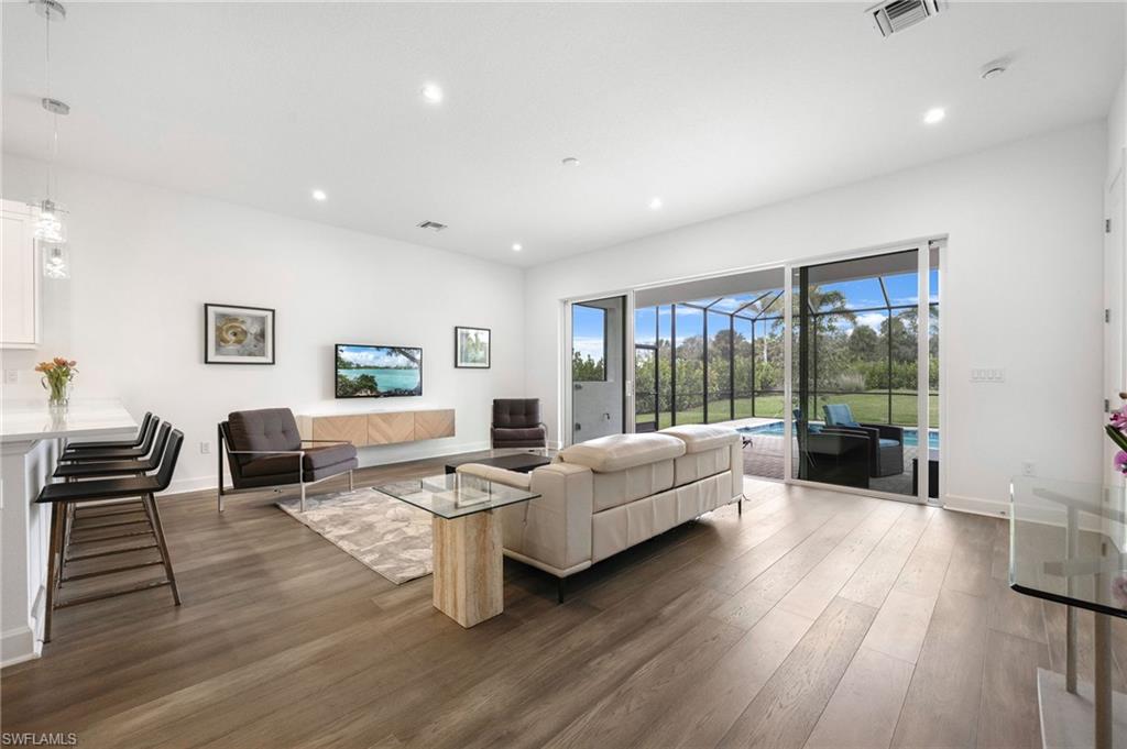 Luxury Living in Valencia Trails! Enjoy comfort and style in this brand-new, never-lived-in pool and spa home on a premium corner lot in one of North Naples’ top 55+ gated communities. Inside, an open floor plan features high-end finishes, hardwood floors in the main areas, plush carpet in bedrooms, impact windows, a spacious laundry room, and much much more! The gourmet kitchen shines with stainless steel appliances, premium cabinets, and quartz countertops. Both bathrooms offer a modern, spa-like feel. Step outside to your private backyard oasis with a gas-heated pool and spa—perfect for relaxing or entertaining while watching amazing sunsets. Valencia Trails offers resort-style living with a 43,000 sq. ft. clubhouse, 24/7 fitness center, group classes, full-service spa, restaurant, bar and grill, tennis, pickleball, bocce, dog park, multiple pools, and miles of walking and biking trails through beautiful natural surroundings. This home is at the back of the neighborhood which will be positioned perfectly near the new entrance to Vanderbilt Beach road that will be finished soon. This home is the perfect blend of luxury, comfort, and active living. Don’t miss your chance—schedule a private showing today!