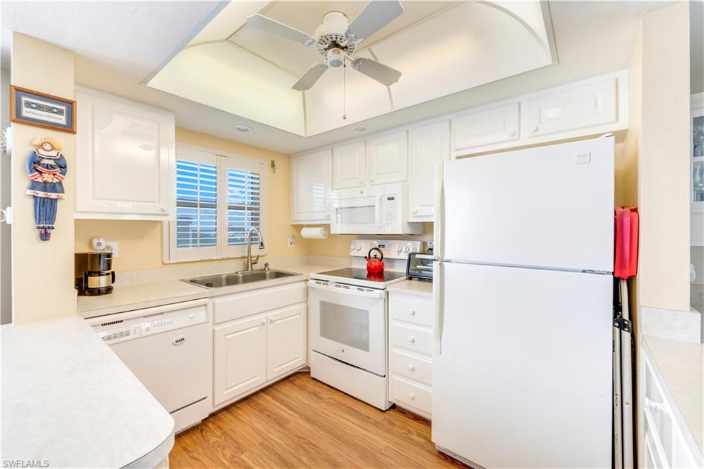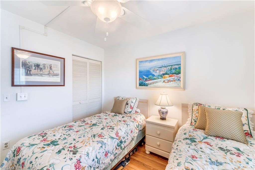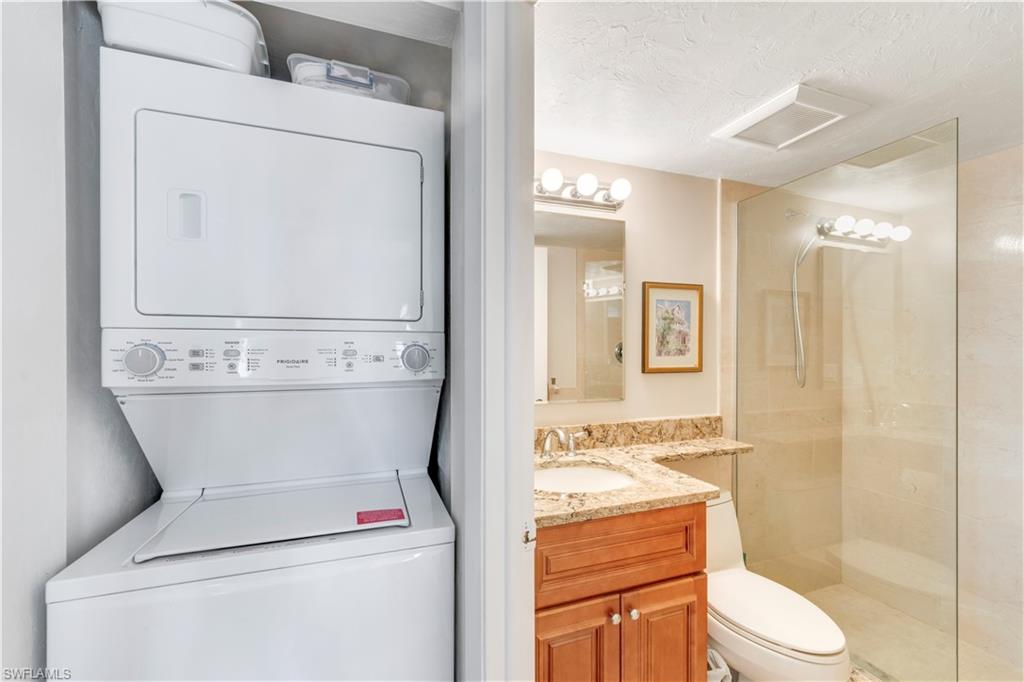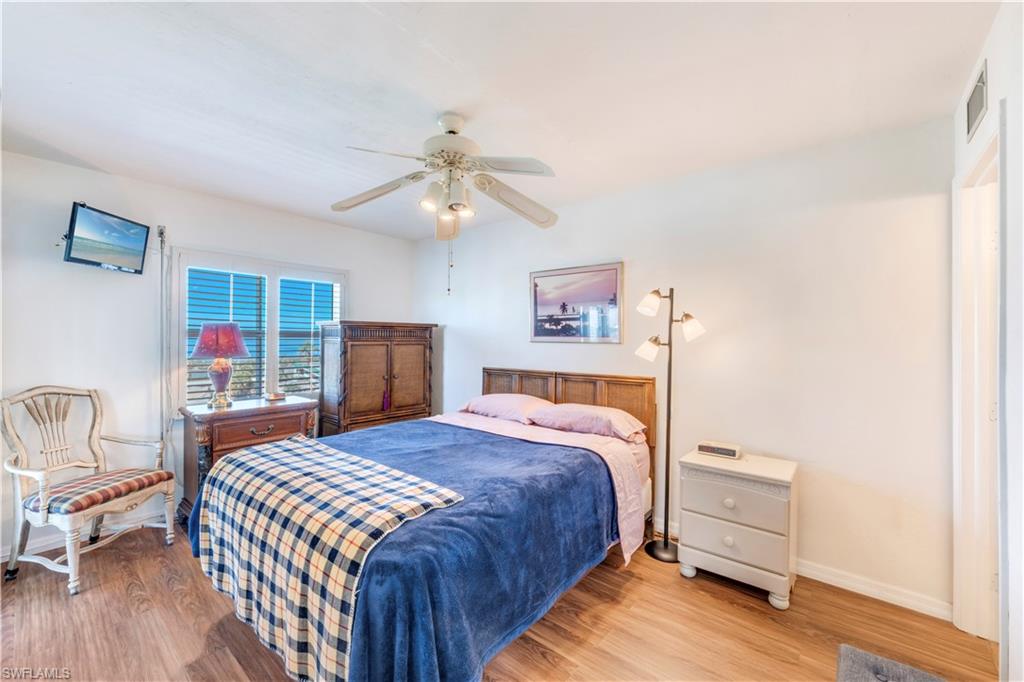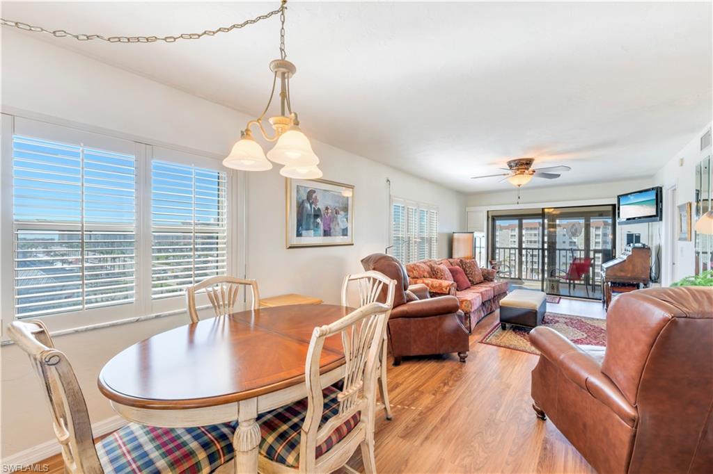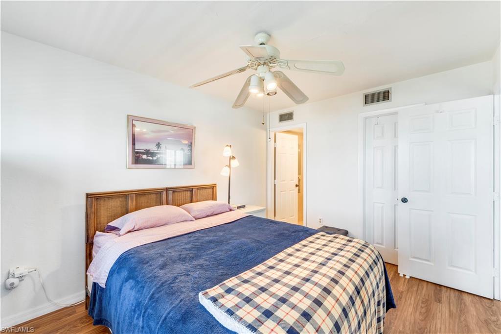 Welcome to your slice of paradise in Estero Cove! Highly desired CORNER UNIT with stunning 5th floor GULF views from your specious screened lanai! Located in building 5 which is right across the street from the beach! Features HURRICANE IMPACT SLIDERS and WINDOWS throughout, as well as HURRICANE SHUTTERS for added storm protection. This condo is well taken care of with so many updates! All windows and sliders have beautiful plantation shutters! Newer electric panel, baseboards, doors, cabinets and counters! Luxury laminate flooring throughout and new tile on the lanai. Remodeled bathrooms both have walk in tiled showers with glass doors, granite counters, Kolar toilets, Moen faucets, and silent exhaust fans. Additional updates include 2024 Water heater, 2022 AC unit and 2024 washer and dryer. Fantastic walkable LOCATION just across the street from the beach and next to Santini Plaza with shops and restaurants!