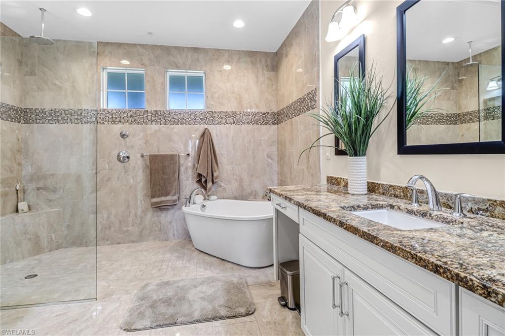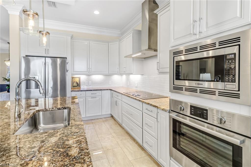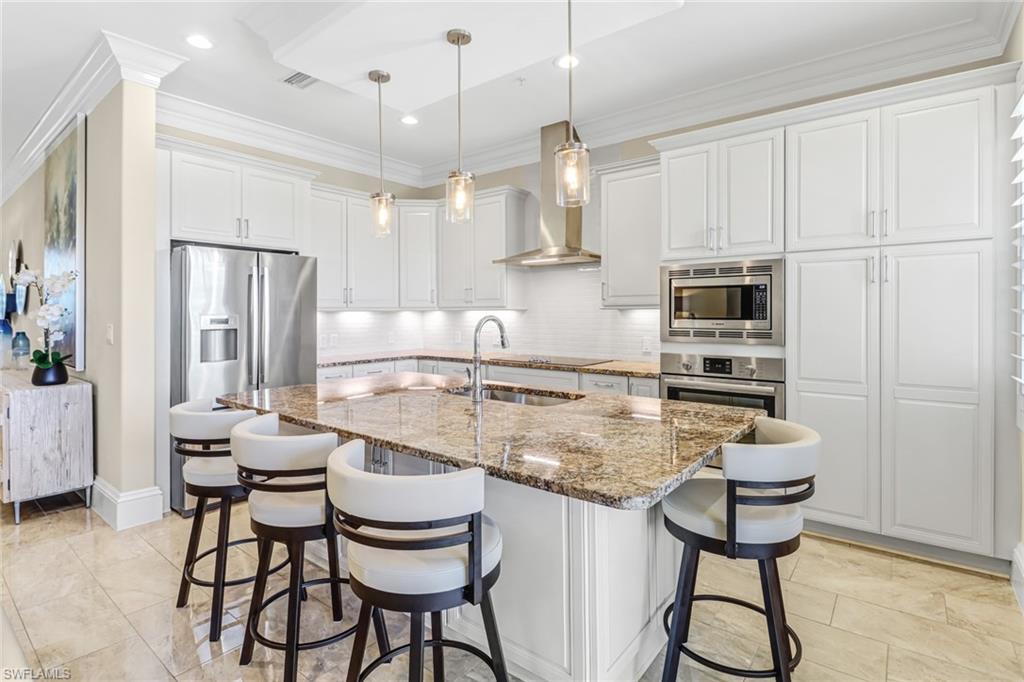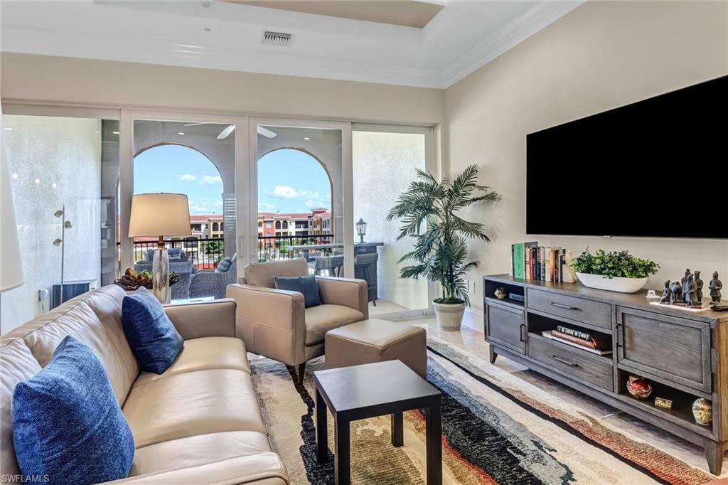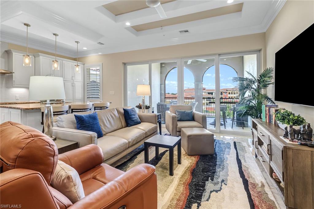 Welcome to the Genova Luxury Condos located in Estero, where opulence meets convenience. This exquisite 4th-floor condo offers a lavish open floor plan with 3 bedrooms and 2 bathrooms. Enter to find high-end features like a wall oven and microwave, granite counters, and luxurious tiled floors that exude sophistication. The oversized screened-in balcony presents breathtaking, private views, creating an oasis of tranquility. Indulge in the spa-like large, tiled shower with a free-standing tub, while coffered ceilings and elegant window treatments add to the upscale ambiance. Added luxuries include an oversized 2-stall garage, a locked storage locker, and an air-conditioned storage closet, ensuring ample space for your belongings. Genova amenities elevate your lifestyle with an indoor lap pool, outdoor resort-style pool, fitness center, clubhouse, and bocce courts. A private gate leads to Estero Community Park, offering a dog park, pickleball courts, and a vibrant community center just steps away. Experience the pinnacle of luxury living at Genova Luxury Condos of Estero!