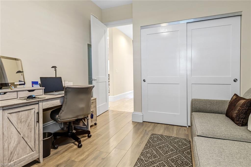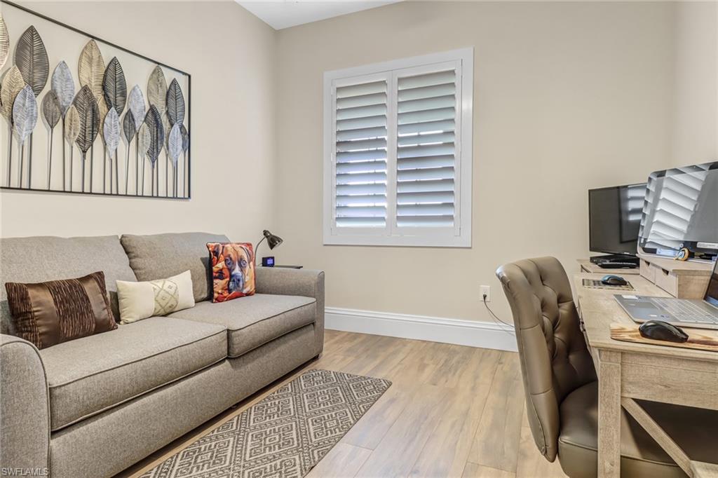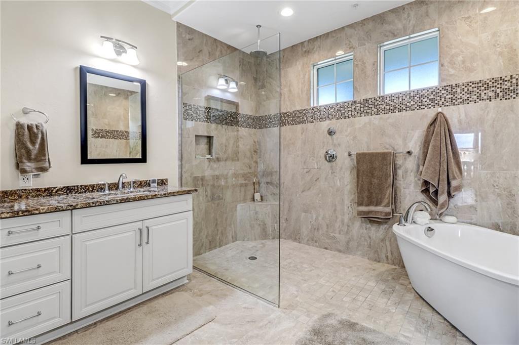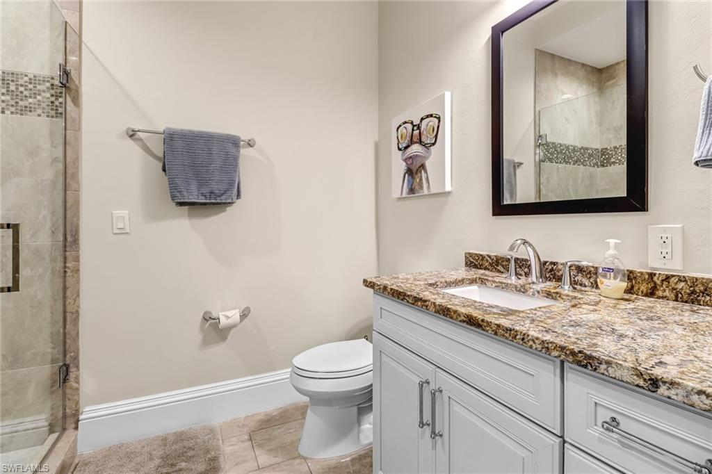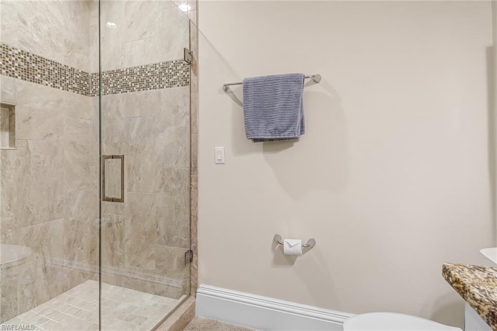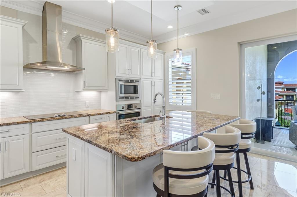 Welcome to the Genova Luxury Condos located in Estero, where opulence meets convenience. This exquisite 4th-floor condo offers a lavish open floor plan with 3 bedrooms and 2 bathrooms. Enter to find high-end features like a wall oven and microwave, granite counters, and luxurious tiled floors that exude sophistication. The oversized screened-in balcony presents breathtaking, private views, creating an oasis of tranquility. Indulge in the spa-like large, tiled shower with a free-standing tub, while coffered ceilings and elegant window treatments add to the upscale ambiance. Added luxuries include an oversized 2-stall garage, a locked storage locker, and an air-conditioned storage closet, ensuring ample space for your belongings. Genova amenities elevate your lifestyle with an indoor lap pool, outdoor resort-style pool, fitness center, clubhouse, and bocce courts. A private gate leads to Estero Community Park, offering a dog park, pickleball courts, and a vibrant community center just steps away. Experience the pinnacle of luxury living at Genova Luxury Condos of Estero!