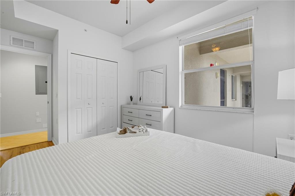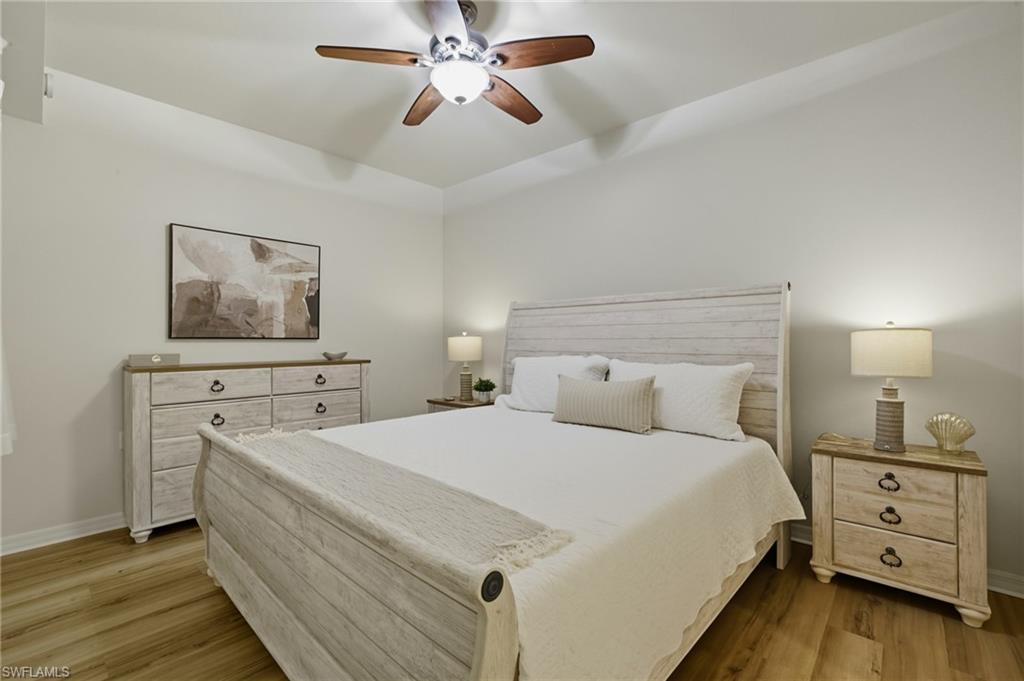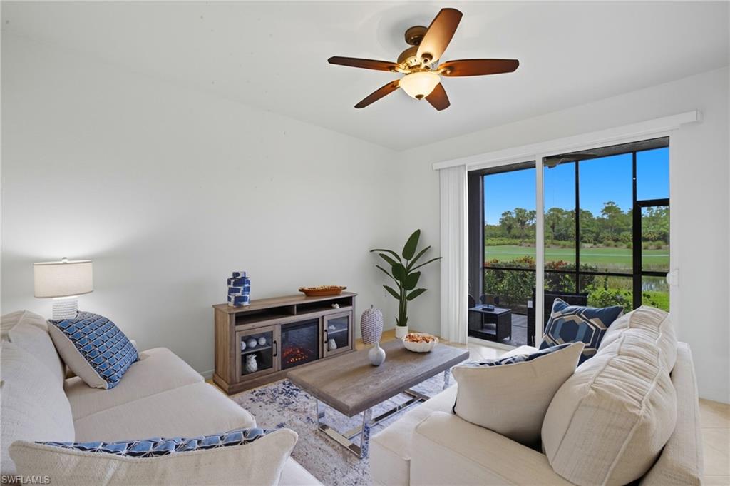 Step into this beautifully appointed first-floor Brookside model in the prestigious Heritage Bay Golf & Country Club. Featuring all-new furniture, a new water heater, and a newer A/C, this 2-bedroom + flex space for office, 2-bathroom home is completely move-in ready for either full-time or seasonal residents looking for an Active lifestyle with access to world-class amenities at an affordable price. An extra storage closet is perfect for beach gear, while your covered parking adds convenience and peace of mind. With its ground-floor location, you’ll enjoy the ease of no stairs or elevator wait times. Take in sweeping views of the Cypress Tee #13 and 14th fairway, creating a serene backdrop for morning coffee or evening relaxation from your private lanai with a no-see-um screen offering protection from the outside. Life at Heritage Bay offers an unbeatable blend of luxury, recreation, and community. Your bundled golf membership includes access to 27 holes of championship golf, an aqua driving range, and full-service locker rooms. Stay active with an incredible tennis and pickleball program or enjoy bocce ball, and a full-service fitness center and a clubhouse with a sauna. Relax and recharge at the resort-style pool, one of the 5 satellite pools, or meet friends at the Cabana poolside bar and grill for a casual bite. The vibrant Grille Room features indoor and outdoor dining, plus a lively bar, while the community calendar of activities ensures there’s always something fun and social to enjoy. This home is the ideal blend of comfort, convenience, and a true resort lifestyle — making it a rare opportunity in one of Naples’ most desirable golf and country club communities. Once you have made Heritage Bay home, you will never want to leave, but when you do, you are just minutes away from top medical facilities, shopping, and dining. Come see why so many have chosen Heritage Bay as their home away from home!