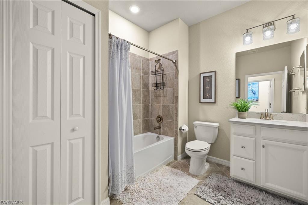 COME SEE THIS "WOW" COACH HOME!! This is an impressive second floor, 3 bedroom/2 bath/2 car oversized garage condo with a big lanai and sweeping sunset views. What enjoyable evenings you will have sitting on your west rear facing lanai watching our gorgeous Florida sunsets! Beautifully furnished and decorated with 3 big bedrooms - Located in Bonita National Golf & Country Club - Social Membership includes all amenities except golf. (Golf is available May through November/off season for Social memberships). Being sold Turnkey/everything included and golf cart is negotiable. This condo is very well stocked from kitchen to bathrooms and everything in between! Current owner has contacts for past renters if new owner is interested. Plenty of storage space: walk-in closets in all 3 bedrooms plus three extra storage closets and the oversize 2 car garage gives plenty of room for bike storage, 2nd refrigerator, etc. Walking distance to the clubhouse with amazing amenities: gorgeous resort style pool - poolside bar and grill - state of the art workout facility - formal & veranda dining - tennis - plus "coming soon" pickleball & bocce ball! - Utopia skin, nails, & massage spa. The LOCATION is really perfect! Just ten miles straight down Bonita Beach Road lands you in the sand and surf at Barefoot/Bonita Beach. Plenty of places to eat, drink, or get ice cream along Bonita Beach Road! Those ten miles inland get you out of the heavy traffic congestion and no flooding worries. Just 5 miles to Publix grocery and within 20 miles of Fort Myers International Airport, Downtown Fort Myers Beach, and Naples.