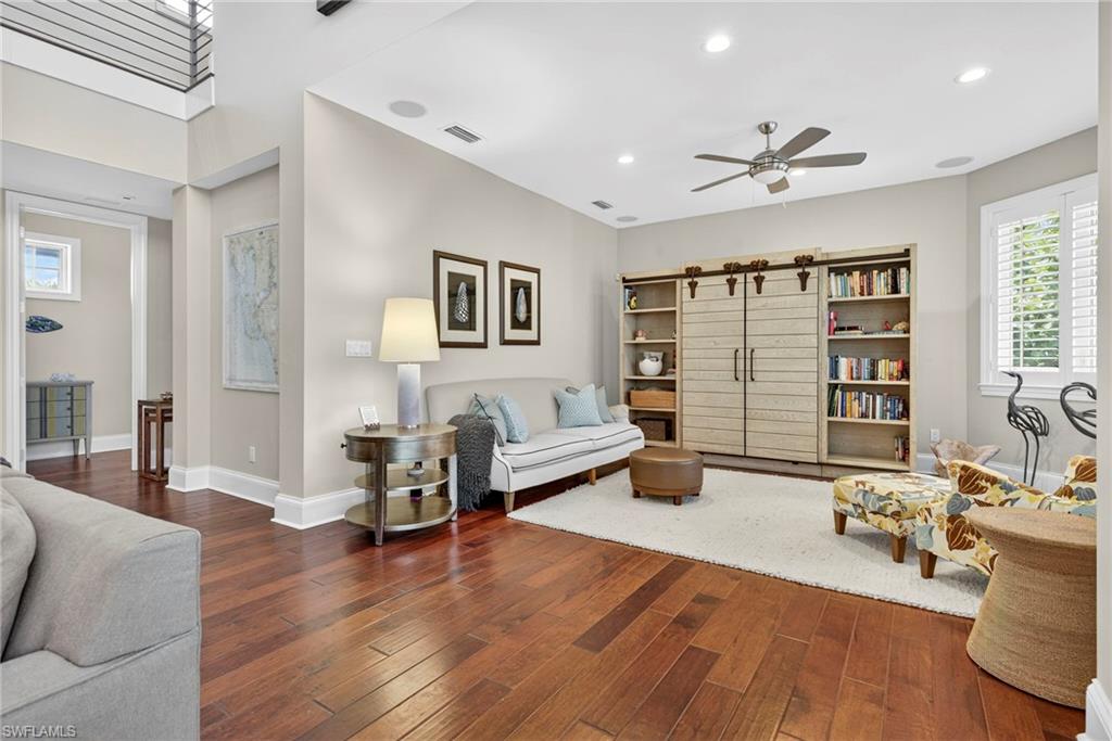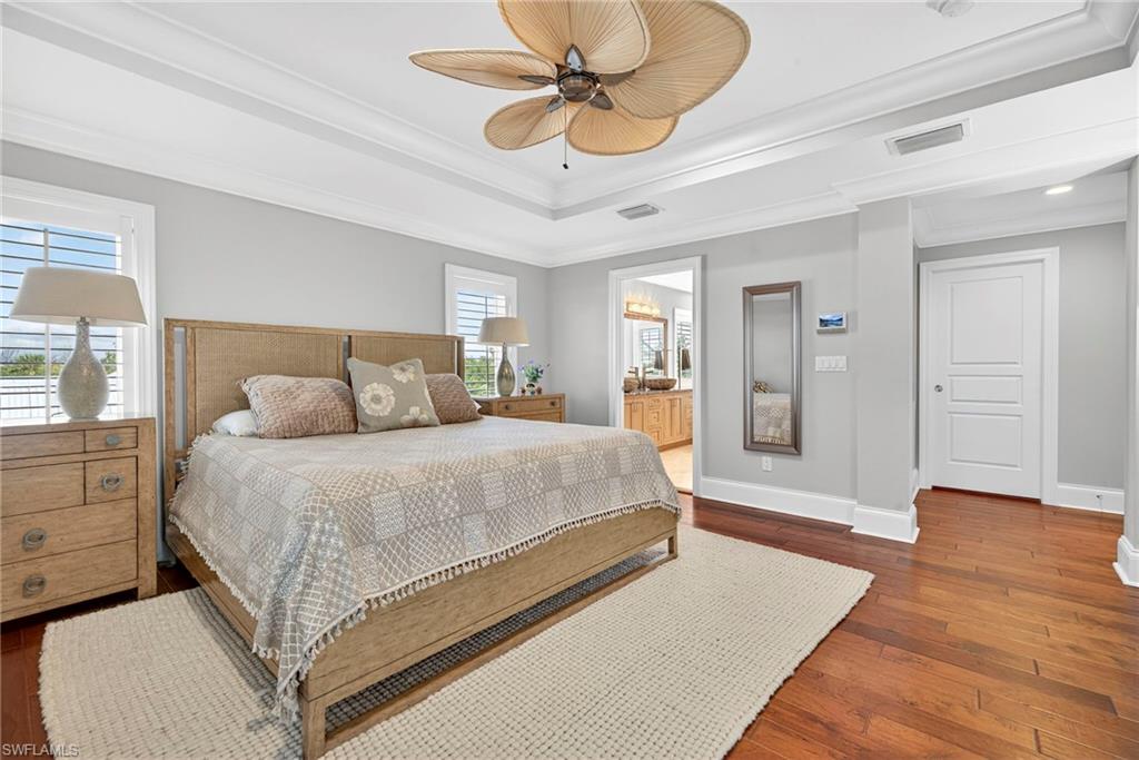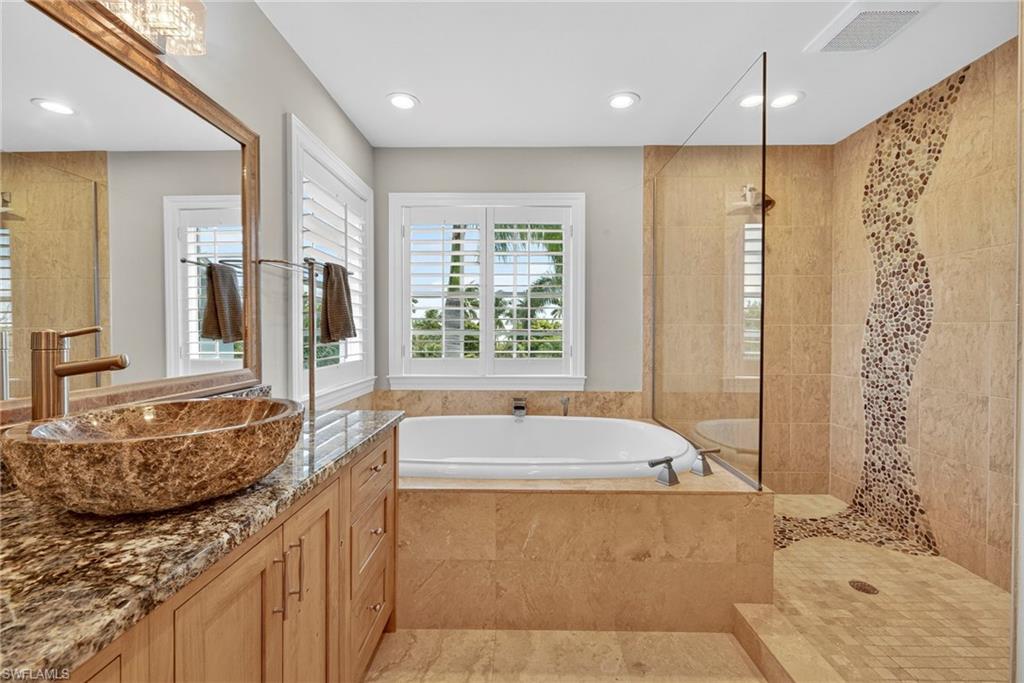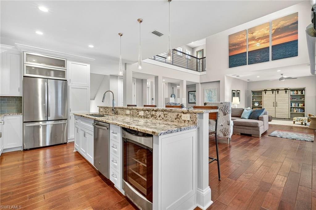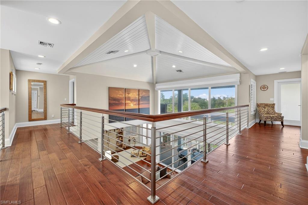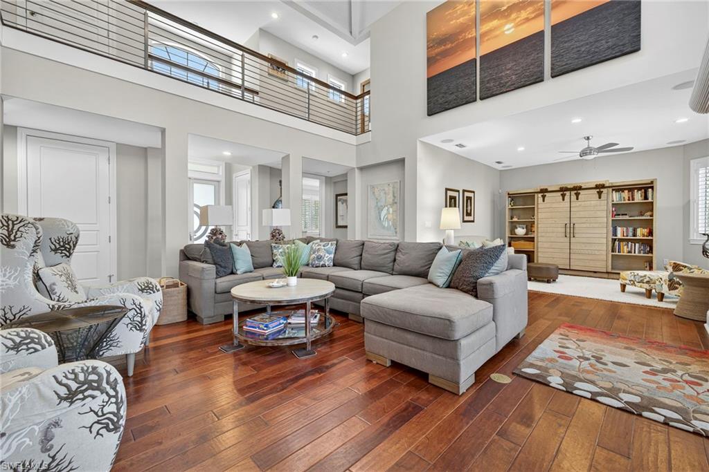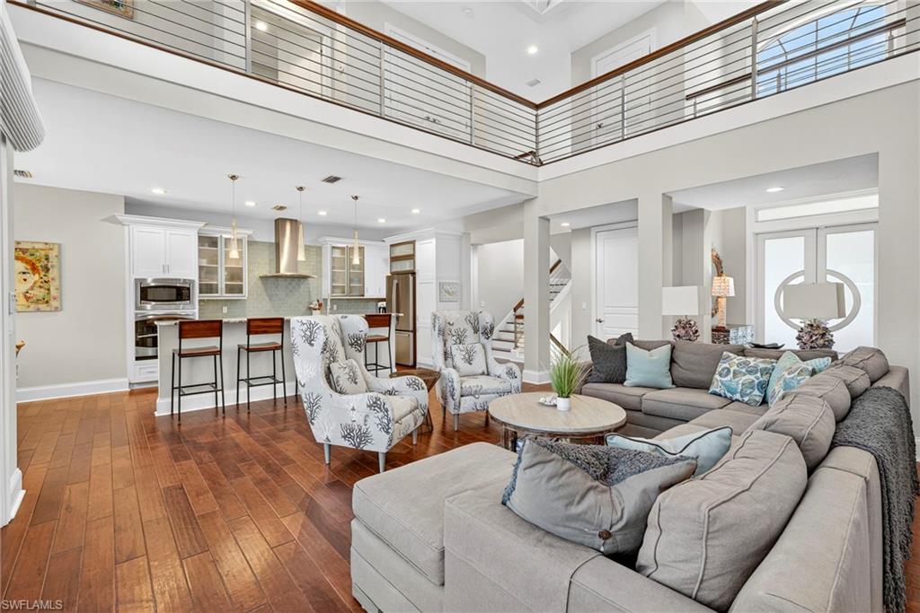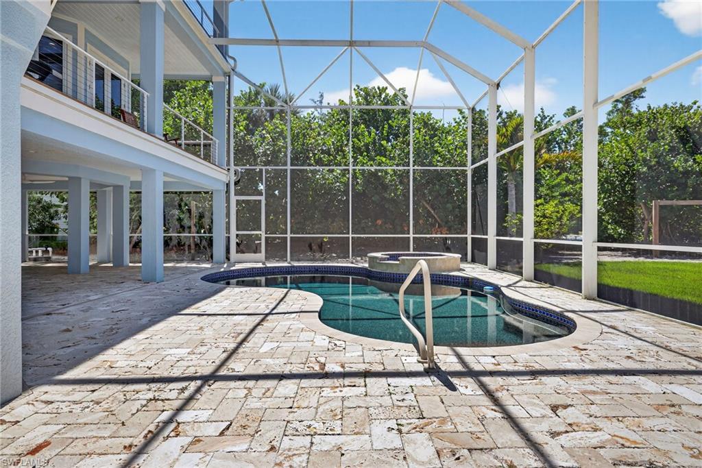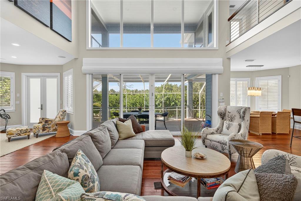 Tucked in the exclusive enclave of Seaspray, this exquisite residence embodies a balance of modern coastal luxury and timeless island charm. Just three lots from Sanibel’s famed, award-winning beaches, the home is so close to the Gulf you can hear the rhythmic surf and the call of seagulls and eagles overhead, all while being only a short distance from sun-soaked days on the sand. Built in 2011, the home offers peace of mind with stalwart construction, impact-rated doors and windows, and materials designed to endure, from durable Hardie board siding and composite decking to sleek aluminum railings and a metal roof. Inside, more than 3,550 square feet of inspired living space unfolds in light-filled elegance. A soaring great room with two-story ceilings showcases inlaid wood and accent beams, while a dramatic gallery walkway overlooks the space, adding architectural intrigue. Gleaming wood floors lead to an open-concept kitchen where light-toned cabinetry, a shimmering glass tile backsplash, and stainless-steel appliances create a fresh, inviting atmosphere ideal for family dinners or an evening of entertaining. With four spacious bedrooms, four full baths (all en suite) and a powder room, the home was designed for grand entertaining and private retreats. Expansive decks extend from every level, while a rooftop sundeck crowns the residence with sweeping wraparound Gulf views—an extraordinary vantage point for fiery sunsets and starlit evenings. Outdoors, the resort-style pool and spa are framed by a generous paver deck and protected within a two-story screen enclosure, with elevated pool equipment. For effortless convenience, an interior staircase connects the home’s main levels to dual garages and an enclosed lower level, all set on an impressive 0.57-acre lot. An elevator shaft is designed into the home making the addition of a residential elevator almost effortless. Every detail, from the composite finishes to the timeless architectural lines, was crafted to enhance beauty and resilience. In Seaspray—a private beachfront community along Sanibel-Captiva Road—this home offers not only luxury but also a lifestyle defined by serenity, exclusivity and direct connection to the sea.