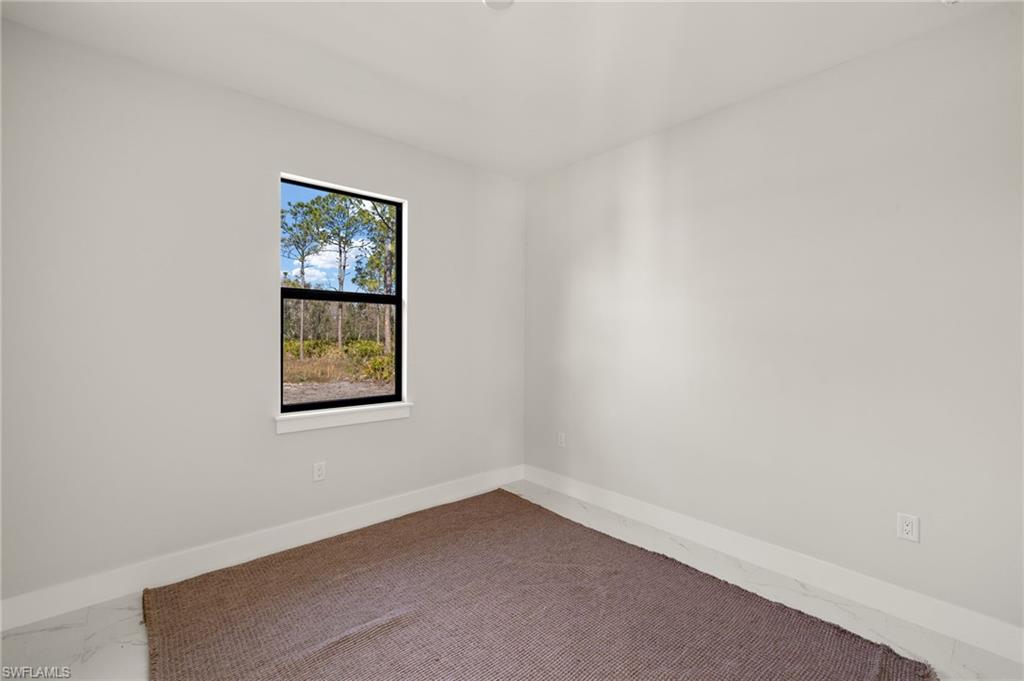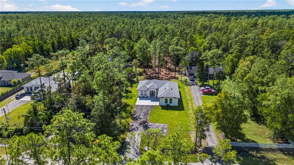 Move-In Ready. PRICE REDUCTION! Lovely 3 BEDROOM PLUS DEN, new construction. GREAT LOCATION! Just minutes from supermarkets, pizza parlor, nail salon, and more. This high quality, beautiful new-build showcases an open floor plan with great attention to details. A bright and airy main living space; light filled den; tile throughout; custom wood cabinets kitchen with quartz countertop, a waterfall island, and beautiful light colored backsplash; soaring high tray ceilings in the living room and master bedroom; 8-ft doors; impact windows and doors; automated sprinkler system; and asphalted driveway. Golden Gate Estates is the perfect combination of peaceful, rural setting, just a short driving distance from all the amazing amenities Naples has to offer.