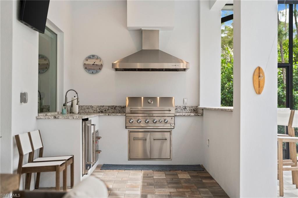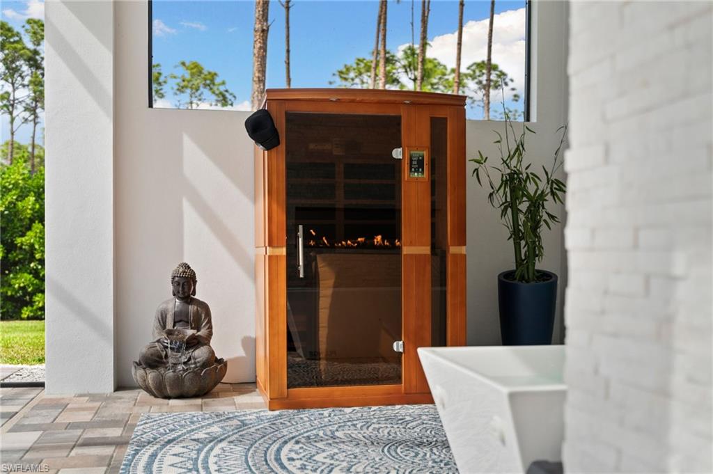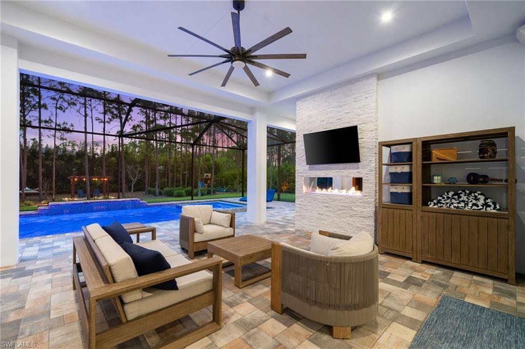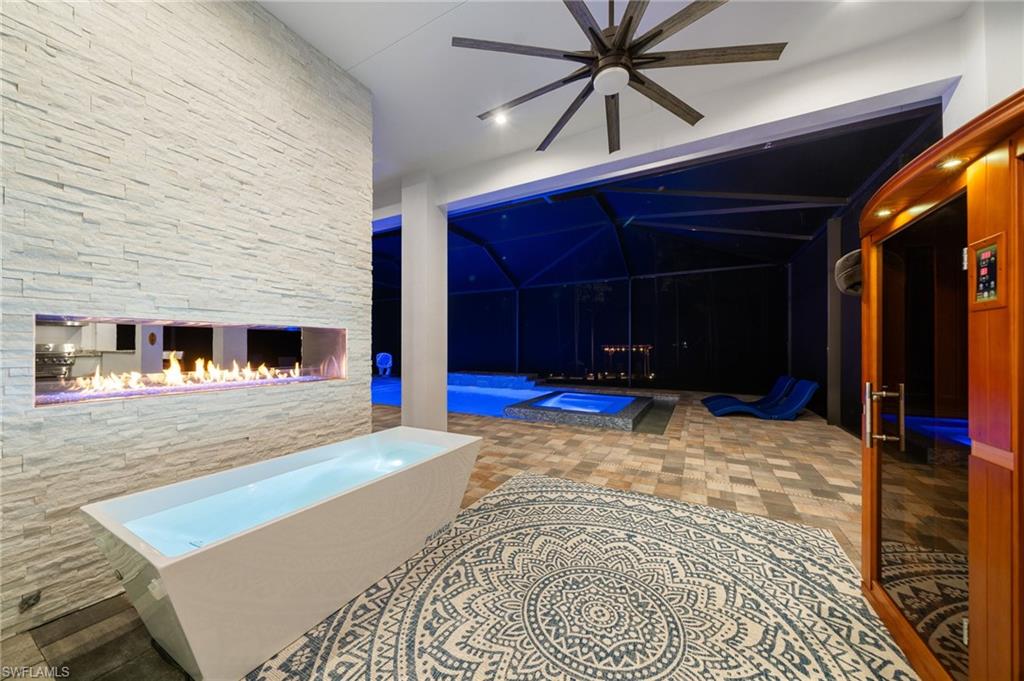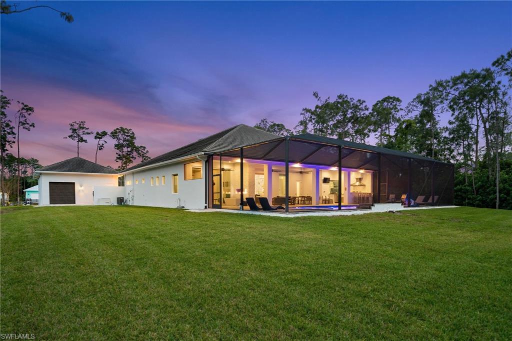 A rare opportunity to own a newer construction luxury estate home in the highly sought-after San Carlos Estates of Bonita Springs—an extremely private, lushly landscaped, and GATED 1.25-acre retreat where modern sophistication meets resort-style living. Available FULLY FURNISHED, showcasing designer pieces from Restoration Hardware, West Elm, and select curated brands. Spanning 3,054 sq ft under air (5,336 total), this open-concept residence features 3 bedrooms plus a dedicated office (easily convertible to a 4th bedroom; plans for a closet are available), 3 full baths, a Dining Room, and two oversized 2-car garages. A wall of 10-foot sliding glass doors creates seamless indoor-outdoor flow to a resort-style lanai with a fully automated custom 40’ pool and spa featuring a 360° negative-edge spillover spa, LED-lit bubblers, three sheer-descent waterfalls, and an oversized sun shelf. The fully equipped outdoor kitchen—with leathered granite, gas grill, hood, sink, and beverage refrigerator—plus a dual-sided gas fireplace, infrared sauna, and cold plunge create a private wellness retreat. Inside, the chef’s kitchen showcases over $40K in Thermador appliances, a massive quartz waterfall island, white shaker cabinetry, and a stylish dry bar with wine refrigerator. The great room centers around a custom fireplace and TV wall, while the primary suite offers a private sitting area/workspace, freestanding soaking tub, dual Pompeii quartz vanities, two spacious walk-in closets, in-ceiling Sonos speakers, and designer lighting. Secondary bedrooms include a VIP en-suite and a third that can be closed off with its own bath for guest privacy. Additional highlights of this fully integrated smart home include two new Lennox A/C systems (2024), a whole-house Generac generator, 1,000-gallon buried propane tank, multi-zone Sonos audio, automatic motorized shades, iSmartGate entry, security cameras, and centralized control via the in-wall iPad. Garage doors, cameras, and every light switch can be controlled remotely with ease—at the touch of a button from anywhere in the world. Fully fenced and DUAL GATED, this property is perfectly positioned near the end of Dietz Dr—most desirable street in neighborhood—offering stunning west-facing sunsets, exceptional privacy, and quiet surroundings while being minutes from everything. Built to the latest codes, the home sits high and dry (not in a flood zone/no flood insurance required) for total peace of mind. Professionally landscaped grounds feature mature greenery, bamboo, clusia hedges, a lit pergola, fire pit, garden, butterfly garden, hammock, and play area. No HOA or rental restrictions. Ideally located minutes from Coconut Point, Bonita Beach, and the area’s best shopping and dining, this exceptional home combines luxury, technology, and tranquility in one perfectly executed estate. Be sure to inquire or visit the HIGHNOTE link for tons of additional details, including the feature sheet, plans, 3D tour, video and more!