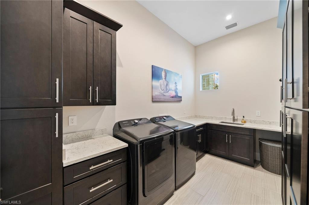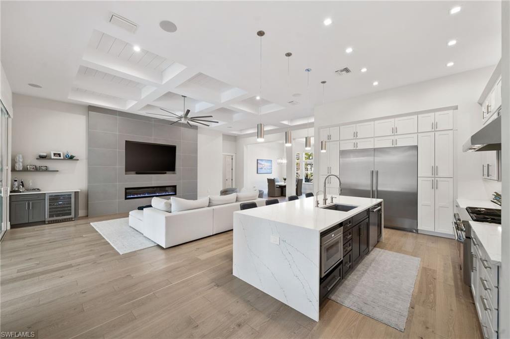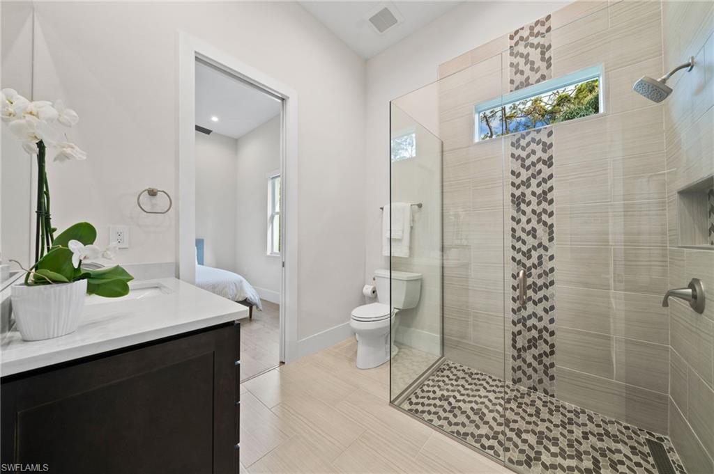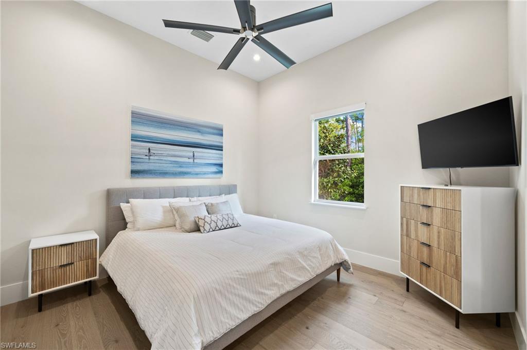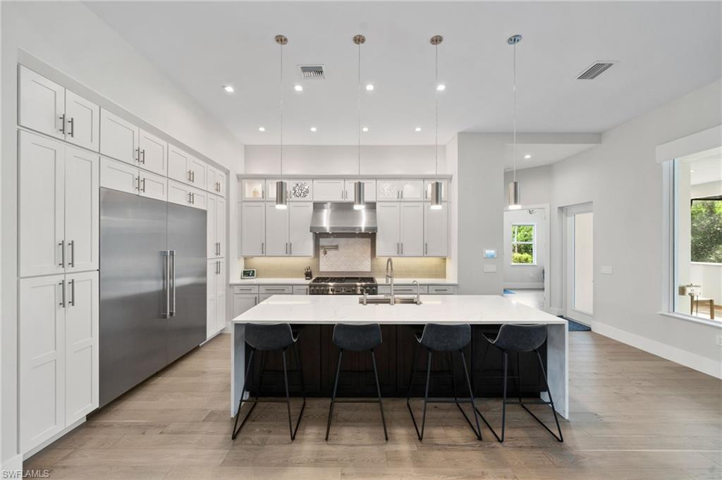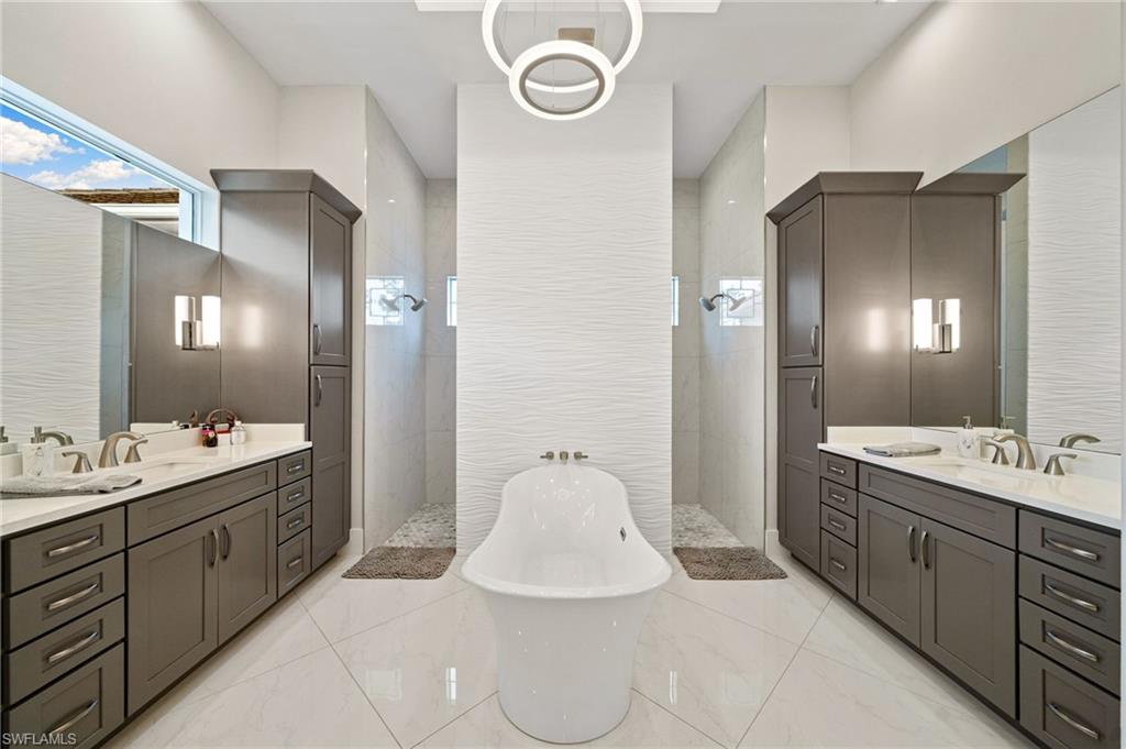 A rare opportunity to own a newer construction luxury estate home in the highly sought-after San Carlos Estates of Bonita Springs—an extremely private, lushly landscaped, and GATED 1.25-acre retreat where modern sophistication meets resort-style living. Available FULLY FURNISHED, showcasing designer pieces from Restoration Hardware, West Elm, and select curated brands. Spanning 3,054 sq ft under air (5,336 total), this open-concept residence features 3 bedrooms plus a dedicated office (easily convertible to a 4th bedroom; plans for a closet are available), 3 full baths, a Dining Room, and two oversized 2-car garages. A wall of 10-foot sliding glass doors creates seamless indoor-outdoor flow to a resort-style lanai with a fully automated custom 40’ pool and spa featuring a 360° negative-edge spillover spa, LED-lit bubblers, three sheer-descent waterfalls, and an oversized sun shelf. The fully equipped outdoor kitchen—with leathered granite, gas grill, hood, sink, and beverage refrigerator—plus a dual-sided gas fireplace, infrared sauna, and cold plunge create a private wellness retreat. Inside, the chef’s kitchen showcases over $40K in Thermador appliances, a massive quartz waterfall island, white shaker cabinetry, and a stylish dry bar with wine refrigerator. The great room centers around a custom fireplace and TV wall, while the primary suite offers a private sitting area/workspace, freestanding soaking tub, dual Pompeii quartz vanities, two spacious walk-in closets, in-ceiling Sonos speakers, and designer lighting. Secondary bedrooms include a VIP en-suite and a third that can be closed off with its own bath for guest privacy. Additional highlights of this fully integrated smart home include two new Lennox A/C systems (2024), a whole-house Generac generator, 1,000-gallon buried propane tank, multi-zone Sonos audio, automatic motorized shades, iSmartGate entry, security cameras, and centralized control via the in-wall iPad. Garage doors, cameras, and every light switch can be controlled remotely with ease—at the touch of a button from anywhere in the world. Fully fenced and DUAL GATED, this property is perfectly positioned near the end of Dietz Dr—most desirable street in neighborhood—offering stunning west-facing sunsets, exceptional privacy, and quiet surroundings while being minutes from everything. Built to the latest codes, the home sits high and dry (not in a flood zone/no flood insurance required) for total peace of mind. Professionally landscaped grounds feature mature greenery, bamboo, clusia hedges, a lit pergola, fire pit, garden, butterfly garden, hammock, and play area. No HOA or rental restrictions. Ideally located minutes from Coconut Point, Bonita Beach, and the area’s best shopping and dining, this exceptional home combines luxury, technology, and tranquility in one perfectly executed estate. Be sure to inquire or visit the HIGHNOTE link for tons of additional details, including the feature sheet, plans, 3D tour, video and more!