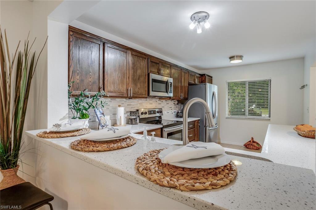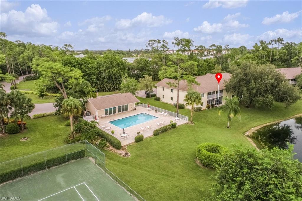 Welcome to your MODEL HOME in this slice of paradise with a serene water view in the secluded community 15 MINUTE DRIVE TO 5TH AVE NAPLES! PERFECTLY LOCATED NEAR EVERYTHING and set back with tranquility for the BEST OF BOTH WORLDS! This beautifully updated first-floor condo, 1,087 soft, 2-bedroom, 2-bathroom home provides easy living with no stairs, making it an ideal choice for anyone seeking a low-maintenance, accessible lifestyle in one of Naples’ best-kept secrets. FULLY remodeled kitchen that opens to the spacious living and dining area—shows like a model perfect for entertaining guests or enjoying peaceful evenings at home. The open floor plan flows seamlessly out to the screened lanai, where you’ll enjoy breathtaking sunset views over the sparkling lake. With southern exposure, the home is filled with warm, natural light throughout the day, creating a cheerful and inviting atmosphere. HURRICANE IMPACT WINDOWS AND DOORS for maximum storm protection and energy efficiency. Plus, the BRAND NEW ROOF adds long-term value and eliminates one of the biggest worries for a new homeowner. STEPS AWAY FROM the clubhouse, and tennis court—giving you the resort-style amenities you want without the high price tag. Don’t miss your chance to own in this charming lakefront community—first-floor units with this level of quality and views don’t come around often!
