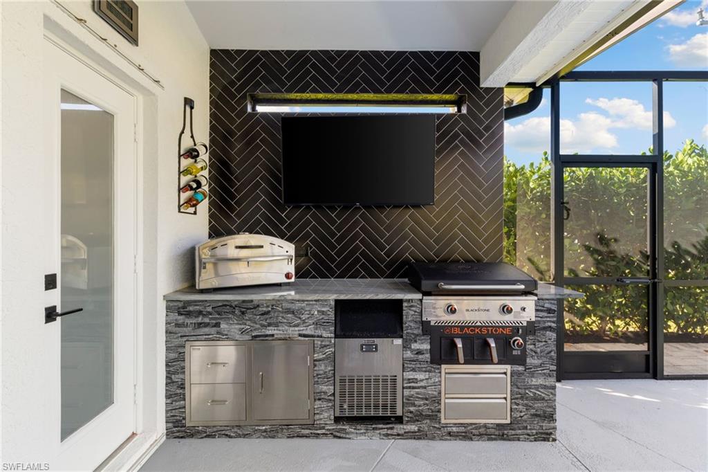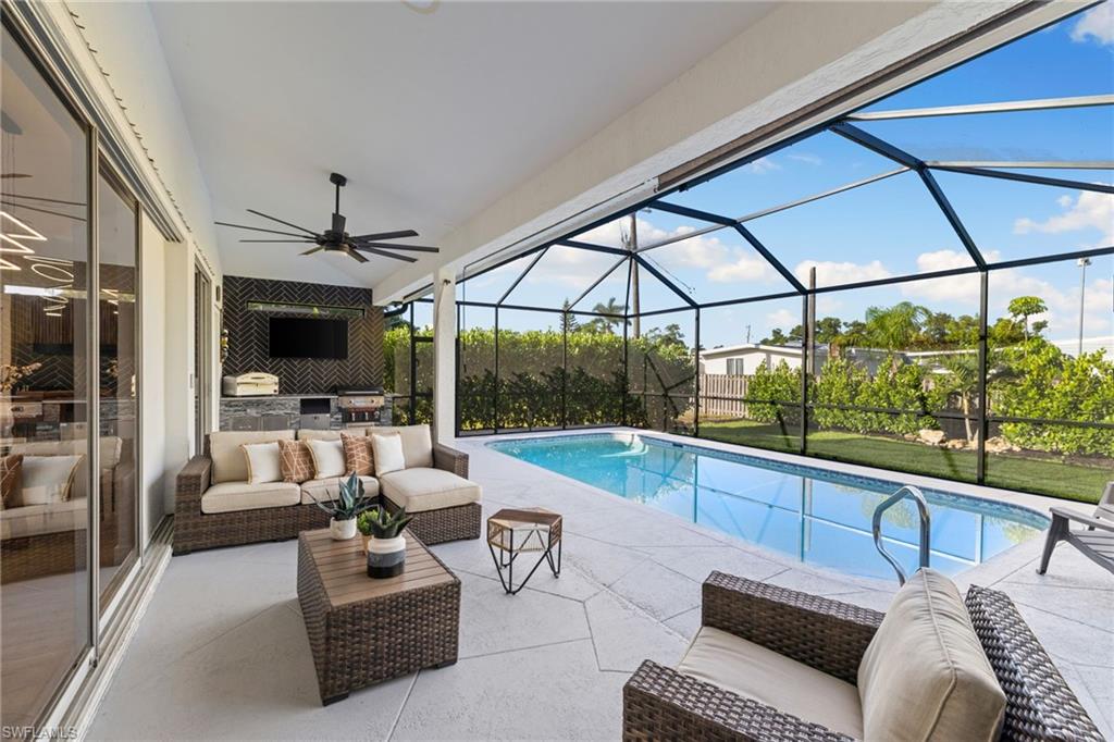 Move-In Ready Pool Home with Extensive Upgrades – All Within the Last 2 Years! Update: Brand -new A/C system installed 12/3/2025 for improved cooling efficiency and peace of mind. Step into this beautifully modernized, move-in ready pool home, thoughtfully updated inside and out for comfort, efficiency, and style. Exterior Highlights: Freshly painted driveway and garage floor. Lush new landscaping with accent lighting. Updated gutter system, outdoor spigots, and sprinkler system with timer. Paver patio and lanai with roll-down sunshade. Newly painted pool cage with brand-new screens. Resurfaced 12 x 24 saltwater pool featuring new tile, plaster, pump, skimmer, heater, and auto-fill system. Outdoor kitchen with Blackstone grill (including air fryers), new icemaker, and ceiling fan. Hookup installed for a portable generator with A/C Easy Start Flex. Lexan Hurricane Panels. Interior Highlights: Newer flooring throughout. Fully remodeled primary and guest bathrooms with upgraded plumbing and electrical. Modern baseboards and lighting fixtures throughout. Kitchen upgraded with stainless steel appliances and walk-in pantry with pool access. Washer and dryer with dedicated folding table. Water heater, smart Wi-Fi thermostat, and smoke detectors. Painted garage interior with recessed lighting, added storage, and upgraded garage door opener and spring. Comfort & Lifestyle Features: Primary suite with large walk-in closet, private sliding-door pool access, and dedicated mini-split A/C. Living area with 3-panel pocket doors opening to an expansive screened lanai, ideal for indoor-outdoor entertaining. Every detail of this home has been refreshed and upgraded for modern living and peace of mind. Whether relaxing by the newly resurfaced pool, cooking in the upgraded outdoor kitchen, or enjoying the sleek interior updates, this home is ready to welcome you in style. Nestled in the sought-after, pet-friendly Berkshire Lakes community, this home offers access to two tennis/pickleball courts, a community pool, clubhouse, walking trails, and low HOA fees. Just a five-minute drive—or a 10-minute bike ride—takes you to Publix, Walgreens, Starbucks, and dining. Naples iconic Fifth Avenue South and beautiful beaches are only 6 miles away.