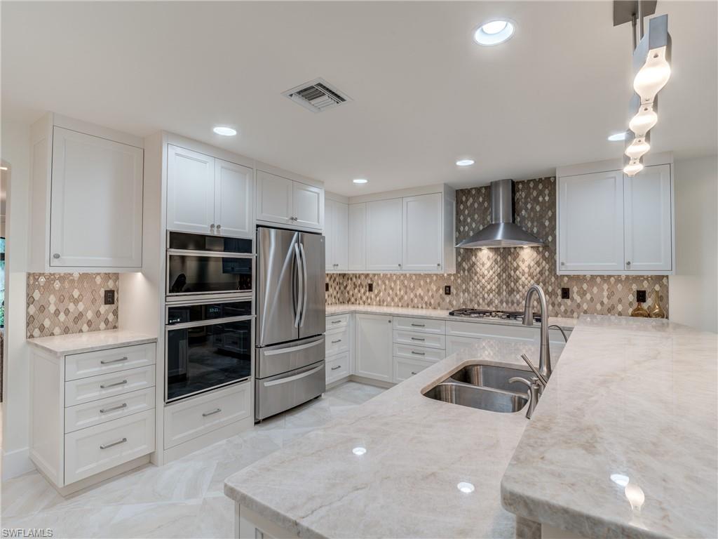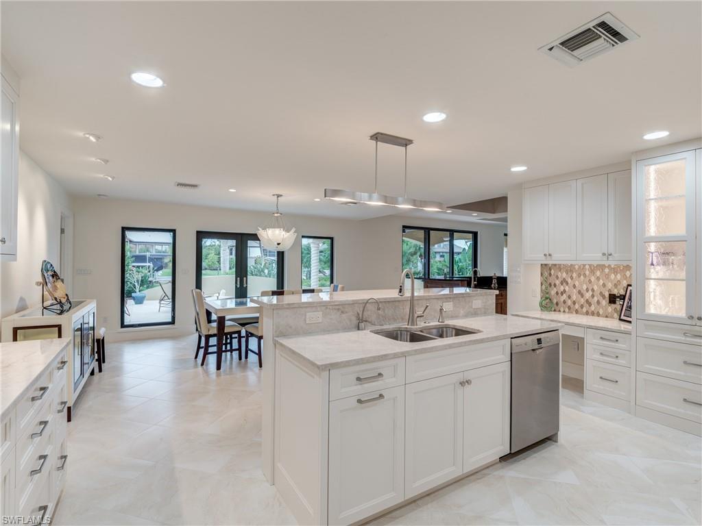 Experience the pinnacle of coastal living in Shell Harbor. Set along more than 120 feet of waterfront on one of Sanibel’s premier direct Gulf-access canals (no bridges!), this beautifully reimagined 4-bedroom + den, 4.5-bath residence blends luxury, light, and livability. Enter through custom wood doors into a sun-drenched foyer where soaring ceilings, a statement chandelier, and multi-level design create a sense of openness and elegance. The home features tile flooring throughout, an elevator, and a thoughtfully flowing layout ideal for both everyday living and entertaining. The showpiece kitchen showcases Taj Mahal quartzite countertops, custom wood cabinetry, stainless steel appliances, a gas cooktop, and a dedicated bar area perfect for hosting family and friends. The primary suite offers a private retreat with a balcony overlooking the water, vaulted ceilings, a spa-style bath with soaking tub and walk-in tiled shower, an expansive closet, and a laundry room for added convenience. Guest suites on the lower level provide ample comfort and privacy. Step through impact glass sliders to the outdoor oasis—complete with a covered patio, cook-in cabana, sparkling pool, and a private dock featuring composite decking and a boat lift for effortless Gulf access. Located on Sanibel’s desirable East End, this property offers easy on/off island access and includes community deeded beach access, combining island charm with unmatched boating and beachside convenience.