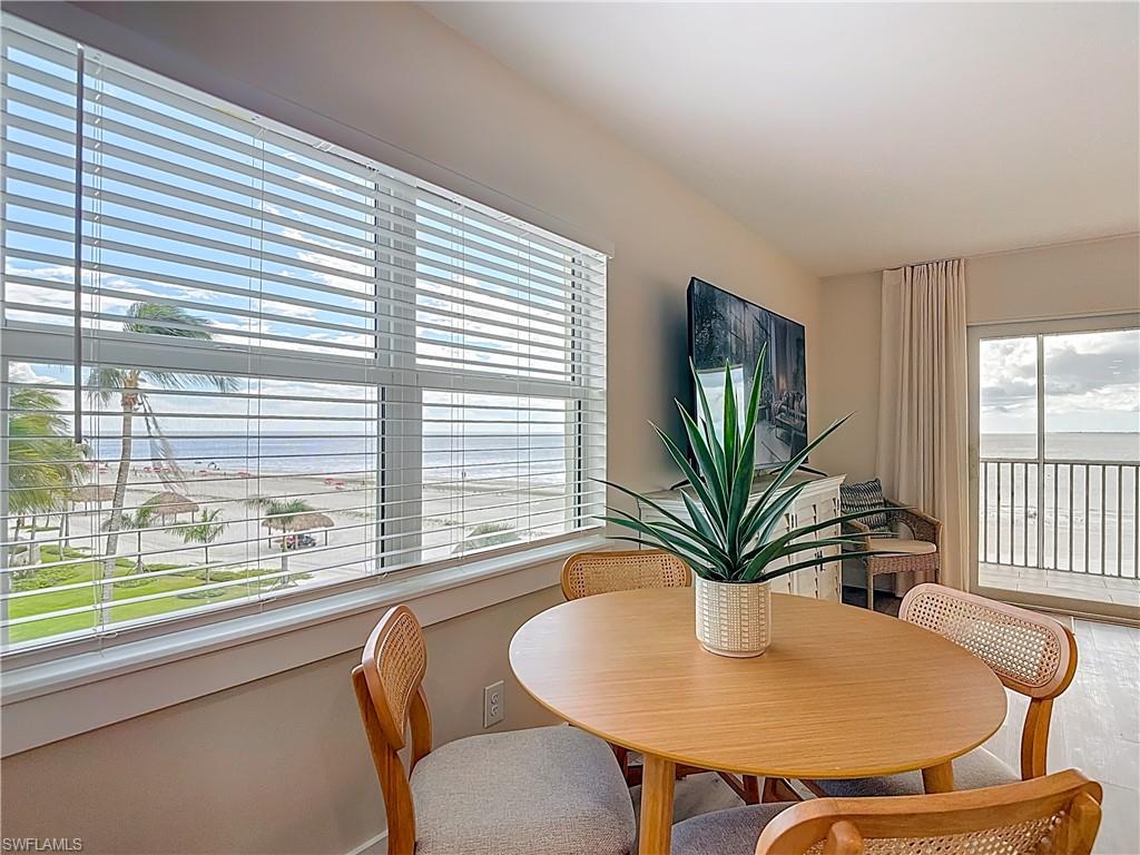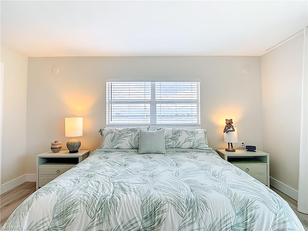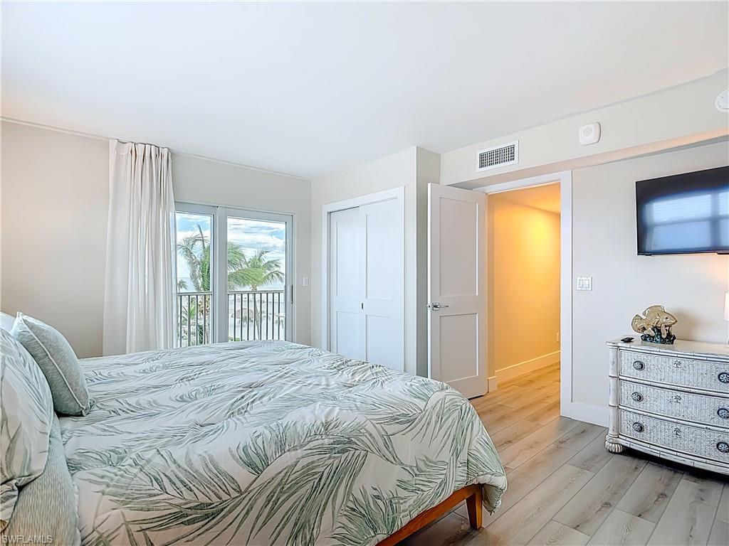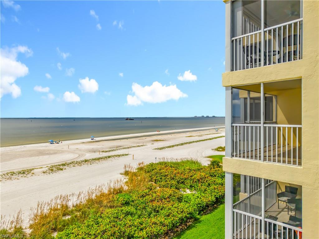 Just What You're Looking For! Highly desirable North tip of the Island, fourth floor, south corner condo with exceptional views over Gulf, Bay & sunsets over the beach. Completely remodeled interior, including all new plank wood-style vinyl flooring (LVP), New custom kitchen with island counter, new appliances and solid surface countertops. Both bathrooms have been upgraded. New impact windows and sliders have been installed. All the windows and both screened-in balconies offer exceptional water views from different perspectives. All new coastal style furnishings create the desired ambience. There is a walk-in closet with a washer/dryer hookup, as well as an additional laundry located on the lobby level. The Gulf-side pool enclave contains a spacious sundeck, BBQ grills and more. Uniquely located abutting Bowditch Point Park, a secluded 17 acres of beach & Bay. The Vacation Villas Complex allows one week rentals for maximizing rental potential. Owners are allowed one pet. Vacation Villas is NOT part of the Pink Shell Resort; however, the Pink Shell has provided Private Membership of their wonderful amenities to the owners at Vacation Villas through March 2027 at no cost, which includes their resort pools and hot-tubs, fitness center and more! This tranquil site offers a quiet and secluded location yet easy access on and off the island over Matanzas Pass Bridge, so you spend more time on the beach and less time in traffic. Don't miss this rare opportunity!