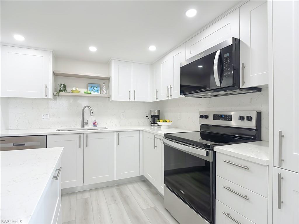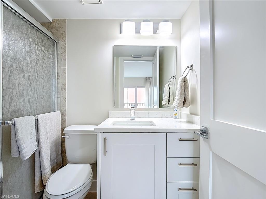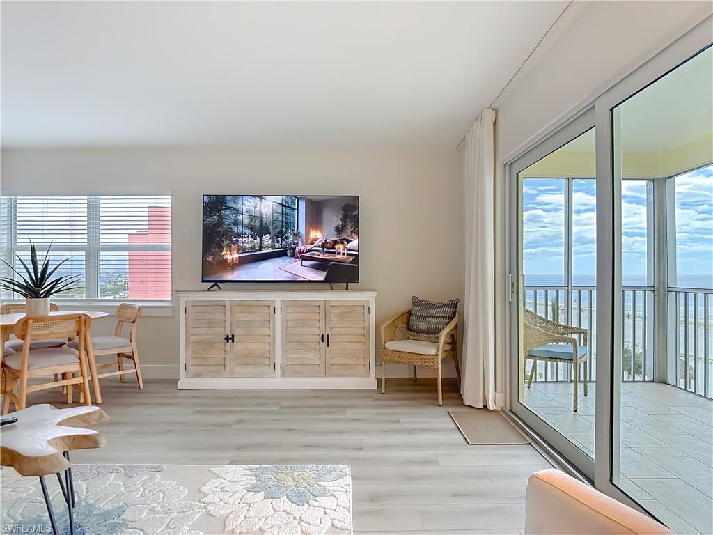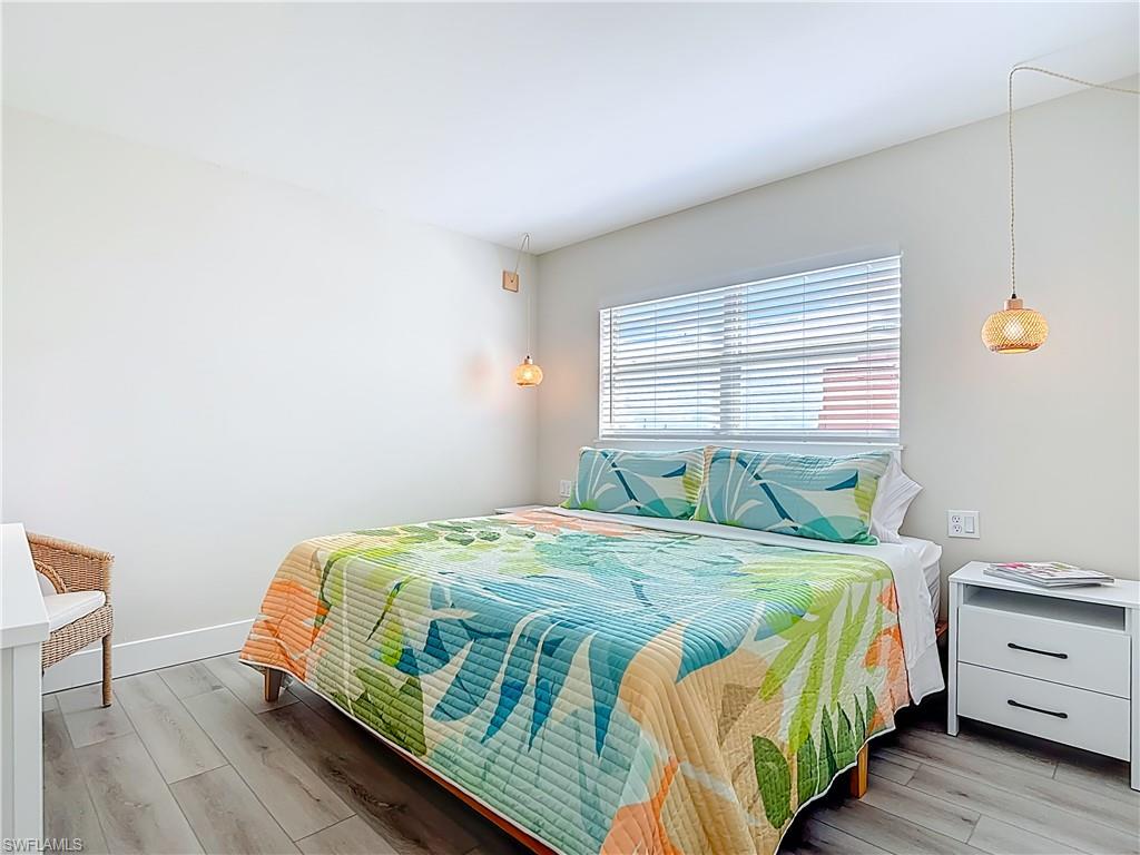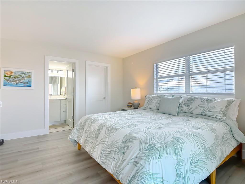 Just What You're Looking For! Highly desirable North tip of the Island, fourth floor, south corner condo with exceptional views over Gulf, Bay & sunsets over the beach. Completely remodeled interior, including all new plank wood-style vinyl flooring (LVP), New custom kitchen with island counter, new appliances and solid surface countertops. Both bathrooms have been upgraded. New impact windows and sliders have been installed. All the windows and both screened-in balconies offer exceptional water views from different perspectives. All new coastal style furnishings create the desired ambience. There is a walk-in closet with a washer/dryer hookup, as well as an additional laundry located on the lobby level. The Gulf-side pool enclave contains a spacious sundeck, BBQ grills and more. Uniquely located abutting Bowditch Point Park, a secluded 17 acres of beach & Bay. The Vacation Villas Complex allows one week rentals for maximizing rental potential. Owners are allowed one pet. Vacation Villas is NOT part of the Pink Shell Resort; however, the Pink Shell has provided Private Membership of their wonderful amenities to the owners at Vacation Villas through March 2027 at no cost, which includes their resort pools and hot-tubs, fitness center and more! This tranquil site offers a quiet and secluded location yet easy access on and off the island over Matanzas Pass Bridge, so you spend more time on the beach and less time in traffic. Don't miss this rare opportunity!