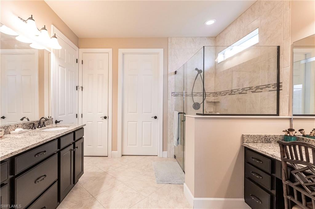 Magnificent views of expansive 243-acre lake from this spectacular executive class residence. Luxuriate in your private pool and spa. The amenity rich community of Corkscrew Shores features the Captains Club Bar & Restaurant, a resort style pool, pickleball, state of the art fitness center. This very prestigious gated community has low HOA fees and no CDD fees. It is conveniently located to shopping, dining, beaches, parks, and an international airport. An oversized living area with coffered ceiling and expansive wide water views will captivate your guests. The dining area has plenty of room for a large table and you will enjoy plenty of seating at the breakfast bar. Live comfortably and entertain graciously. This home offers a spacious office with beautiful French doors. Use this beautiful room to work at home or to just keep your life organized. It is also a flex space to use as you wish. You will love the spacious primary suite with unparalleled views of the lake and walk out to the pool and spa. There is a secondary ensuite featuring a spacious bath. The third bedroom is conveniently located to a third full bathroom. The three-car garage offers plenty of space for vehicles and storage. This is truly a spacious 3-car garage. Pull-down stairs to the attic further enhances storage. This is the one you have been waiting for!
