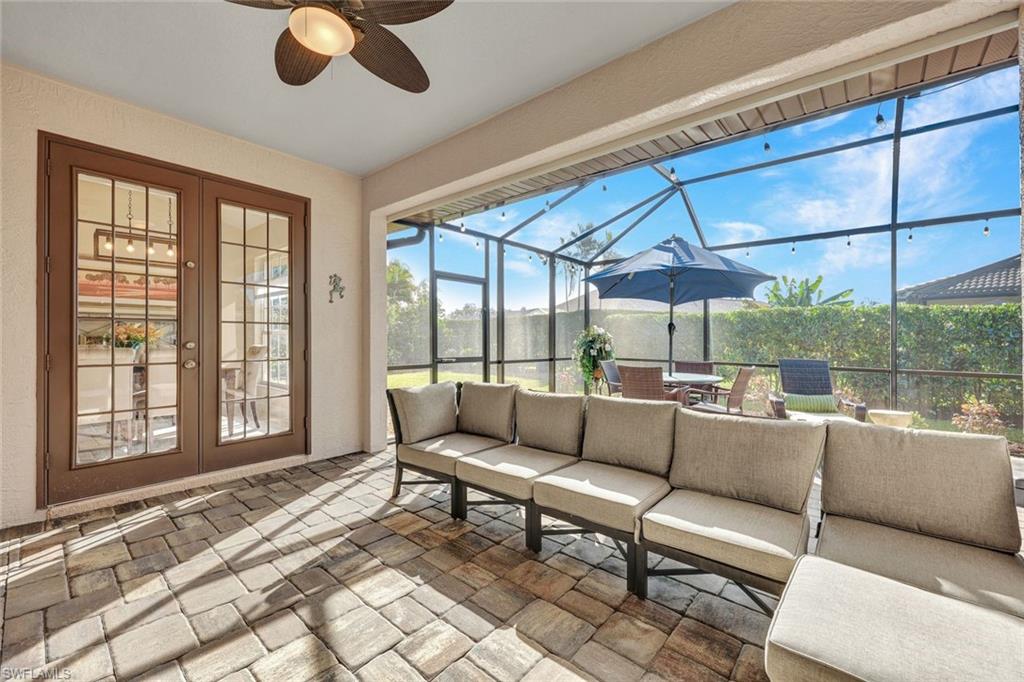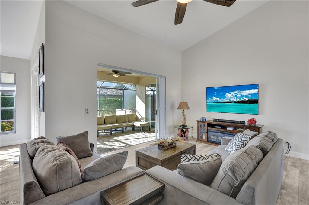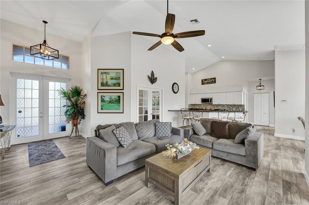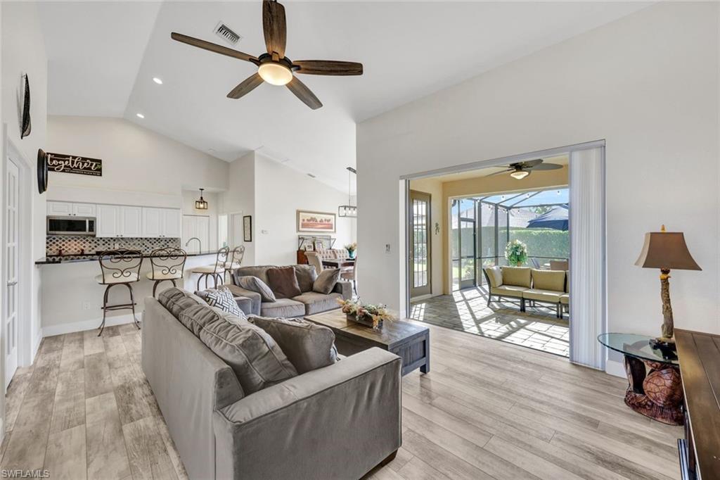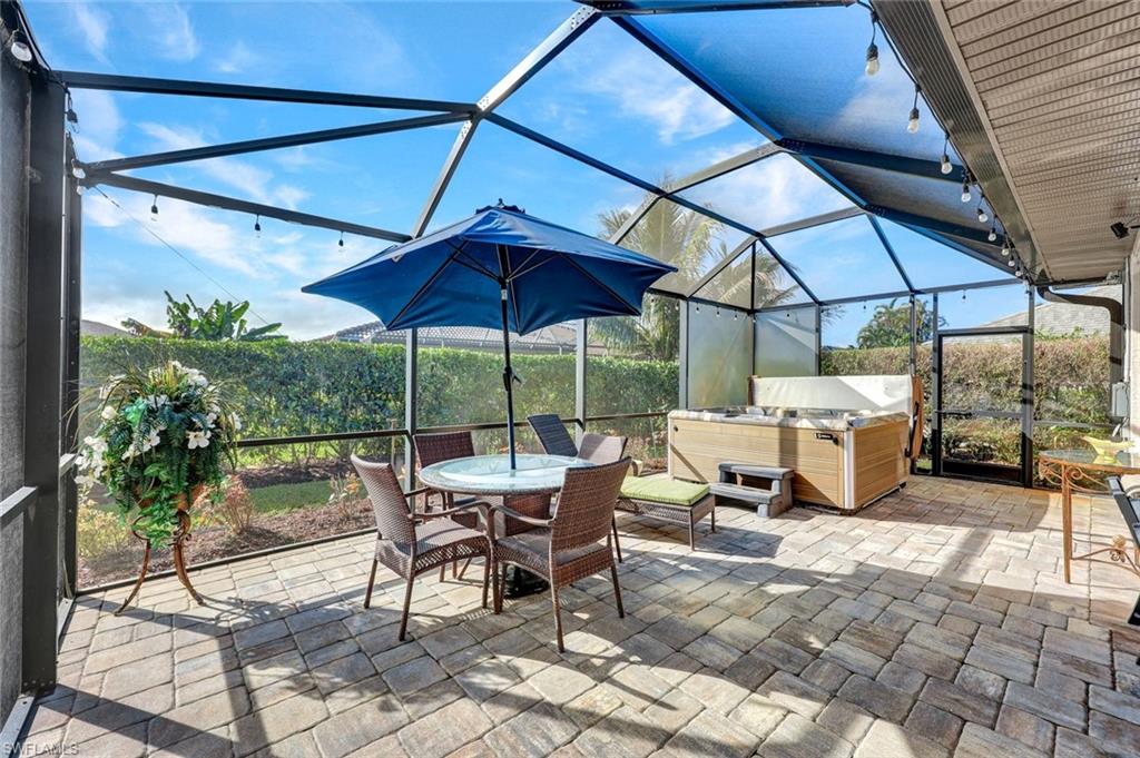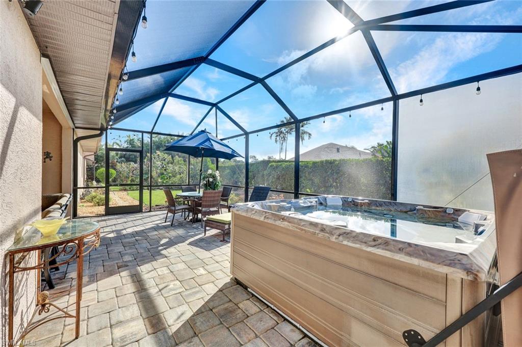 Welcome to your beautifully refreshed oasis in Fountain Lakes—the perfect move-in ready home that can be bought furnished located in this mature, gated BUNDLED GOLF community with low HOA fees and a prime location west of US-41. LOCATION LOCATION- near residents only gate in the large community, giving easy access to enter and exit community much quicker and with a light to turn left. This beautiful home has been extensively updated in 2021 with nearly every major feature replaced or enhanced, offering peace of mind and modern comfort for years to come. The updates include a new roof, A/C system, and hot water tank, all replaced in 2021. The home has been freshly painted throughout in a neutral palette and features new luxury vinyl plank flooring that flows seamlessly through every room. The kitchen boasts granite countertops, a large walk-in pantry, and newer stainless-steel appliances (2021). Step inside and enjoy the vaulted ceilings and open-concept floor plan that connects the living, dining, and kitchen areas—perfect for entertaining or everyday living. The Owner’s Suite is privately situated and with sliding door access to the lanai, adding to its spacious feel, and a completely reimagined master bathroom fit for a king or queen with dual vanities and elegant modern finishes. Two additional bedrooms and an updated guest bathroom are located on the opposite side of the home, providing comfort and privacy for family or guests. The den, accented with glass French doors, offers flexibility for an office, reading room, or media space. Abundant closet space, a convenient laundry room off the kitchen, and an oversized two-car garage add to the home’s everyday functionality. Enjoy the Florida lifestyle outdoors on your extended screened lanai, added in 2021 with beautiful brick pavers and a relaxing six-person hot tub. The mature landscaping, maintained with a full irrigation system, provides curb appeal and a sense of tranquility. The spacious backyard offers room for a pool if desired. Fountain Lakes is one of Estero’s most desirable and established gated communities, known for its convenient location west of US-41, close to shopping (Coconut Point Mall), dining, Airport (Fort Myers/RSW) and beaches (Bonita Beach, Naples Beaches). Residents enjoy a 9-hole par-3 golf course, tennis, pickleball, bocce, shuffleboard, fitness center, clubhouse, community pool and more—all included with low HOA fees. Don’t miss your chance to own this stunning, fully updated home in Fountain Lakes—a rare find combining quality, comfort, and value in the heart of Estero.