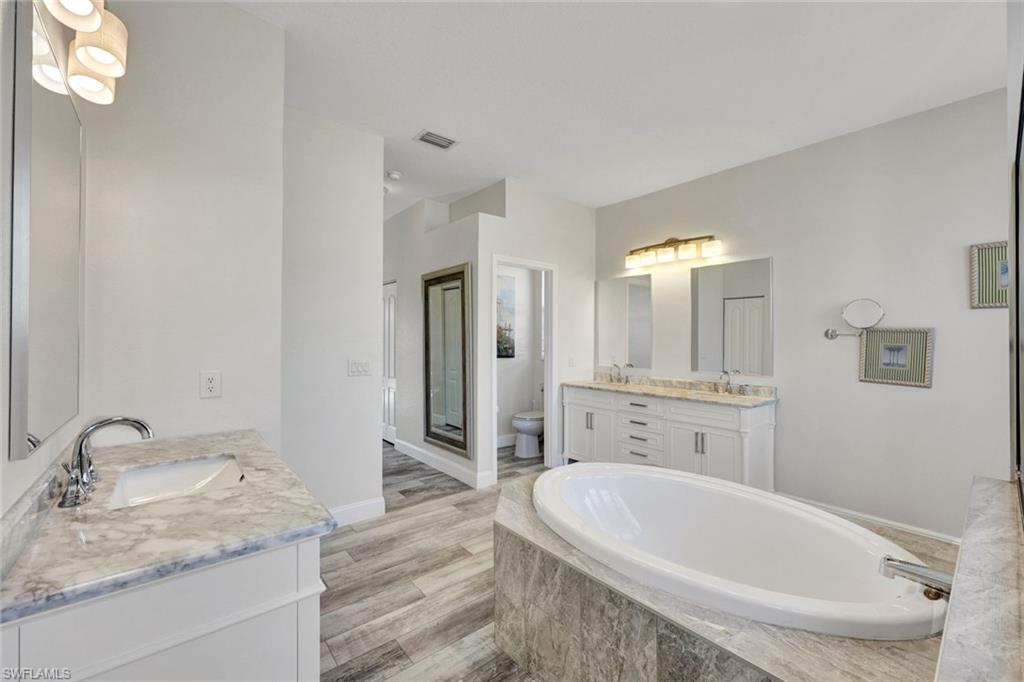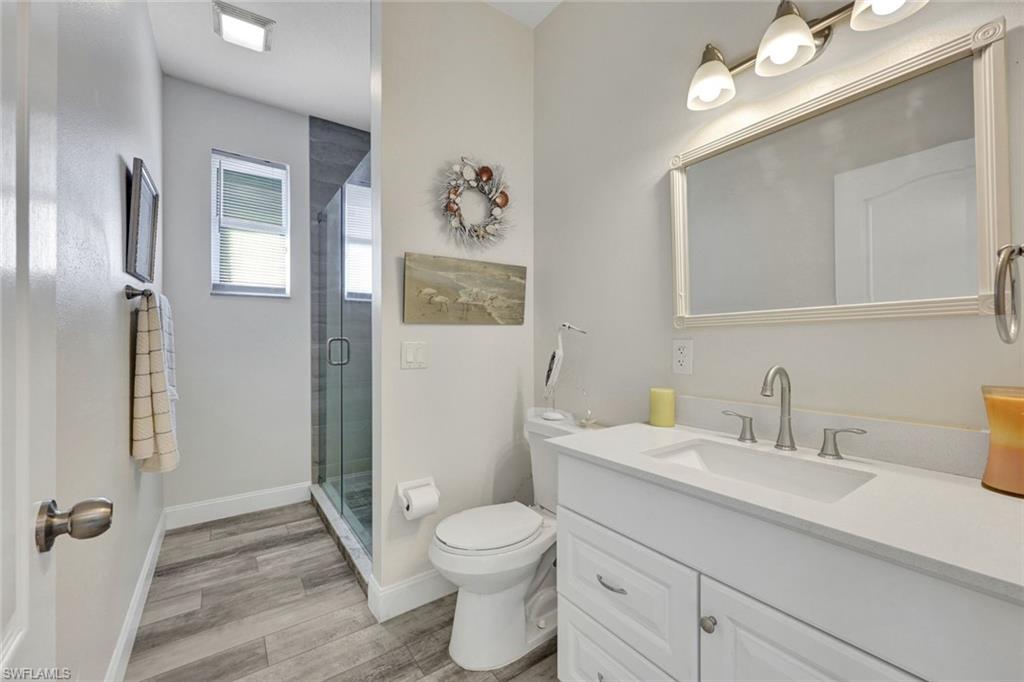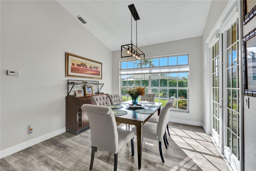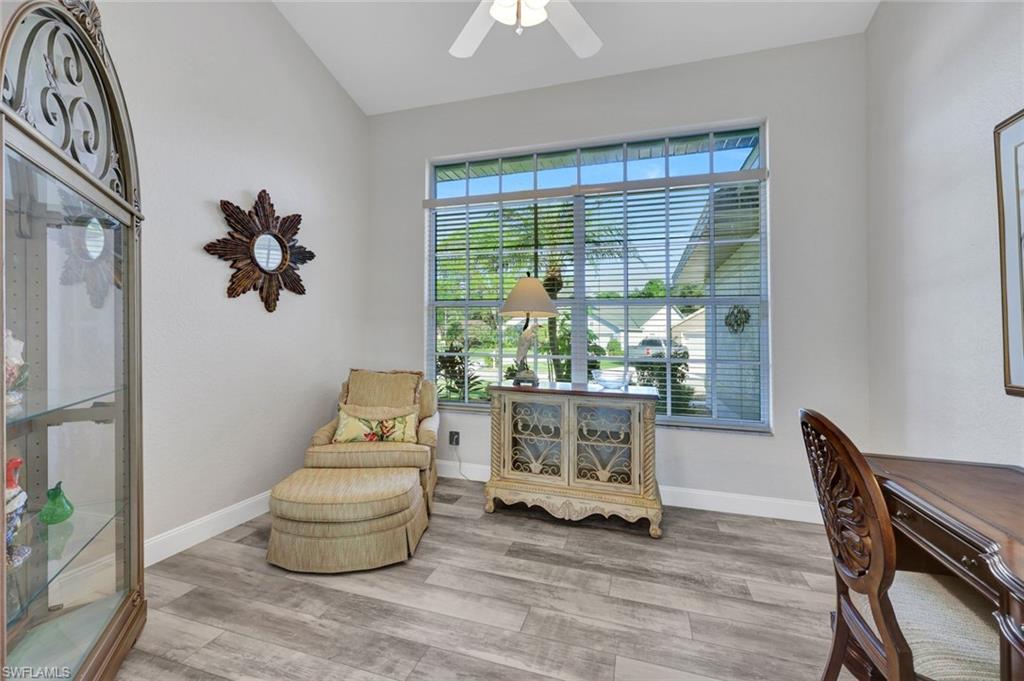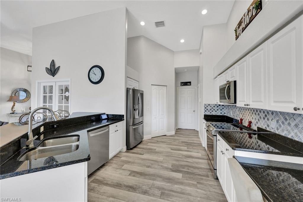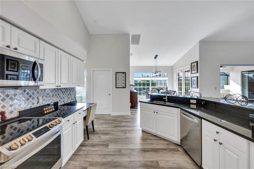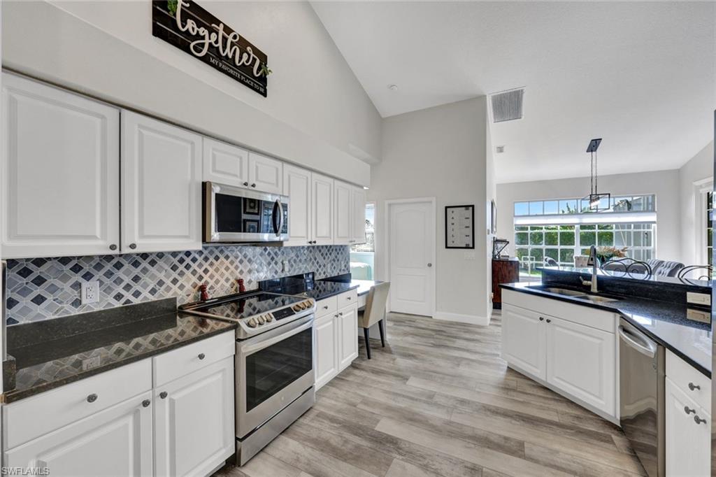 Welcome to your beautifully refreshed oasis in Fountain Lakes—the perfect move-in ready home that can be bought furnished located in this mature, gated BUNDLED GOLF community with low HOA fees and a prime location west of US-41. LOCATION LOCATION- near residents only gate in the large community, giving easy access to enter and exit community much quicker and with a light to turn left. This beautiful home has been extensively updated in 2021 with nearly every major feature replaced or enhanced, offering peace of mind and modern comfort for years to come. The updates include a new roof, A/C system, and hot water tank, all replaced in 2021. The home has been freshly painted throughout in a neutral palette and features new luxury vinyl plank flooring that flows seamlessly through every room. The kitchen boasts granite countertops, a large walk-in pantry, and newer stainless-steel appliances (2021). Step inside and enjoy the vaulted ceilings and open-concept floor plan that connects the living, dining, and kitchen areas—perfect for entertaining or everyday living. The Owner’s Suite is privately situated and with sliding door access to the lanai, adding to its spacious feel, and a completely reimagined master bathroom fit for a king or queen with dual vanities and elegant modern finishes. Two additional bedrooms and an updated guest bathroom are located on the opposite side of the home, providing comfort and privacy for family or guests. The den, accented with glass French doors, offers flexibility for an office, reading room, or media space. Abundant closet space, a convenient laundry room off the kitchen, and an oversized two-car garage add to the home’s everyday functionality. Enjoy the Florida lifestyle outdoors on your extended screened lanai, added in 2021 with beautiful brick pavers and a relaxing six-person hot tub. The mature landscaping, maintained with a full irrigation system, provides curb appeal and a sense of tranquility. The spacious backyard offers room for a pool if desired. Fountain Lakes is one of Estero’s most desirable and established gated communities, known for its convenient location west of US-41, close to shopping (Coconut Point Mall), dining, Airport (Fort Myers/RSW) and beaches (Bonita Beach, Naples Beaches). Residents enjoy a 9-hole par-3 golf course, tennis, pickleball, bocce, shuffleboard, fitness center, clubhouse, community pool and more—all included with low HOA fees. Don’t miss your chance to own this stunning, fully updated home in Fountain Lakes—a rare find combining quality, comfort, and value in the heart of Estero.