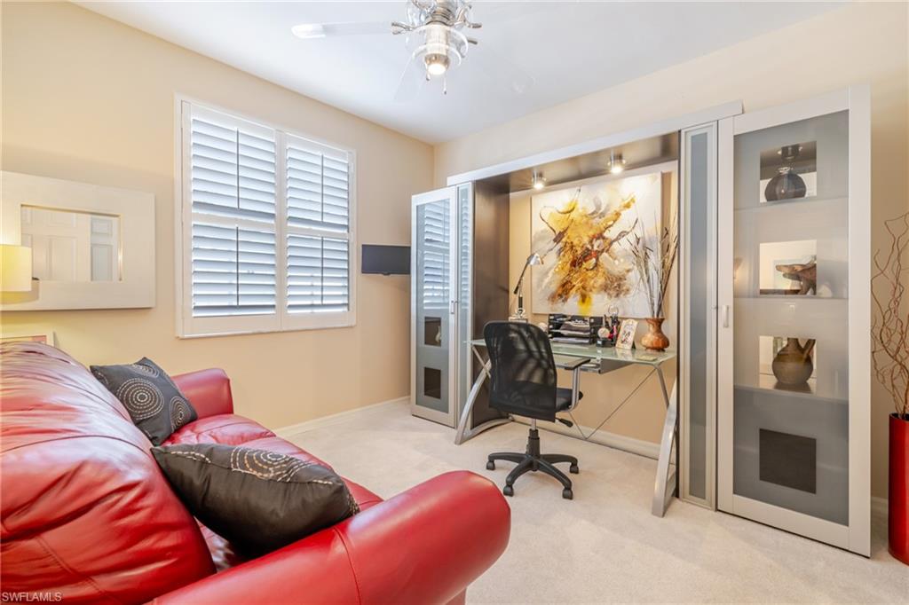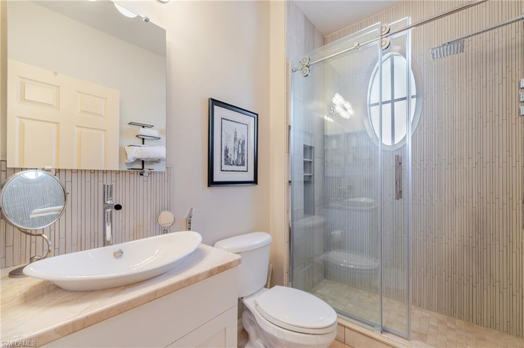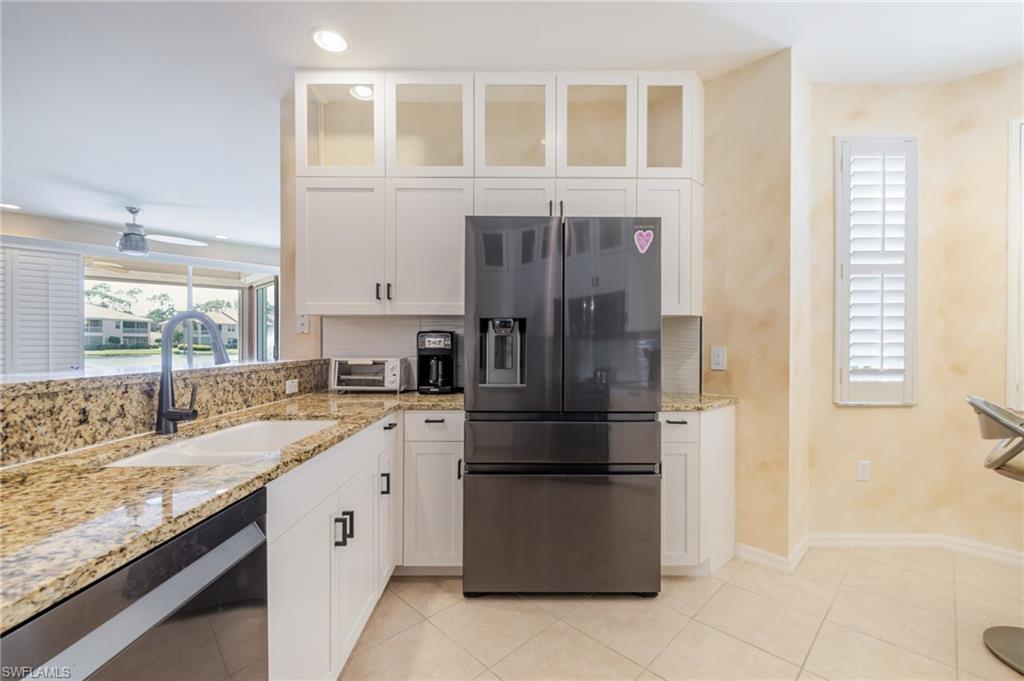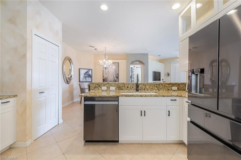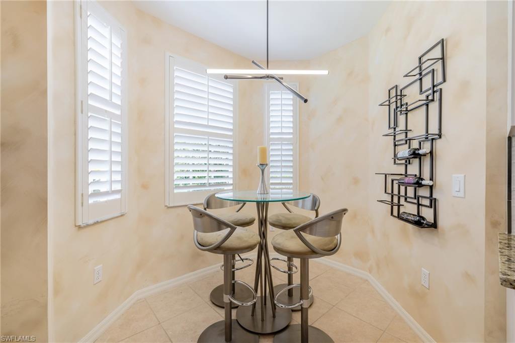 Step into luxury and comfort with this beautifully furnished 3-bedroom, 2-bath end unit condo in one of North Naples’ most sought-after communities. This first-floor home is filled with natural light and features southern exposure, plantation shutters, electric storm shutters on the lanai, and a detached one-car garage. Enjoy an eclectic blend of modern and traditional design with high-end upgrades throughout. The kitchen shines with granite countertops, stylish lighting, and brand-new Samsung appliances, while both bathrooms have been completely remodeled with elegant finishes. The primary suite feels like a private retreat with a double vanity, walk-in shower, and generous storage. Relax on your screened lanai with peaceful lake and fountain views, or take advantage of the large laundry room with extra storage. Wilshire Lakes offers resort-style amenities, including two clubhouses, pools & spa, a fitness center, and lighted Har-Tru tennis courts. Take scenic walks or bike rides along the community paths that connect to North Naples Regional Park and the Golisano Children’s Museum. The Pines clubhouse offers a new pool, hot tub, and gathering spaces. All of this just minutes from Naples’ white-sand beaches, Mercato, Waterside Shops, and Artis–Naples. Offered fully furnished, pet-friendly, and move-in ready — experience the best of Naples living today!