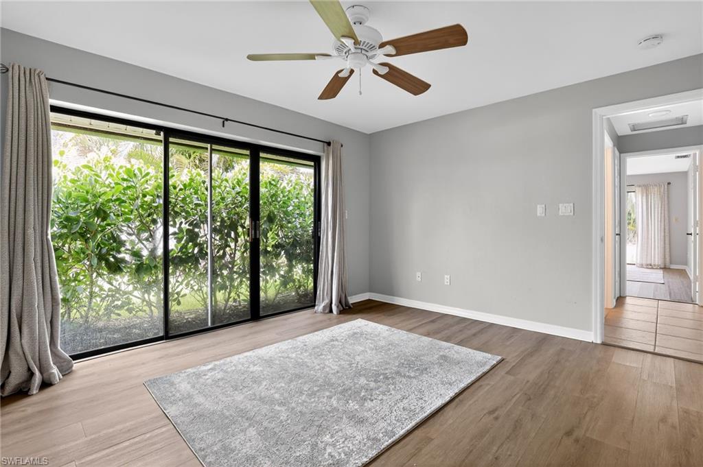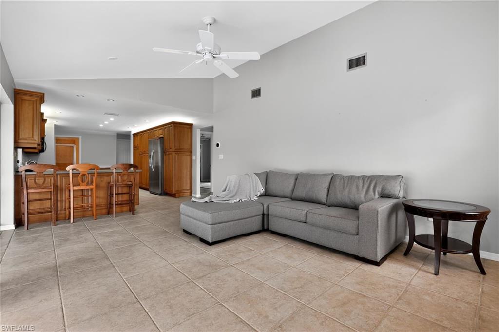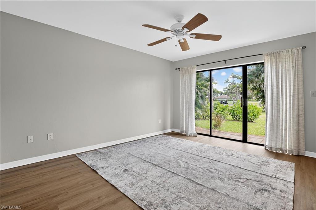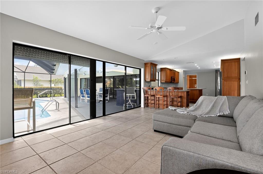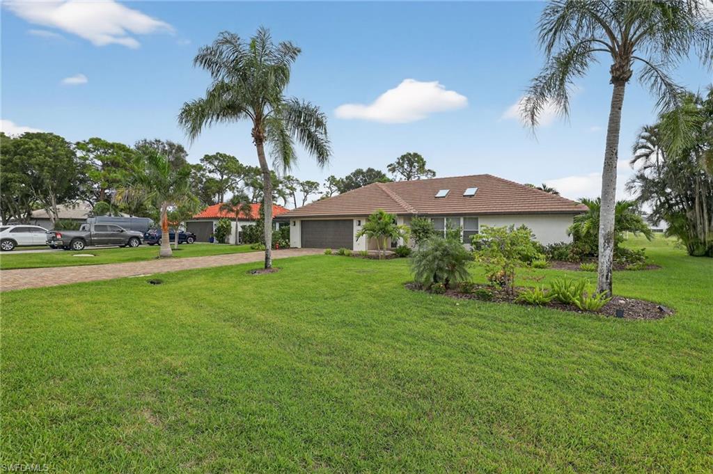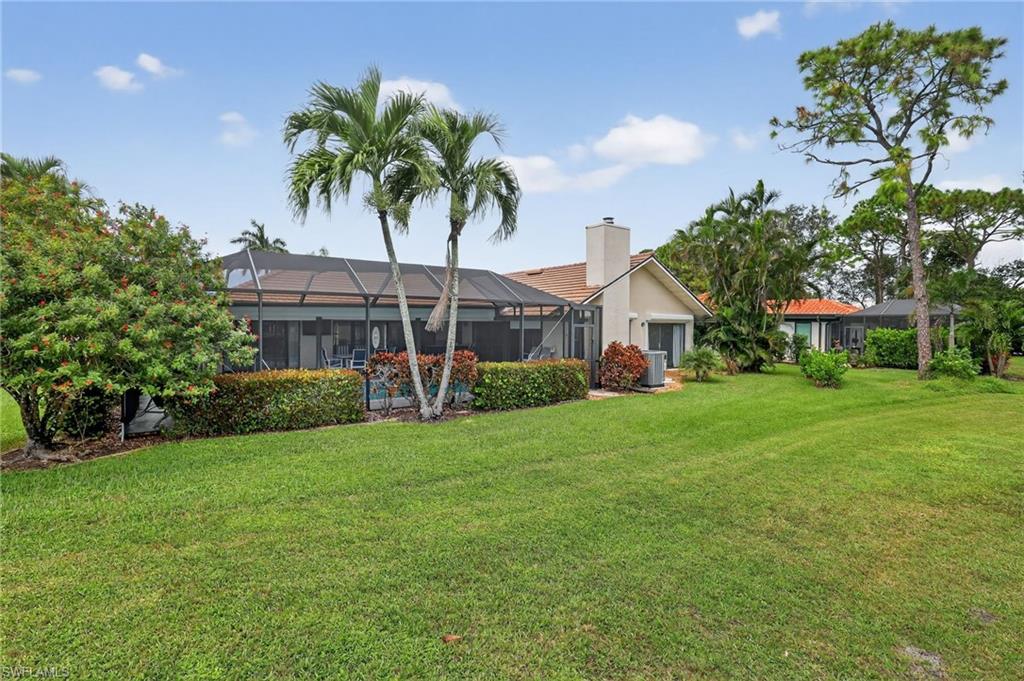 Experience the essence of Florida living in this beautifully designed pool home, perfectly positioned along the 9th hole of the South Course in the sought-after Spanish Wells Golf & Tennis Country Club. Minutes from the white sands of Barefoot and Bonita Beach. This inviting residence combines warmth, privacy, and style with a thoughtful split floor plan that offers separate living spaces for both owners and guests. The primary suite includes its own private sitting area, while the guest wing features a cozy family room, creating a layout that feels both open and intimate. Sunlight fills the home through plantation shutters, accenting the elegant fireplace and the tastefully updated kitchen, complete with 2022 appliances, generous cabinetry, and convenient pull-out drawers. Step through the sliding doors to the expansive lanai and pool area—your own outdoor retreat featuring a newly added bar with sink, perfect for entertaining or simply taking in the lush golf course views. The home has been meticulously cared for and updated, with a newer roof (2020), HVAC system, pool heater, pool pump motor (2023), lanai cage, and water heater. Smart home upgrades include a Ring doorbell, Wi-Fi-enabled Schlage front lock, Ecobee thermostat, and new smoke alarms throughout. The oversized two-car garage is equally impressive, offering a high-wind-rated insulated door (2022) and a brand-new Mitsubishi mini-split A/C system (2024), keeping the space cool and usable year-round. The curb appeal is unmatched, enhanced by newly planted palms, white hibiscus, sea oats, chic garage lighting, a paver driveway, and a sprinkler system connected to an irrigation well for efficient watering. Within Spanish Wells, residents enjoy a vibrant community lifestyle—complete with 27 holes of golf, tennis, pickleball, bocce, fitness classes, a resort-style pool, and a welcoming clubhouse with dining and social gatherings. With low monthly dues of only $219 and no mandatory club membership, this home offers the ideal blend of luxury, convenience, and flexibility. Move-in ready and beautifully maintained, it’s a rare opportunity to enjoy the best of Southwest Florida. Leasing is permitted up to 12 times per year. Lots of new updates and upgrades! Schedule today!