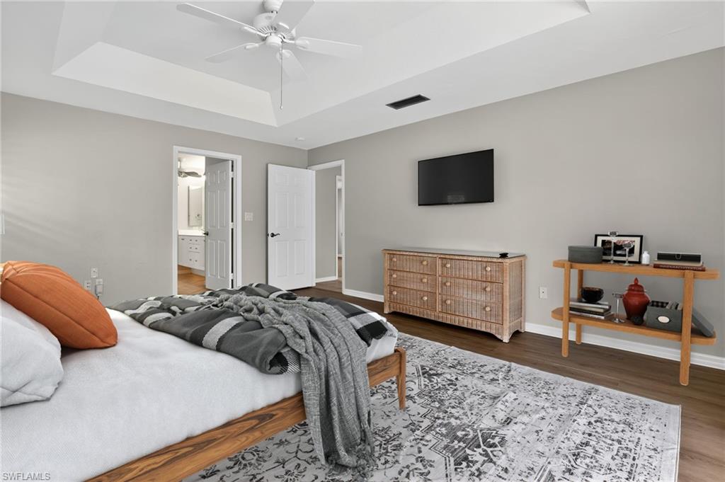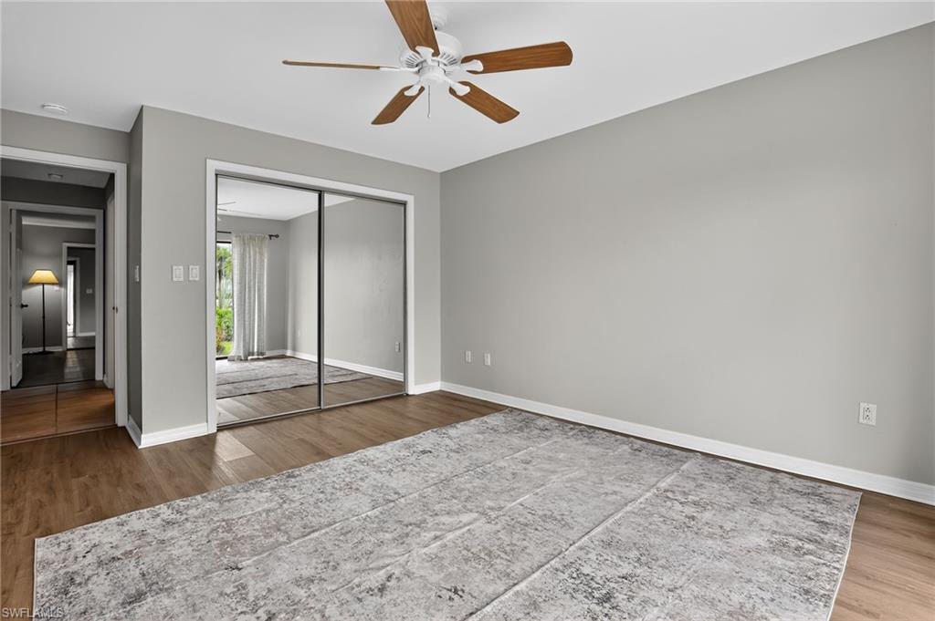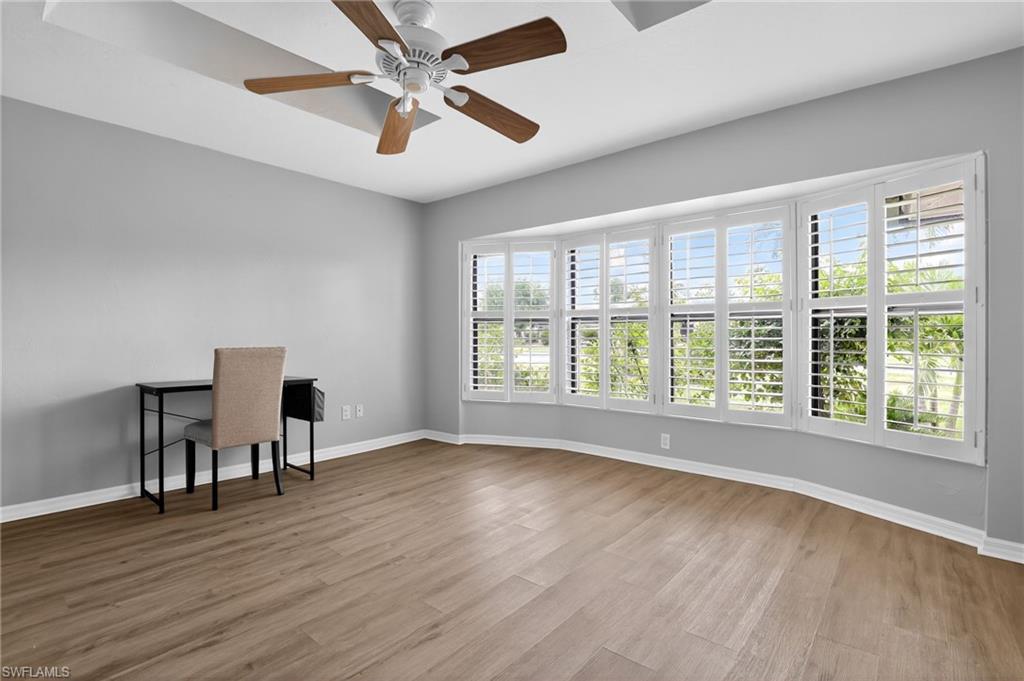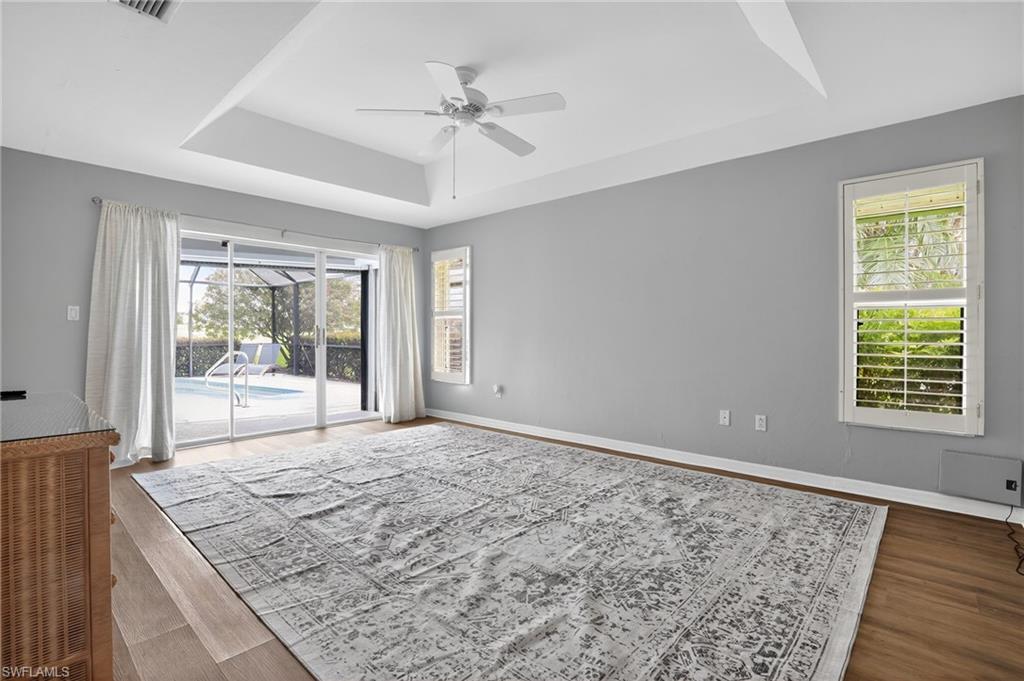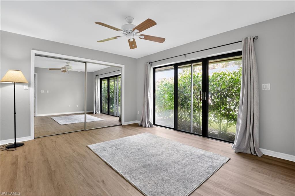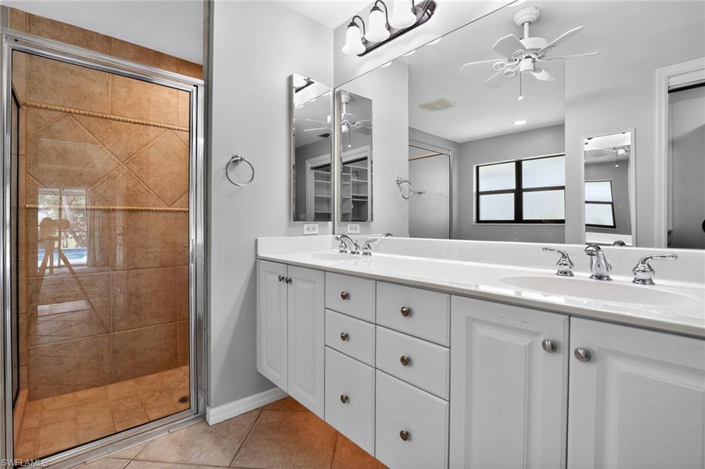 Experience the essence of Florida living in this beautifully designed pool home, perfectly positioned along the 9th hole of the South Course in the sought-after Spanish Wells Golf & Tennis Country Club. Minutes from the white sands of Barefoot and Bonita Beach. This inviting residence combines warmth, privacy, and style with a thoughtful split floor plan that offers separate living spaces for both owners and guests. The primary suite includes its own private sitting area, while the guest wing features a cozy family room, creating a layout that feels both open and intimate. Sunlight fills the home through plantation shutters, accenting the elegant fireplace and the tastefully updated kitchen, complete with 2022 appliances, generous cabinetry, and convenient pull-out drawers. Step through the sliding doors to the expansive lanai and pool area—your own outdoor retreat featuring a newly added bar with sink, perfect for entertaining or simply taking in the lush golf course views. The home has been meticulously cared for and updated, with a newer roof (2020), HVAC system, pool heater, pool pump motor (2023), lanai cage, and water heater. Smart home upgrades include a Ring doorbell, Wi-Fi-enabled Schlage front lock, Ecobee thermostat, and new smoke alarms throughout. The oversized two-car garage is equally impressive, offering a high-wind-rated insulated door (2022) and a brand-new Mitsubishi mini-split A/C system (2024), keeping the space cool and usable year-round. The curb appeal is unmatched, enhanced by newly planted palms, white hibiscus, sea oats, chic garage lighting, a paver driveway, and a sprinkler system connected to an irrigation well for efficient watering. Within Spanish Wells, residents enjoy a vibrant community lifestyle—complete with 27 holes of golf, tennis, pickleball, bocce, fitness classes, a resort-style pool, and a welcoming clubhouse with dining and social gatherings. With low monthly dues of only $219 and no mandatory club membership, this home offers the ideal blend of luxury, convenience, and flexibility. Move-in ready and beautifully maintained, it’s a rare opportunity to enjoy the best of Southwest Florida. Leasing is permitted up to 12 times per year. Lots of new updates and upgrades! Schedule today!