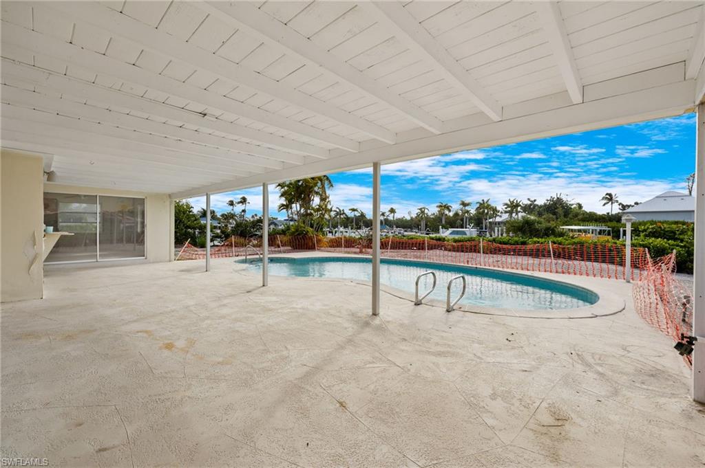 Situated at the end of a peaceful cul-de-sac on Sanibel Island's east end, this canal-front property presents an exceptional opportunity for those looking to restore its original charm. This classic Florida ranch-style home features 3 bedrooms and 2 baths, offering a blank canvas for a discerning buyer's vision. The interior boasts a spacious living area filled with natural light from large sliders that open to the inviting outdoor space. Outside, a sparkling pool awaits revitalization, providing the perfect spot for sun-soaked relaxation and entertainment. For boating enthusiasts, the property's intersecting canal offers convenient deep-water Gulf access, setting the stage for endless nautical adventures. The existing boat dock with a lift adds further convenience for sailors and anglers. This property is ready to be transformed into your ideal waterfront retreat, where the natural beauty of Sanibel Island becomes the backdrop for a life of coastal elegance and leisure.
