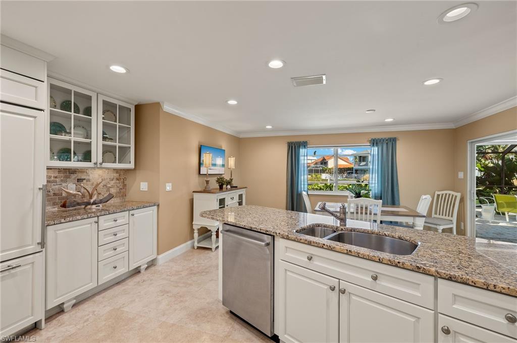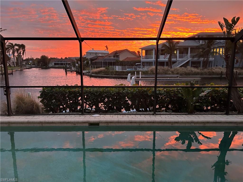 Experience the ultimate in coastal living with this stunning 3-bedroom, 2.5-bath canal home, beautifully remodeled and located on Sanibel's highly sought-after east end in the Shell Harbor neighborhood. Just a short walk from the beach with deeded beach access and parking, this home offers the perfect combination of tranquility and convenience, with easy access to restaurants, shops, and the causeway. Enjoy breathtaking canal views that stretch into the distance, creating an idyllic backdrop for serene sunrises and sunsets. The home boasts a split floor plan for enhanced privacy, and the chef’s kitchen featuring high-end stainless steel appliances, granite countertops, and an open, inviting layout. The primary suite opens directly onto the pool area, offering a private retreat with seamless access to outdoor living. Multiple sliders throughout the home connect the interior to the spacious screened pool deck, ideal for both relaxation and entertaining. With high-end travertine floors throughout (except in the carpeted bedrooms) and an array of modern upgrades, including a new HVAC system, impact windows, and a completely remodeled interior in 2023, this home is designed for comfort and style. The dock setup is perfect for boating enthusiasts, with two concrete docks (including a patio dock), a boat lift, and over 70 feet of dock length offering quick access to the Sanibel Marina, Gramma Dot’s restaurant and the Gulf of Mexico. Enjoy the ever-changing activity of the wide, main canal and intersecting canal, where you can spot boaters, kayakers, paddleboarders, and even dolphins and manatees. The home also features a pool, a redesigned deck and pool screen enclosure, and smart-home capabilities with Wi-Fi-enabled HVAC, cameras, washer, dryer, irrigation system, and garage door. An unbeatable location on a quiet cul-de-sac, this home is the epitome of island living. Don't miss your chance to own this spectacular property and experience Sanibel at its finest!