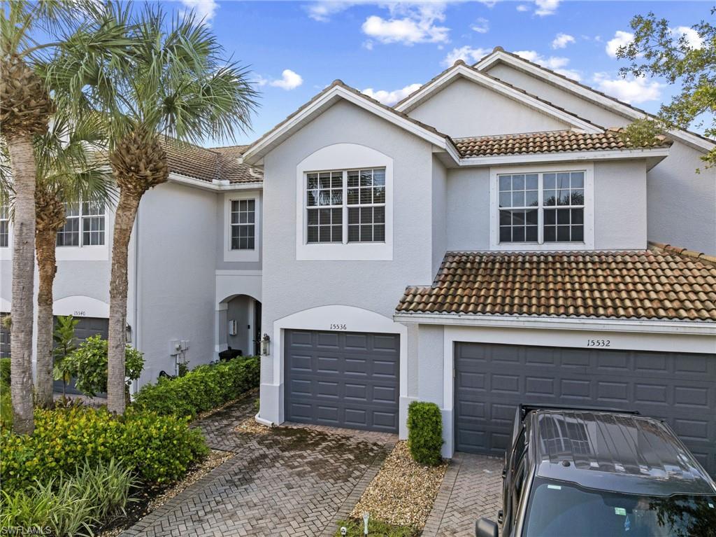 Luxurious Move-In Ready Townhome in Prime Naples Location Discover the epitome of sophisticated coastal living in this stunning two-story townhome at 15536 Marcello Circle, Naples, FL. Perfectly positioned in a vibrant, amenity-rich community, this 3-bedroom, 2.5-bath residence with a one-car garage offers a seamless blend of elegance, comfort, and modern convenience, just moments from Naples’ premier shopping, dining, and pristine beaches. Enter to a bright and airy first floor, where a gourmet kitchen takes center stage with gleaming granite countertops, stainless steel appliances, a chic tile backsplash, recessed lighting and a spacious pantry. The kitchen flows effortlessly into the open great room, ideal for entertaining or unwinding, with a ceiling fan, and a mounted TV that stays with the home. Sliding doors lead to a southern-exposure screened lanai, showcasing serene water views with a tranquil fountain—perfect for morning coffee or evening relaxation. A cozy breakfast nook, counter space for stools, and a stylish half bath complete the main level, while the foyer opens to a beautifully maintained neighborhood. Upstairs, dark hardwood floors and vaulted ceilings create an inviting ambiance across three generously sized bedrooms. The primary suite is a true retreat, boasting a walk-in closet, dual vanity ensuite bathroom, and breathtaking water views. Two additional bedrooms, each with ample closet space, share a well-appointed hall bath. Every detail has been meticulously maintained, from the new water heater (1.5 years old), brand-new dishwasher, garbage disposal, and half-bath faucet to the smart thermostat, new smoke detectors, and fresh lanai screen door. The garage impresses with built-in shelving and an epoxy floor, offering both style and functionality. Natural light floods the home, enhanced by white blinds throughout and elegant drapes framing the lanai doors. Ceiling fans in the great room and each bedroom ensure year-round comfort. Move-in ready and brimming with upgrades, this townhome is a canvas for your personal touch, set in a community offering a resort-style pool, spa, cabana, basketball court, and tennis courts. Embrace the rich Naples lifestyle in a location that puts you minutes from world-class beaches, dining, and shopping. 15536 Marcello Circle is more than a home—it’s a gateway to the best of Southwest Florida living. Schedule your private tour today and make this exquisite townhome yours!