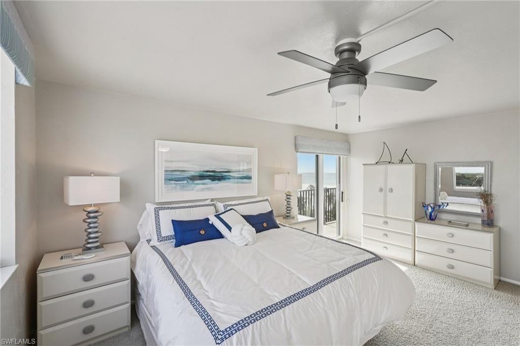 A Rare Offering of Sun, Sand & Seamless Comfort on Fort Myers Beach Discover seaside sophistication and effortless comfort in this south-facing turnkey condominium at Caper Beach Club, one of Fort Myers Beach’s premier beachfront addresses. This beautifully maintained end unit offers the largest floor plan in the building and embodies the relaxed refinement of coastal living. The residence features two bedrooms, two bathrooms, and an open, light-filled layout with expansive sliding glass doors that lead to a spacious corner lanai. From this vantage point, enjoy sweeping Gulf views extending south toward Naples—an ideal setting for morning coffee or evening sunsets. The bright kitchen is designed for both comfort and function, featuring updated appliances including a new microwave, white cabinetry with new hardware, abundant storage, a breakfast bar, and slider access to a private open-air balcony overlooking the south end of the beach. The primary suite serves as a serene retreat with a king bed, en-suite bathroom, dual closets (one walk-in), and slider access to the balcony. The secondary bedroom, located privately at the end of the hall, includes two full beds, a large closet, and plenty of natural light. This turnkey residence has been thoughtfully prepared for immediate enjoyment and includes new Serta mattresses and linens throughout, new HVAC, new hot water heater, and a new roof. Additional features include electric shutters, in-unit laundry, and ample storage space. Caper Beach Club offers resort-style amenities including a large beachfront pool, private beach access with umbrella-shaded cabanas, and recently remodeled indoor and outdoor common areas. Residents enjoy over 300 feet of pristine white sand beach, lush tropical landscaping, and on-site professional management. Owners also have the option to participate in an established rental program allowing weekly or monthly rentals, offering flexibility and potential income. Each unit includes a private, securable owner’s closet and access to a first-floor lobby with secure entry. Ideally located just minutes from the shops, dining, and entertainment of Times Square, this residence offers the perfect blend of tranquility, convenience, and investment opportunity. Experience the best of Gulf-front living at Caper Beach Club.