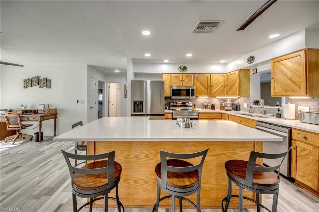 Beautiful updated 3 bedroom/2 bath home with over 1700 sq ft under air. Heated pool with screen enclosure. Spectacular views of Estero Bay and property backs up to Matanzas Pass Preserve. Welcome to your coastal Island retreat! This completely remodeled ranch style home blends modern comfort with breathtaking natural views, offering the perfect balance of privacy, relaxation and convenience. Step inside and find: A brand-new kitchen with contemporary finishes, stylish cabinetry, and upgraded appliances. Two fully renovated bathrooms with fresh, modern design. An open single-level layout the makes everyday living easy and enjoyable. Outdoor living is just as impressive. Relax in your screened-in-private, heated pool, perfect for Florida sunny days and breezy evenings. The attached one-car garage provides secure parking and storage. With this ideal location on Fort Myers Beach, you will enjoy gorgeous water views, abundant wildlife, and tranquility of the preserve. A short walk to the beautiful sugar white sandy beaches, dining and entertainment. Don't miss out on this rare opportunity to own a move-in-ready home that captures the best of Florida living.