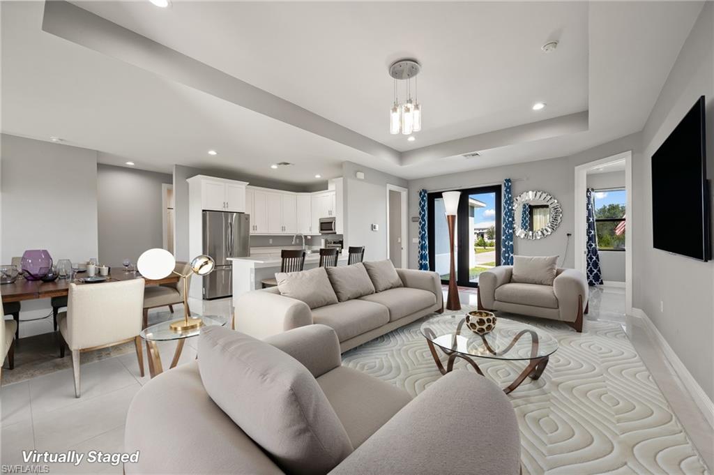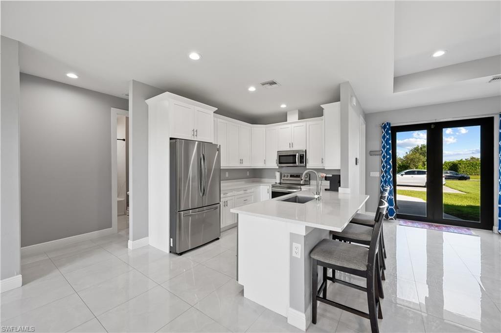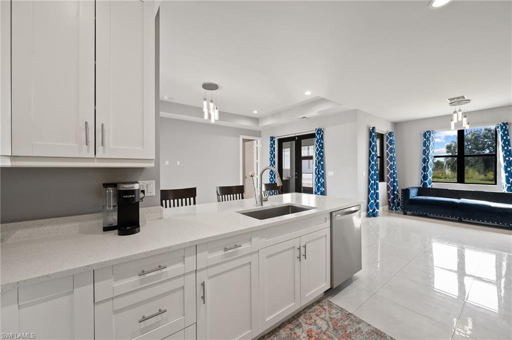***Mortgage savings may be available for buyers of this listing***Built in 2021 featuring a 1.14ac homesite in Golden Gate Estates, this elegant, modern open-concept home offers 3 bedrooms plus a den, 2 bathrooms, and an outdoor kitchen on the back lanai, perfect for effortless indoor-outdoor living and entertaining. The property also features plenty of outdoor space, a large yard, and a 2 car garage, ideal for parking and storage. Every detail has been thoughtfully designed with high-end upgrades and timeless finishes that elevate both style and comfort. The den is versatile and perfect for a home office or additional living space, offering flexibility to fit your lifestyle. The chef-inspired kitchen features 42” solid wood white cabinetry, luxurious quartz countertops, and stainless steel appliances, creating a bright and functional space ideal for gathering. Both bathrooms are equally refined, showcasing quartz surfaces and a huge primary shower with a frameless glass door for a spa-like experience. Throughout the home, you will find tile flooring, 8 foot doors, 6 inch baseboards, and tray ceilings in both the great room and primary suite, adding height and sophistication. 10 foot ceilings throughout and 11 foot vaulted ceilings in select areas enhance the open, airy feel, while recessed lighting adds a warm modern glow. Additional highlights include impact windows for peace of mind and an asphalt driveway for durability and curb appeal. This beautifully upgraded home perfectly blends elegance, functionality, and Florida charm, ready to impress at every turn.