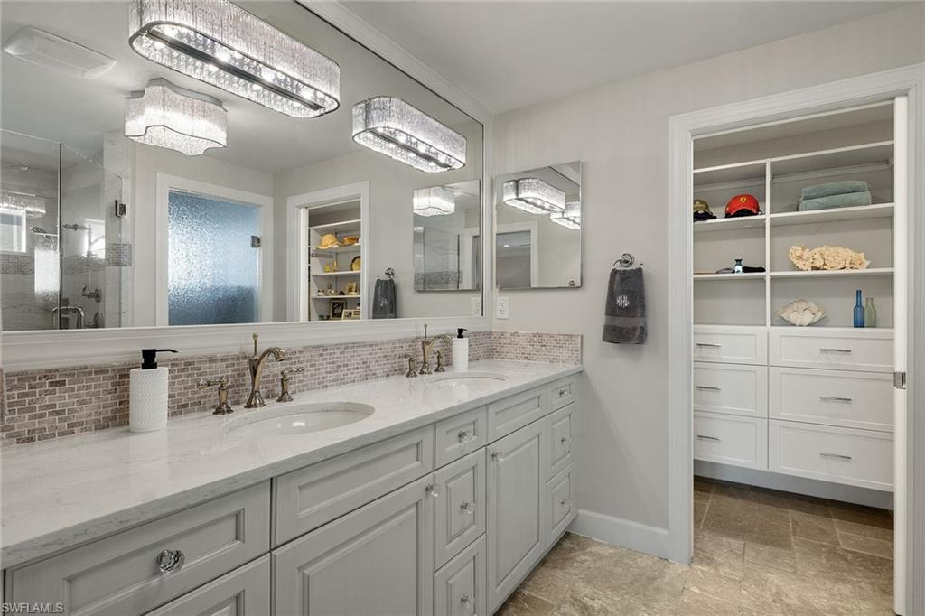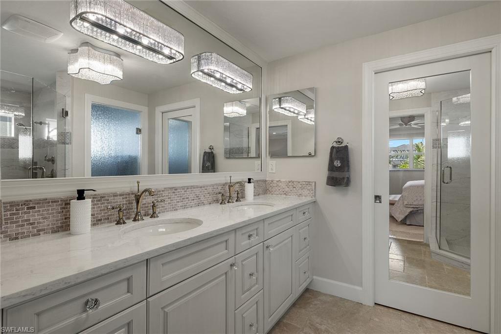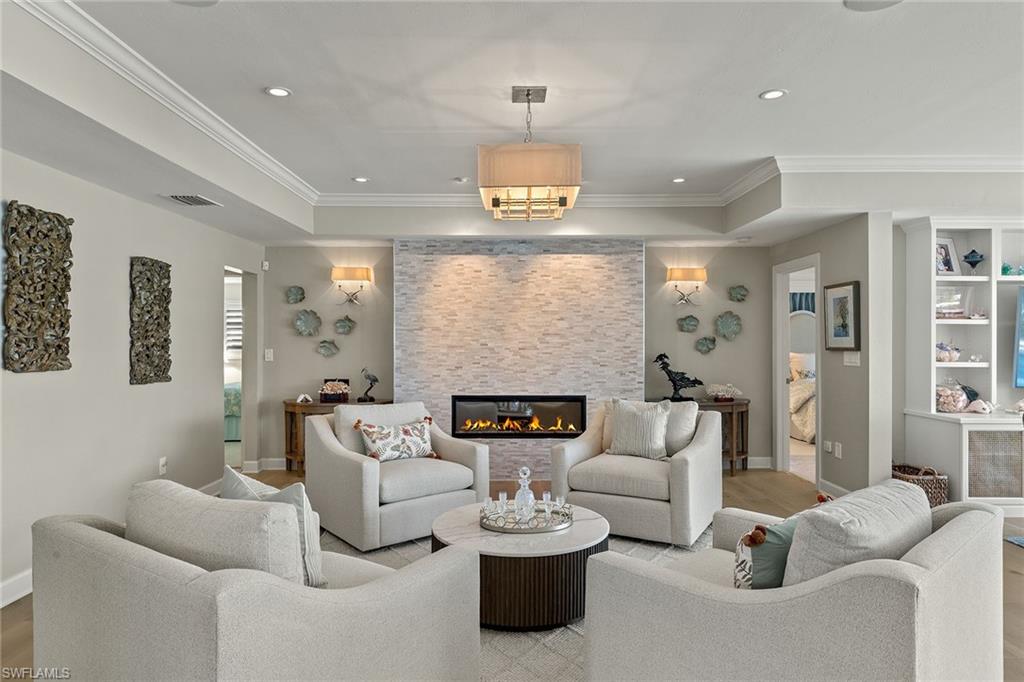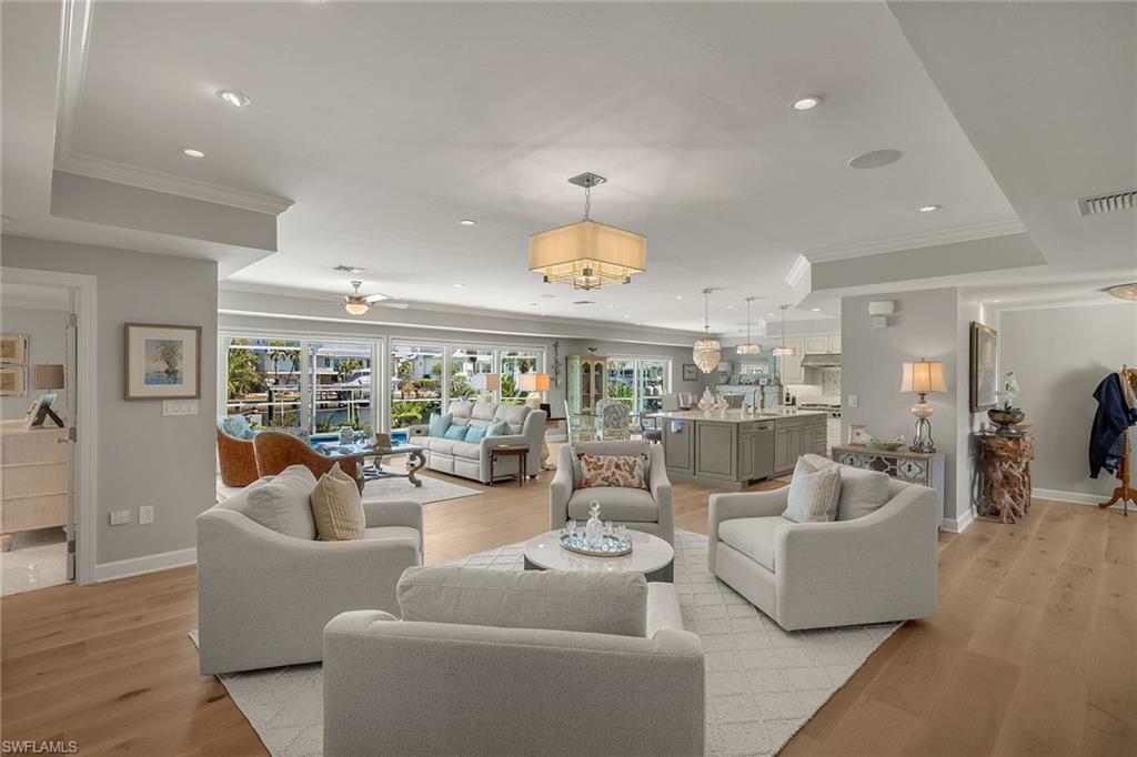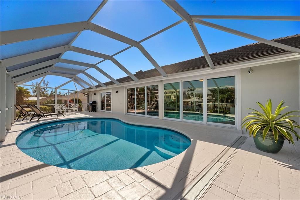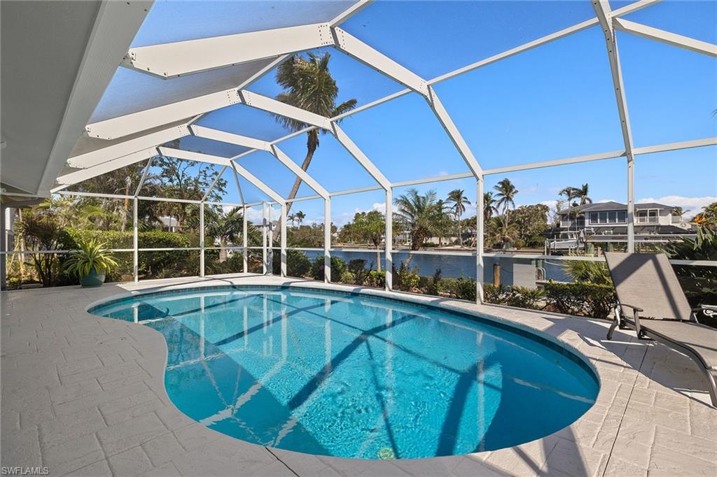Discover a stunning, waterfront retreat, likely the highest ground-level home in the neighborhood. Designed for luxury and peace of mind, this outstanding property had no water intrusion during hurricanes Milton and Helene, according to the owner, offering security in a prime coastal location. Completely remodeled and thoughtfully designed for the ultimate Florida lifestyle, this three-bedroom, three-bath home, with a dedicated office/den, is ideal for entertaining. High-end finishes elevate every space, from elegant electric fireplace in the living room to custom built-ins in the family room. The spacious, open-concept kitchen is a chef’s dream, featuring high-end appliances, a gas range, and a large island ideal for gathering with friends and family. The private main suite is a tranquil oasis, boasting abundant natural light and serene water views. Its luxurious en-suite bath offers a custom shower, dual vanities and a large walk-in closet with built-in shelving. The spa-like guest bath, complete with dual vanities and a Jacuzzi tub, ensures comfort and indulgence for visitors. Outdoor living takes center stage with a beautifully enclosed pool area, ideal for year-round enjoyment and alfresco entertaining, all while soaking in breathtaking water views. Boating enthusiasts will love the deepwater, 150-plus-foot-wide canal, over 100 feet of seawall and private wrap-around dock with a 16,000-pound lift. easily accommodating a 14-foot-wide vessel. With no bridges to navigate, you’ll be just minutes from open bay waters. Set amid lush, native landscaping, the expansive grounds create a peaceful, park-like setting. This is more than a home, it’s a lifestyle. Don’t miss the opportunity to own this exceptional waterfront gem.