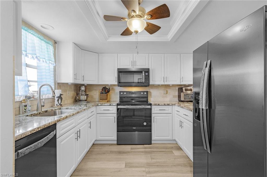 This Condo is being sold Turnkey with 2 bedrooms/2.5 Baths on the 3rd Floor in Royal Pelican! This condo been updated with a New Kitchen Remodel, Black Stainless Appliances & Vinyl Plank Flooring throughout! The open floor plan includes a nice eat in dining area & living room over looking a spacious lanai with water views. Going Upstairs there are 2 Master bedrooms with en-suites including a lanai with newer washer/dryer and more fantastic canal views. This condo has storage closets & a common Elevator for your convenience. Some of the Amenities include: Pools, shuffleboards, BBQ grills, picnic areas, clubhouse w restrooms, kitchen and large area to entertain. The EBIA amenities include: Pickleball, Tennis, Bocce ball, deeded Fort Myers Beach access, Beach parking, Putting greens, Driving cage, Chipping greens, dog friendly common area, walking Paths & fishing Pier. Some Boat Slips may be available for purchase. Rentals are allowed with some restrictions. Pets are also allowed with approval. This convenient location near Fort Myers Beach is ready for new owners!