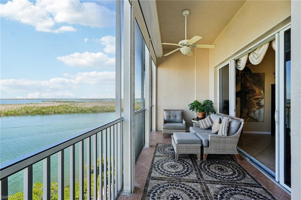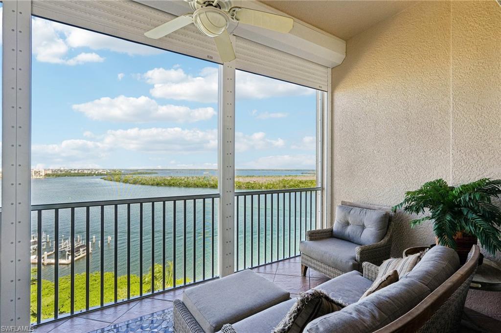 Experience Elevated Island Living on Fort Myers Beach! Wake up each morning to the soft glow of a spectacular sunrise over Estero Bay from this beautifully furnished 3-bedroom, 2-bath penthouse—a perfect blend of coastal elegance and casual comfort. Every window captures peaceful water views and lush tropical scenery, while the desirable eastern exposure fills the home with gentle morning light and keeps it cool and comfortable throughout the day. Move-in ready, this tastefully furnished residence invites you to simply bring your swimsuit, flip-flops, and toothbrush—everything else is already in place for your island lifestyle. Nestled within the prestigious, gated Waterside community on the tranquil southern tip of Fort Myers Beach, residents enjoy exceptional resort-style amenities, including a spacious pool and spa, tennis courts, a modern fitness center, and a fishing pier with cleaning station for the angler at heart. Deeded pool cabanas and boat docks occasionally come up for sale, offering added opportunities for convenience and recreation. The community also offers guest suites available at a fraction of hotel rates, perfect for welcoming visiting family and friends. And with the security of an enclosed garage plus 24-hour gate access, peace of mind is built into your daily life. From your morning walk or bike ride to the nearby beach, cafés, and local shops, to evenings watching the city lights shimmer across the bay, every moment here celebrates the effortless beauty and warmth of coastal living. This is more than a home, it’s an invitation to the refined, relaxed lifestyle that makes Southwest Florida living truly special. Deeded pool cabanas and dock slips occasionally become available for purchase from fellow residents.