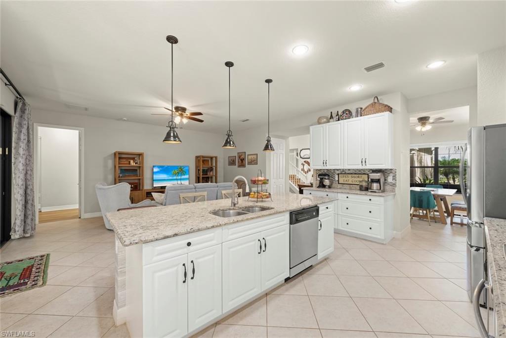 Step into a home where comfort meets elegance in the heart of the highly desirable, gated community of Riverstone at Naples. This beautifully maintained 4-bedroom, 4-bathroom residence offers everything you need — and more — to enjoy the Southwest Florida lifestyle to its fullest. From the moment you walk in, you’re greeted with a sense of space and warmth. The thoughtful layout includes a den for working or unwinding in privacy, a bright loft perfect for movie nights or a cozy reading nook, and both a living room and family room for relaxed gatherings with loved ones. The kitchen is the heart of it all — with stainless steel appliances, ample storage, and plenty of counter space to prepare meals, snacks, and everything in between. Step outside to a fenced backyard where kids can play, pets can roam, or you can simply unwind in the warmth of the sun. With new AC units (2022), Solar panels and a Tesla Powerwall (2024), and hurricane shutters (2025) already in place, you’ll enjoy peace of mind, comfort, and energy efficiency for years to come. Beyond your front door, Riverstone offers a vibrant, active lifestyle the whole family will love. Spend weekends at the resort-style clubhouse, complete with a huge pool, lap pool, hot tub, and a children’s waterpark and tot lot. Stay active with tennis, pickleball, and basketball — or enjoy time together in the fitness center, billiards room, or community events hosted throughout the year. Located just minutes from top-rated schools and a short drive to Naples’ best beaches, restaurants, and shops, this home truly offers the best of family living — with space to grow and a community that feels like home.