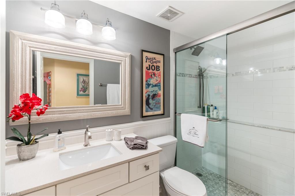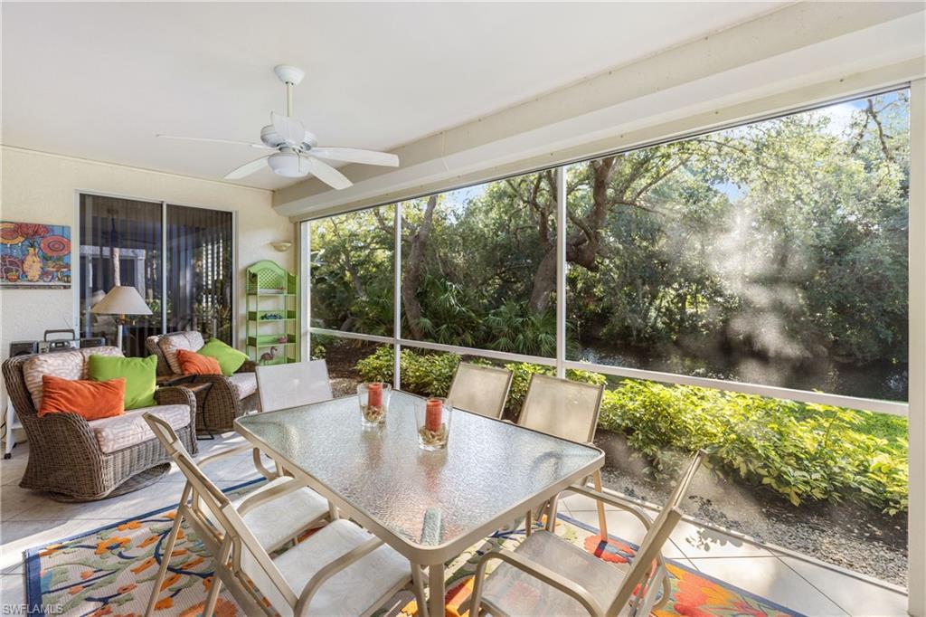Welcome to your slice of paradise in Pelican Landing! This vibrant 3-bedroom condo boasts a one-owner history and comes fully turnkey. Enjoy breathtaking private creek views from your lanai, where each sunset is complemented by the lush, mature Florida landscaping. It's never too hot or cold on the lanai once you lower your storm shutters - you can use that extra space year-round. Inside, the ambiance is set by fun and colorful furnishings, creating a lively atmosphere that perfectly complements the coastal lifestyle. Meticulously maintained and only used seasonally, this end unit condo kitchen features quartz countertops, new cabinets and colorful subway tile backsplash. The bathrooms were also updated offering a modern touch to your oasis. The leather sofa and loveseat are a new addition to the unit. Pelican Landing isn't just a place to live; it's a lifestyle. Dive into exclusive amenities including access to a private beach for soaking up the sun, pickleball and tennis courts for staying active, and bocce ball for some friendly competition. Want to explore the water? Launch your kayak and paddle through the tranquil creeks just steps from your door. Creekside Crossing has two pools, a hot tub and a lovely cabana. If you play golf, The Nest Golf Club is within Pelican Landing and offers Golf or Social memberships. With its unbeatable location, stunning views, and endless amenities, this Pelican Landing condo is more than just a home—it's a dream come true. Don't miss your chance to experience the ultimate in coastal living!