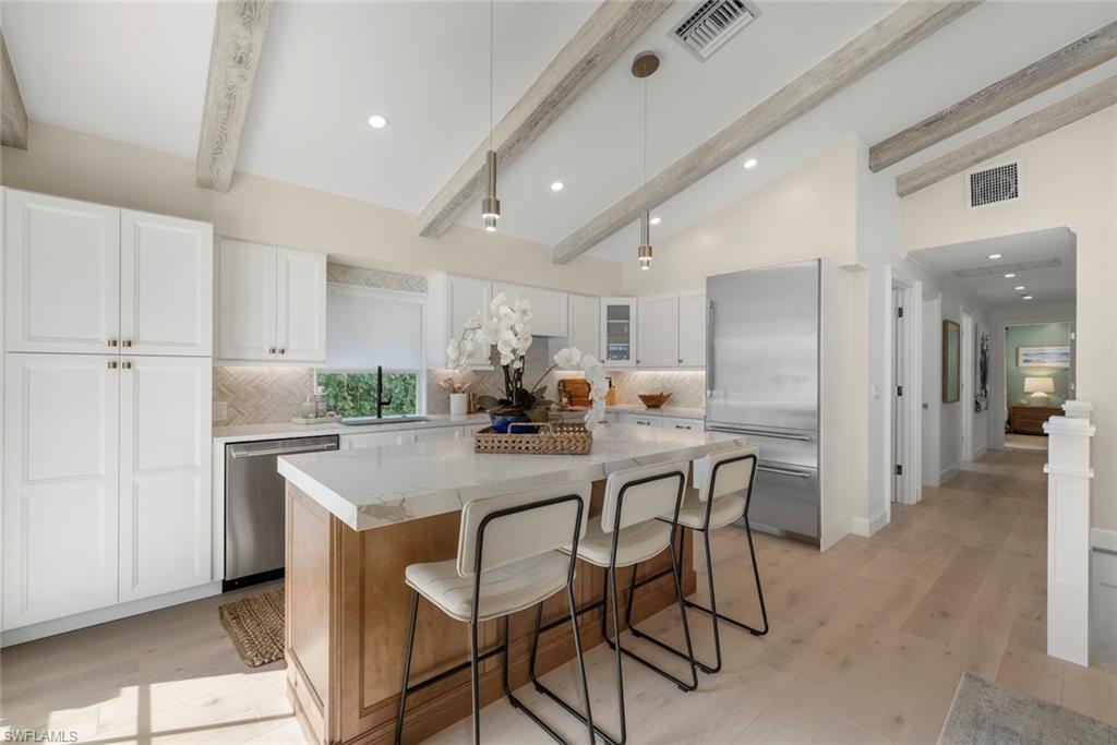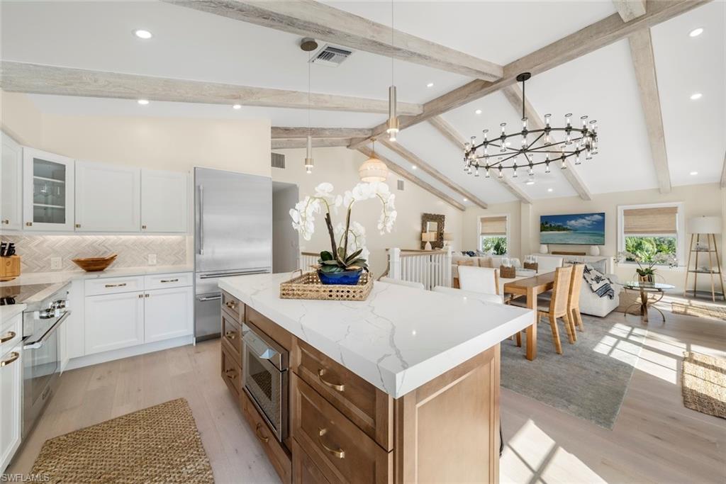 Discover the perfect blend of location and lifestyle in this stunning, completely remodeled, custom home located on the east end of Sanibel down by the lighthouse, on a meandering Sandy lane that is just literally steps to either the bay or the gulf and just minutes to the popular shops and restaurants. Featuring luxurious custom finishes, spacious living areas, and a seamless indoor-outdoor flow, this home is designed for those who crave the serenity of beachside living with all the comforts of modern elegance. Step into this impeccably designed and decorated residence where premier lifestyle meets comfort. You can’t help but notice the detail to space, hardwood oak floors, designer lighting, gorgeous ceiling beams, crown molding, high end fixtures, and top of the line appliances. You will find that every room in this house is a step above the ordinary. Every inch of this home, inside and out, reflects quality craftsmanship, offering a truly elevated living experience. Don’t let the square footage fool you, this house lives large. This home was designed and engineered to withstand even the strongest hurricane, and was built to endure whether it encounters, wind or water. Not only is this house, stunning to look at, but it has been well thought out and built to last. We are happy to provide you with the specs, too numerous to mention in this space, but nonetheless very impressive. The professionally landscaped yard was designed by a local landscape artist and the recent addition of the custom designed pool and stunning Pergola that adjoins it, gives you that Palm Beachy vibe. The property also featured a civil engineer drainage system designed to manage stormwater efficiently and protect the home from flooding. You can enjoy peace of mind, knowing your investment is safeguarded by expert planning and infrastructure. Along with copious amounts of storage on the first level and a two car garage plus an extra garage for your golf cart or to use as a work room this house really does have it all.