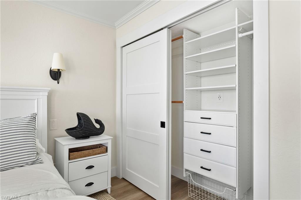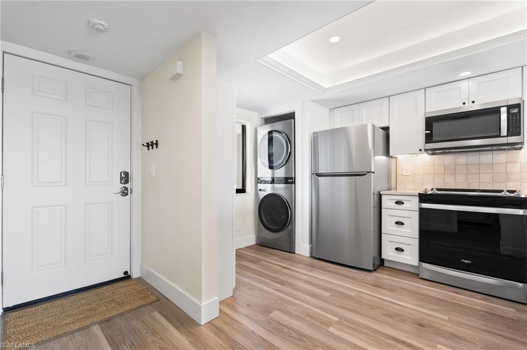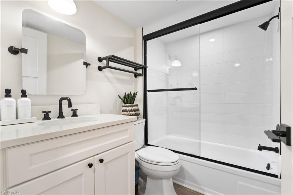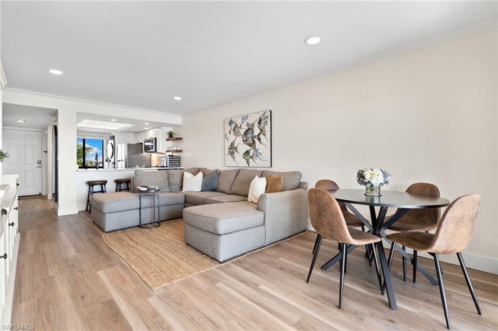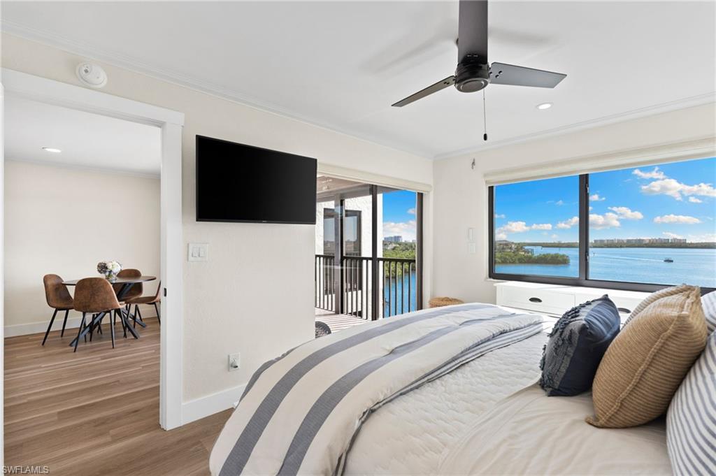 Welcome to Little Hickory Bay, where coastal living meets modern luxury at 4835 Bonita Beach Road #409. Completely renovated in 2022, this beautifully appointed 2-bedroom, 2-bath condo features soothing tones, clean lines, and upscale finishes throughout the unit. The open kitchen offers stainless steel appliances, quartz countertops, floating shelves, sleek cabinetry, and is seamlessly connected to the living and dining areas for easy entertaining. The private lanai offers a stunning 4th-floor Bay view framed by impact-resistant glass, offering both beauty and security. Other features include crown molding, recessed lighting, a wine cooler, closet systems in both bedrooms, electronic window blinds, shaker doors, and electronic metal shutters. Every detail has been thoughtfully updated—from the contemporary bathrooms to the vinyl flooring and elegant furnishings that perfectly complement the relaxed beach aesthetic. Just a short stroll to Bonita Beach, this property blends style, comfort, and convenience, with resort-style amenities including a waterfront pool, boat docks, kayak launch, pickleball and tennis courts, and a fishing pier. Whether you’re looking for a year-round residence or a turnkey vacation retreat, this upgraded coastal gem captures the best of Southwest Florida living. Schedule your showing today!