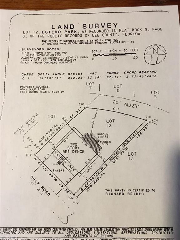 BEACH SIDE of Estero Blvd , has BEACH VIEWS , Gulf Access ,with neighborhood legal access path to the Gulf , runs along side of this lot and out to the BEACH. With working newer POOL, fenced in. Electric pole and water on lot for RV access while building. Paver driveway. ONLY ONE LOT IN FRONT, IS BEACH FRONT ! Old home had great view of beach and gulf. CAN BUILD SINGLE FAMILY HOME ! Check out new home beside this lot! Survey is available , in photos . Small road runs behind this lot for easy access to back of lot.