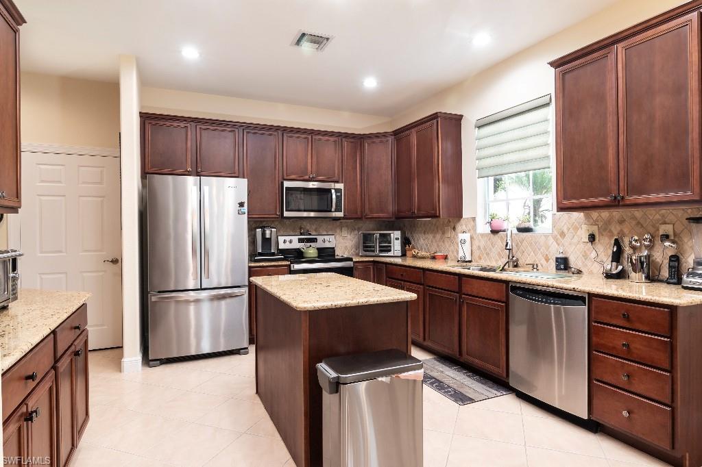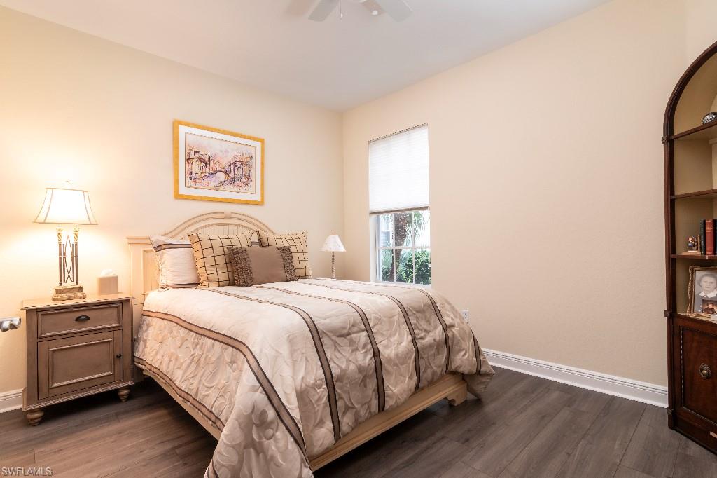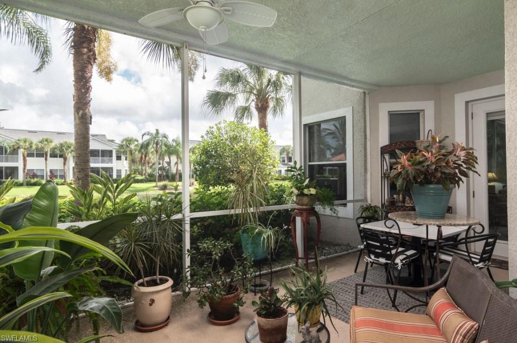 If you are looking for a central location to downtown Naples, Mercato, Costco, all 4 local theaters, including Artis Naples, and a short four miles to the beach, this is it! With access to I 75 around the corner, traveling is easy. This beautiful, updated, two bedroom and den with two baths, coach home has spacious 9 ft. 6 inch ceilings, with open living and dining rooms which look out at the L-shaped lanai which is 300 sq. ft. The lanai faces the serene pond and is perfect for dining "out"! The clubhouse is a short two minute walk and has a state of the art fitness room, and beautiful pool and newly redone spa. The interior of this coach home is 2,063 sq. ft., with all new lighting, quartz countertops in the two bathrooms, granite countertops in the kitchen with marble backsplash, stainless steel appliances, 16" diagonal tile in a bright alabaster white throughout, except for the two bedrooms and den which have laminate plank wood floors. The hot water heater is one year old and the a/c is well maintained regularly. The exterior of the coach homes was redone in late 2023, including new roofs, exterior paint, new gutters and lights, and should not require any improvements for many years to come. This beautiful home has a spacious two car garage. Call for an appointment to come see this gem. Has 2 plus Den