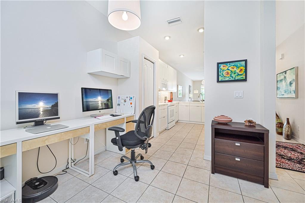 Welcome to your new home in Heritage Greens, one of North Naples’ most desirable communities—perfectly situated along the Arrowhead Golf Course. This beautifully updated villa offers a blend of comfort, style, and classic Florida living with stunning lake and golf course views. Step inside to find a renovated kitchen featuring quartz countertops, shaker-style cabinets, and bar seating ideal for entertaining or casual meals. The open layout flows naturally into the living area and out to the west-facing lanai, where you can enjoy gorgeous sunsets over the fairway and lake. An enclosed den provides flexibility as a third bedroom, office, or hobby space. The primary suite includes direct lanai access and a renovated bath with a walk-in shower. Newer water heater (2021). Screened patio at entry serves as walkway to the included (1) car garage! Residents of Heritage Greens enjoy resort-style amenities including three heated pools, spas, tennis and pickleball courts, basketball courts, playgrounds, and a clubhouse with fitness facilities. The community surrounds Arrowhead Golf Course, an award-winning public course known for its pristine fairways, 16 lakes, and welcoming clubhouse with restaurant and pro shop. Located in North Naples near Immokalee Road, you’ll have convenient access to shopping, dining, and some of Florida’s most beautiful beaches—Vanderbilt Beach, Barefoot Beach, and Delnor-Wiggins Pass State Park—all just minutes away.
