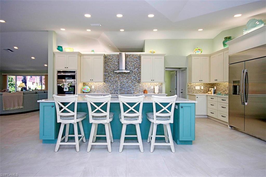 Your private tropical boating & beach retreat awaits. Experience the ultimate in coastal living with this beautifully remodeled residence, ideally situated on a wide waterway with intersecting canals and surrounded by lush, native landscaping. Designed for modern comfort and effortless entertaining, this stunning home features an open-concept living area with vaulted ceilings and abundant natural light. The gourmet kitchen is a true showpiece, showcasing quartz countertops, high-end appliances, induction stove, a spacious center island, a shimmering mosaic backsplash, and LED lighting above and below the custom cabinetry. Elegant light tile flooring flows seamlessly throughout the home, complementing the thoughtful floor plan that includes a private guest wing with two ensuite bedrooms. Totally remodeled, recent upgrades include a new standing seam metal roof, replacement of all cast iron drainage lines with PVC, a new HVAC system, impact-rated windows and doors, and a hurricane-rated garage door—offering both comfort and peace of mind. Outdoors, enjoy resort-style living with a custom-designed pool and spa and framed by tropical landscaping designed by Bob Walsh and overlooking a scenic intersecting canal basin. Located in the sought-after east-end boating community of Shell Harbor, this property offers exceptional privacy at the end of a quiet cul-de-sac, with quick biking access to deeded beach access and private parking. Boaters will appreciate two docks with lifts (6,000/16,000), complete with water and electric service, providing easy access to both the bay and the Gulf. A comprehensive list of improvements is available upon request.