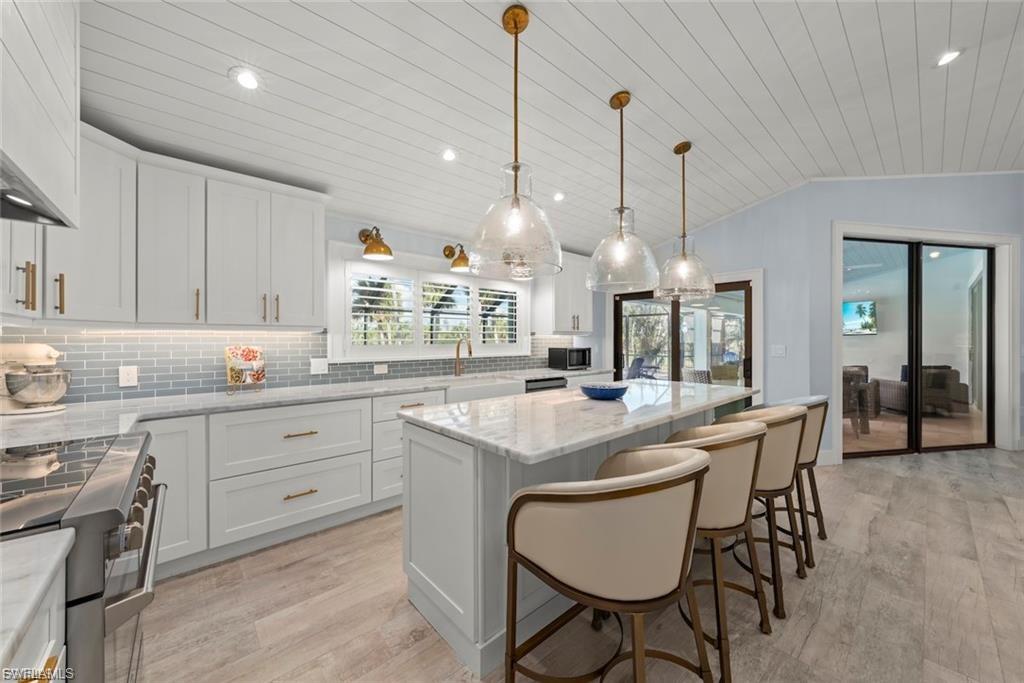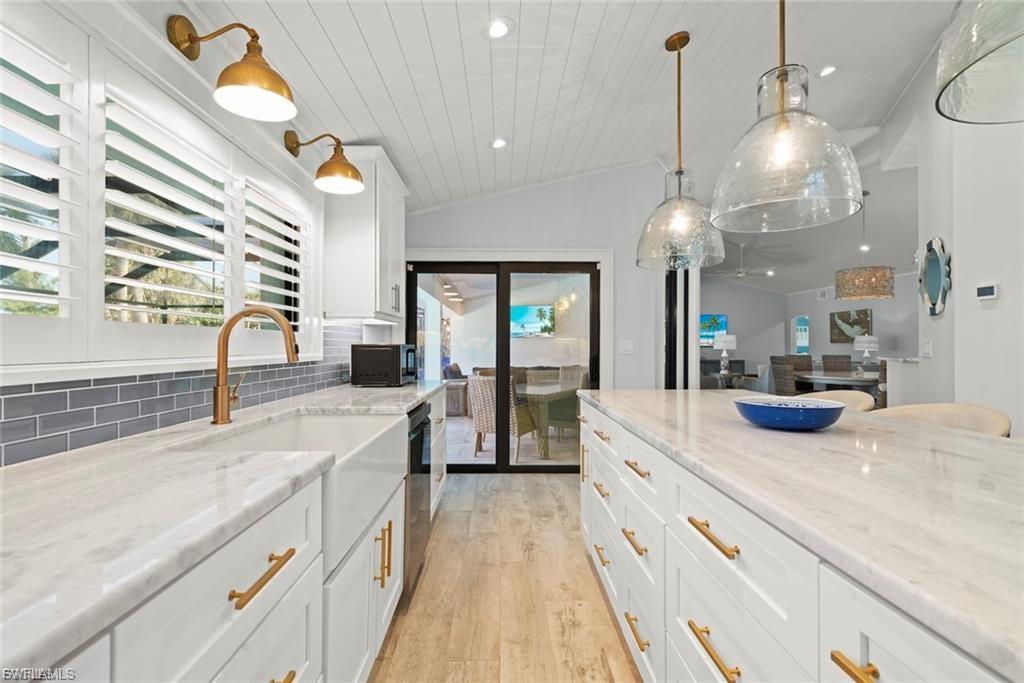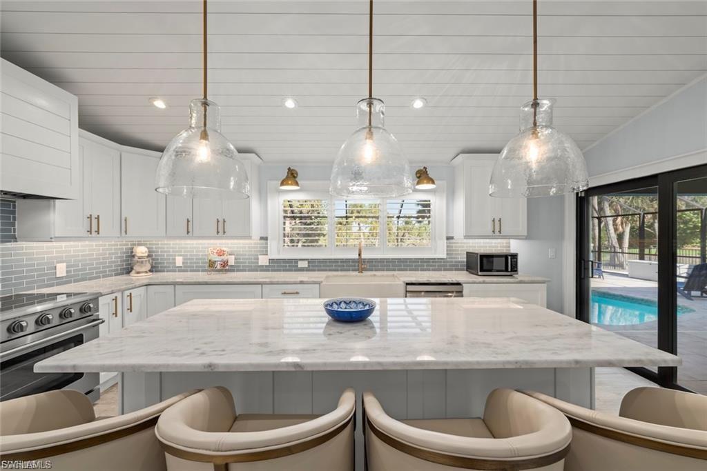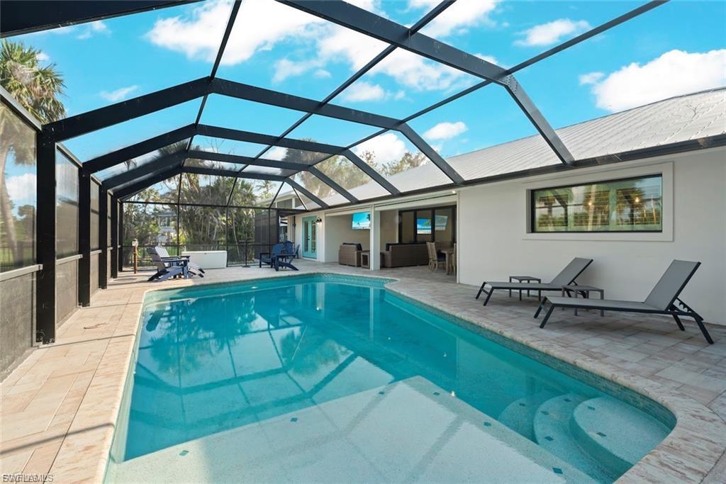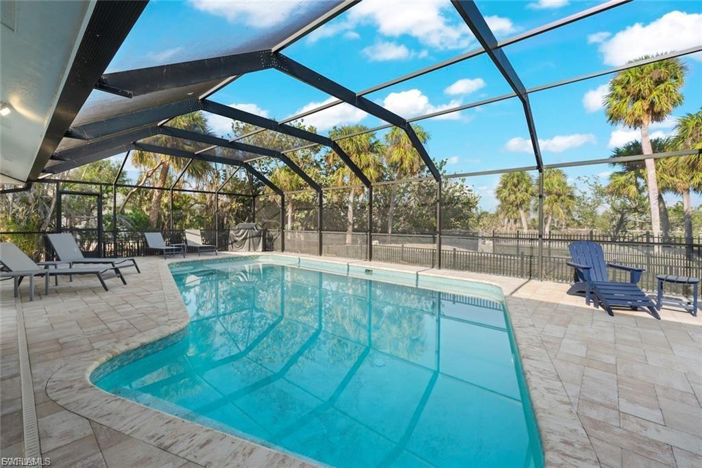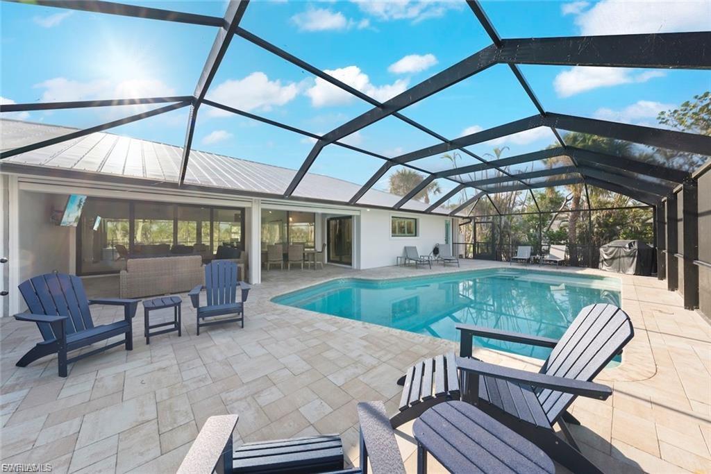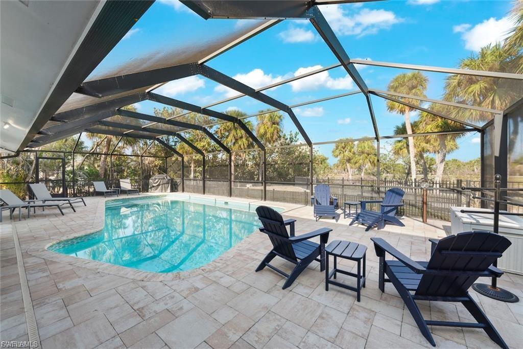 Located just steps from private deeded beach access in the coveted beachside development of Château Sur Mer, this beautifully remodeled 4-bedroom, 3-bathroom home offers the perfect blend of luxury, privacy, and convenience. Situated on a serene lakefront parcel overlooking preserve with .6 of an acre, this exceptional property features serene views of native wildlife and the tranquil surroundings. The home was meticulously renovated by Kennedy Construction and is truly a contemporary beauty. The spacious, open-concept living areas are designed for both entertaining and enjoying island lifestyle. Whether you're hosting guests or relaxing with family, this home offers an ideal indoor-outdoor flow. The gourmet kitchen is a chef’s delight, featuring a Thermador refrigeration wall, built-in microwave, slide-in cooktop with hood, and dishwasher. The stunning Level 5 Quartzite countertops are complemented by a vitreous glass backsplash and custom cabinetry, making this space both functional and visually striking. The split-bedroom layout provides ample privacy, making it an ideal setup for owners and guests alike. The luxurious primary suite includes a beautifully crafted bath with shiplap walls and custom closet built-ins, ensuring a retreat-like atmosphere. High-end finishes extend throughout the home, including custom window treatments and a programmable Lutron lighting system. Other thoughtful improvements include a resurfaced saltwater pool with new interlocking pavers, a new seamless metal roof installed in 2017, impact glass windows and doors, and a newly fenced portion of the yard. This property is not only an elegant family residence but also offers excellent investment potential, given its proximity to the white sandy beach, charming Captiva Island, local amenities such as the Sanibel School, recreation center, CROW, and the Shell Museum. Golf carts are approved for travel within Château Sur Mer, making daily life even more convenient and enjoyable. With deeded beach access just steps away, this home truly embodies the best of island living.